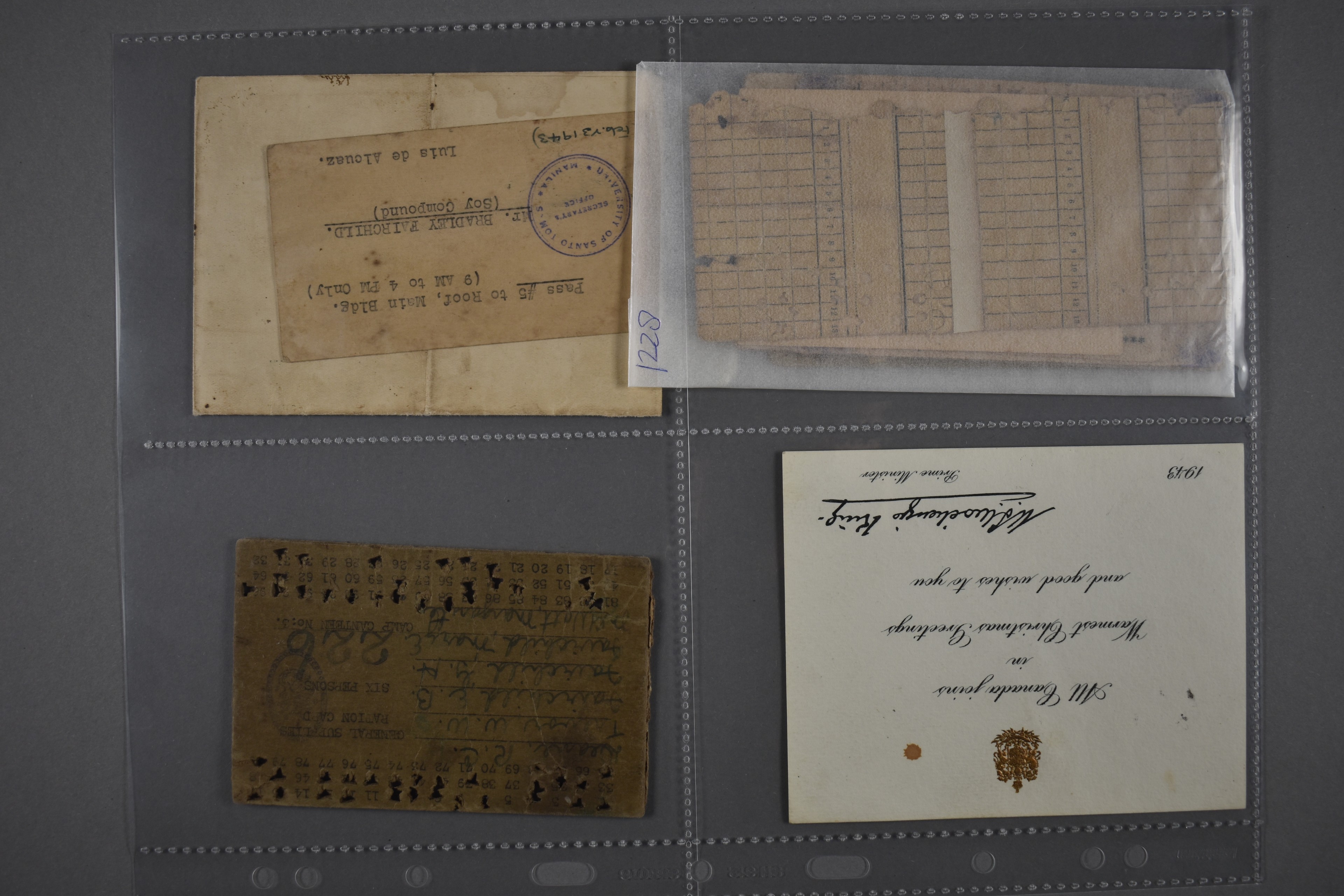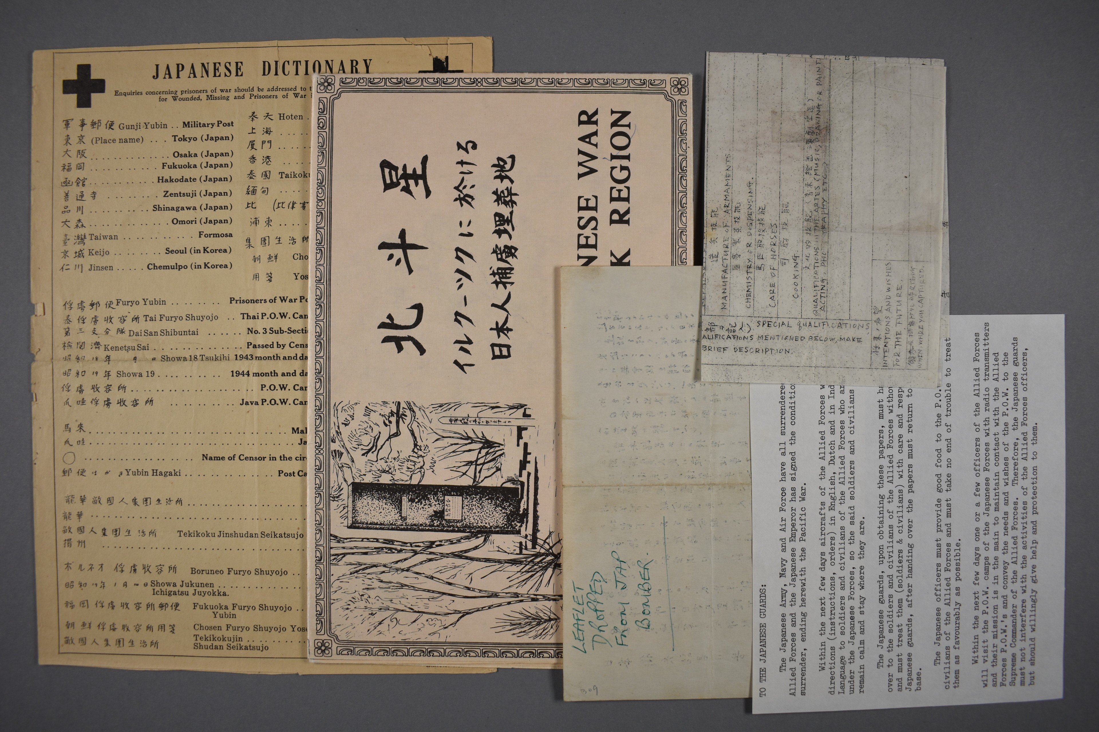 POW & CI. Canteen Tickets and others. Collection of several canteen tickets or food passes, tickets for buying things for several camps in a few countries like the Philippines, also in the USA, POW cover, leaflets, detailed map of Japanese Graveyards in Irkutsk Region, Japanese Dictionary by the Red Cross, and so on. Most interesting