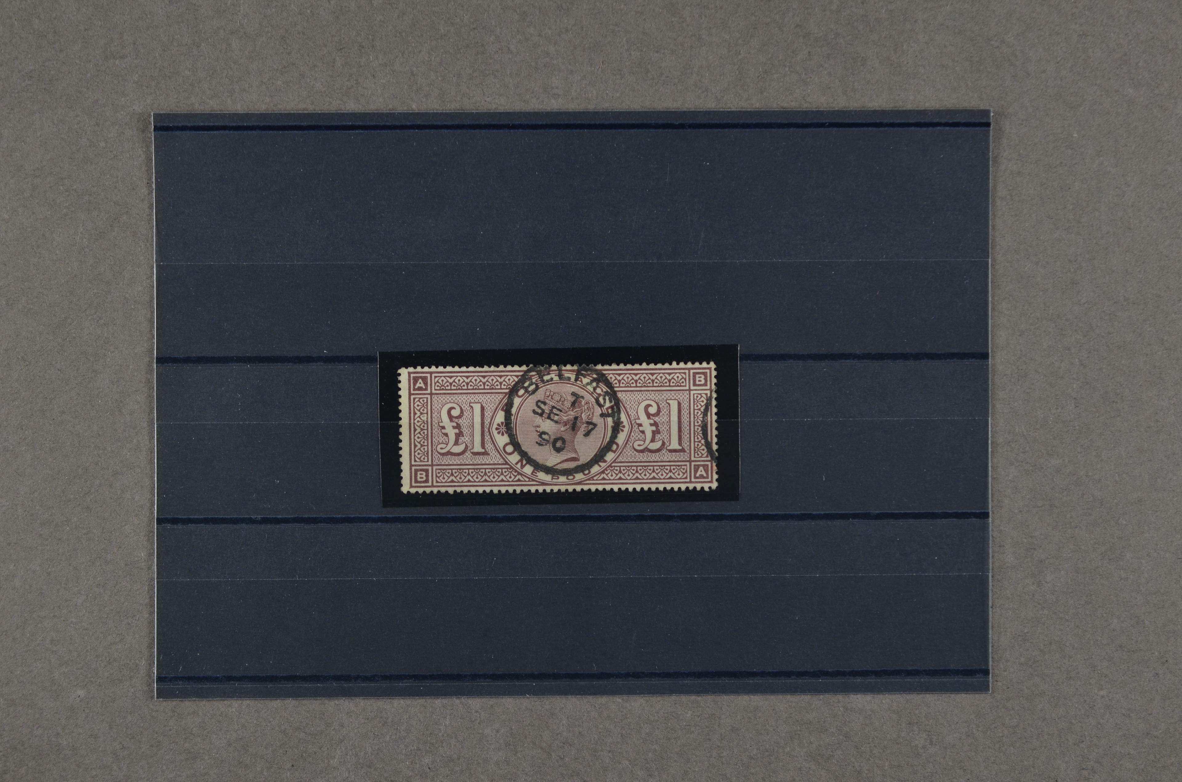 GREAT BRITAIN, S.G.185, £.1,- brown-lilac, wmk. Three Imperial Crowns, nice stamp in rich colour, with cancel 'Belfast' cds. Cat.value £.3000