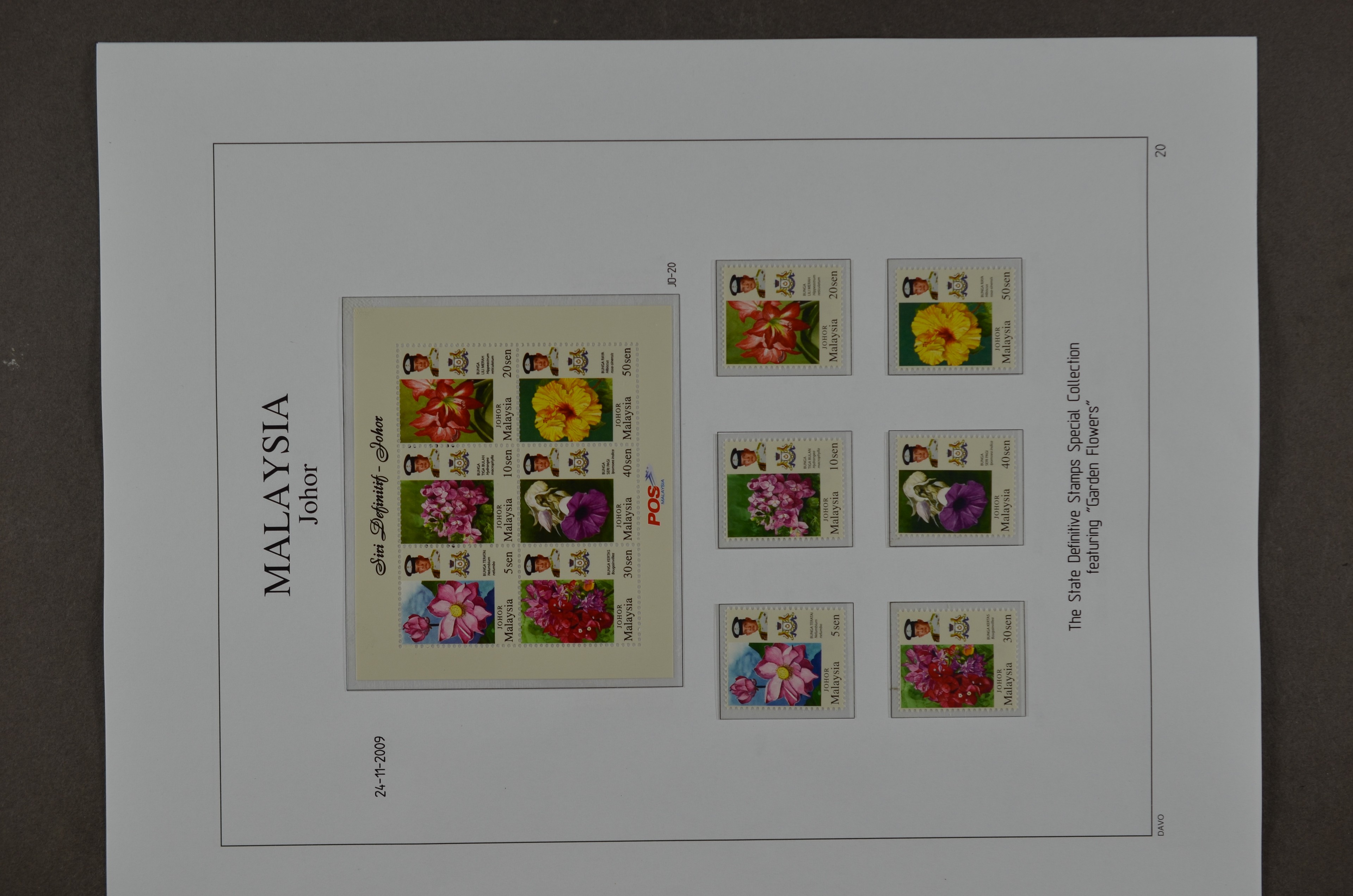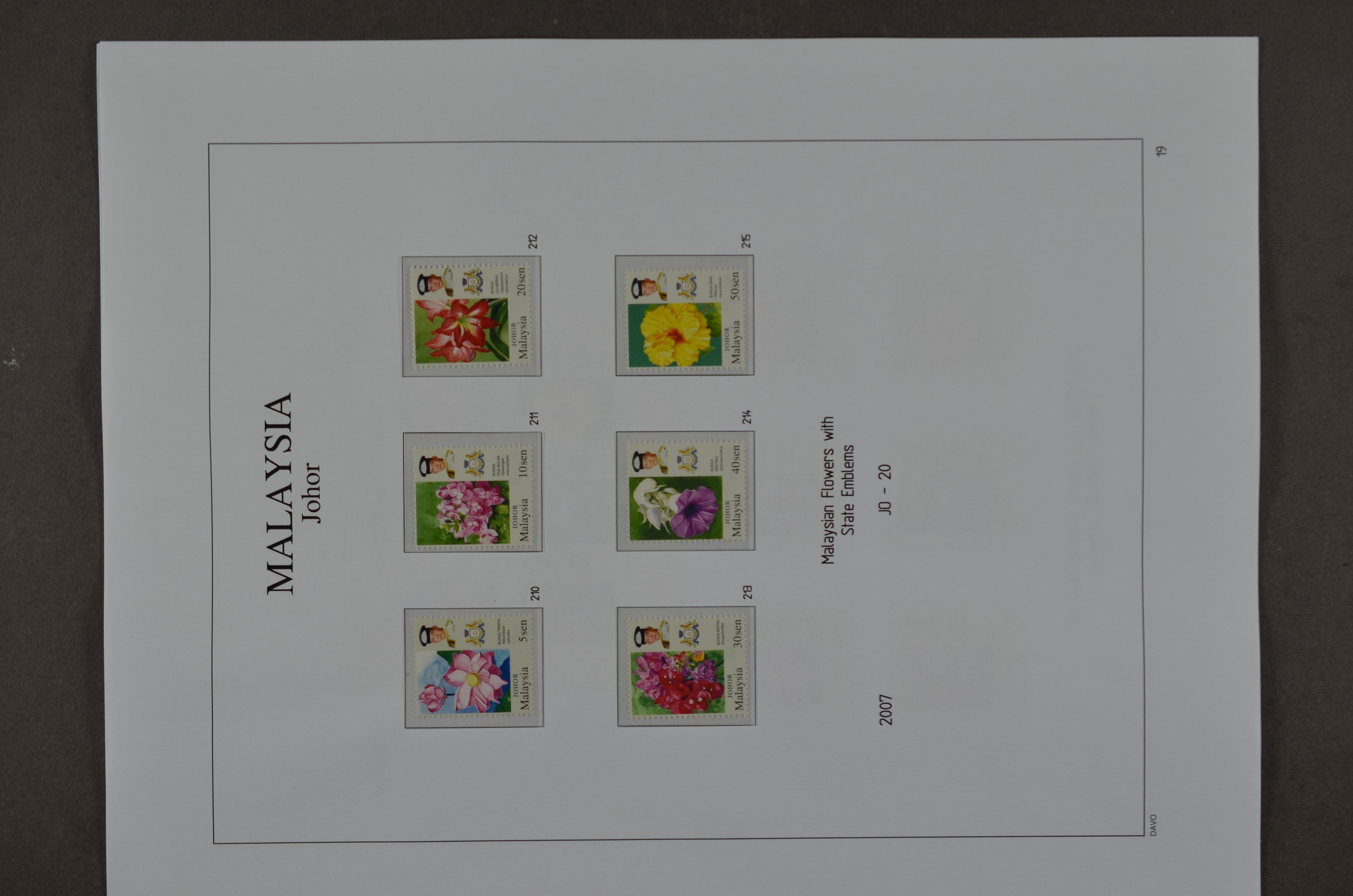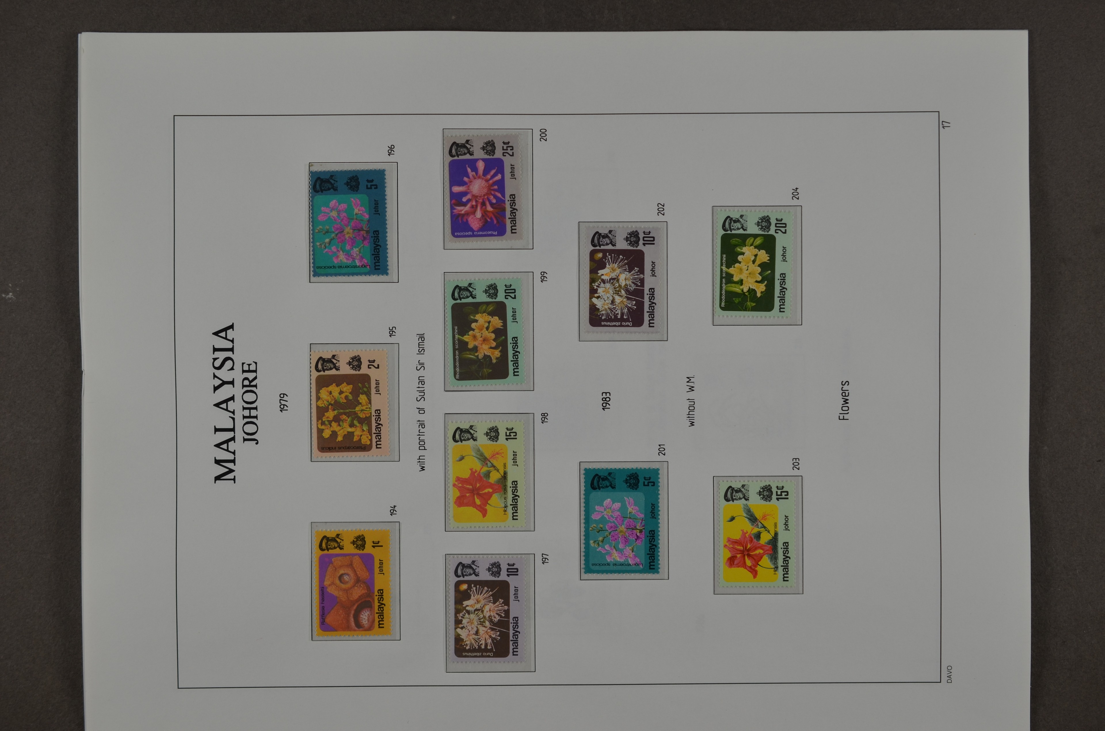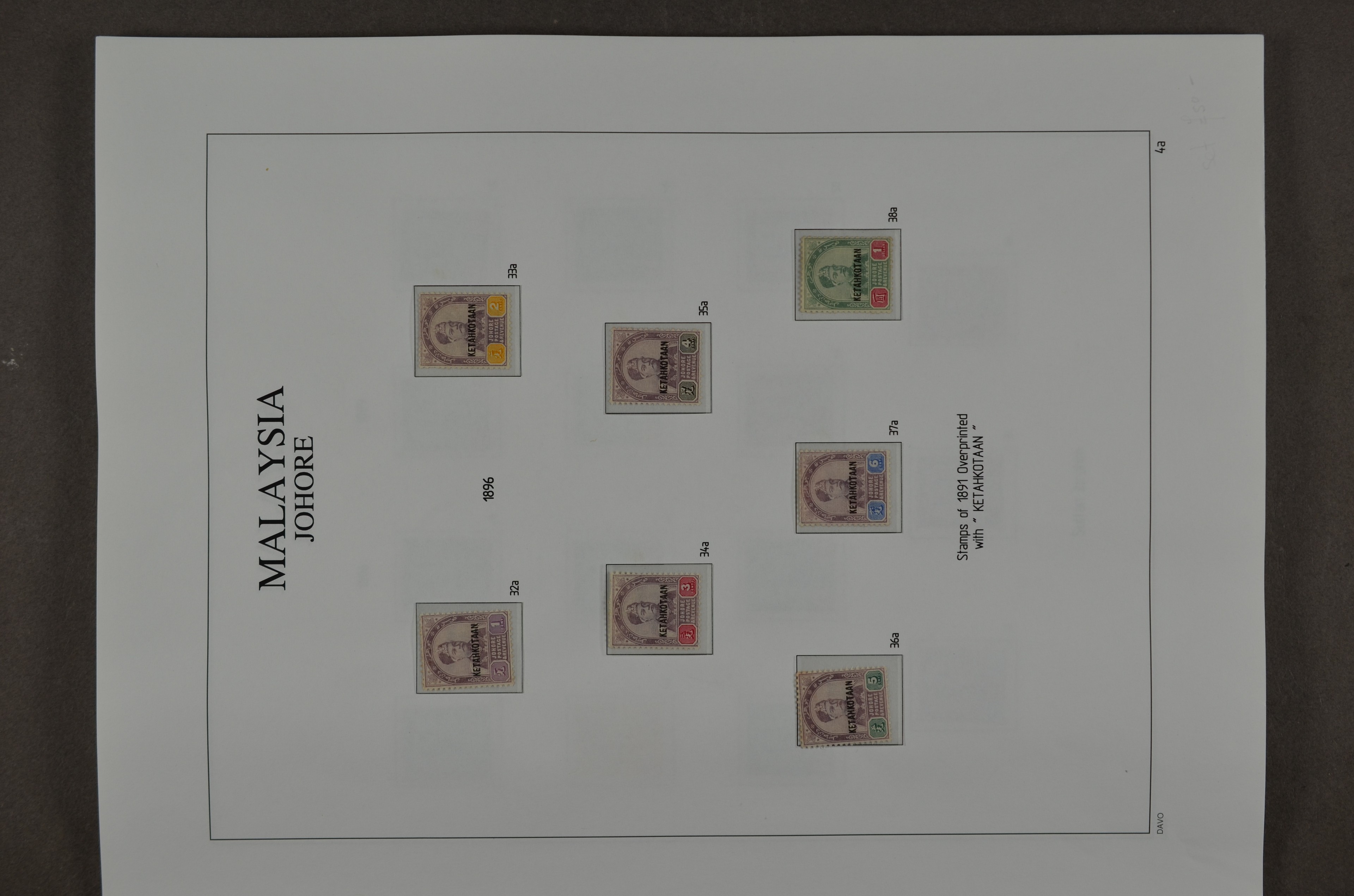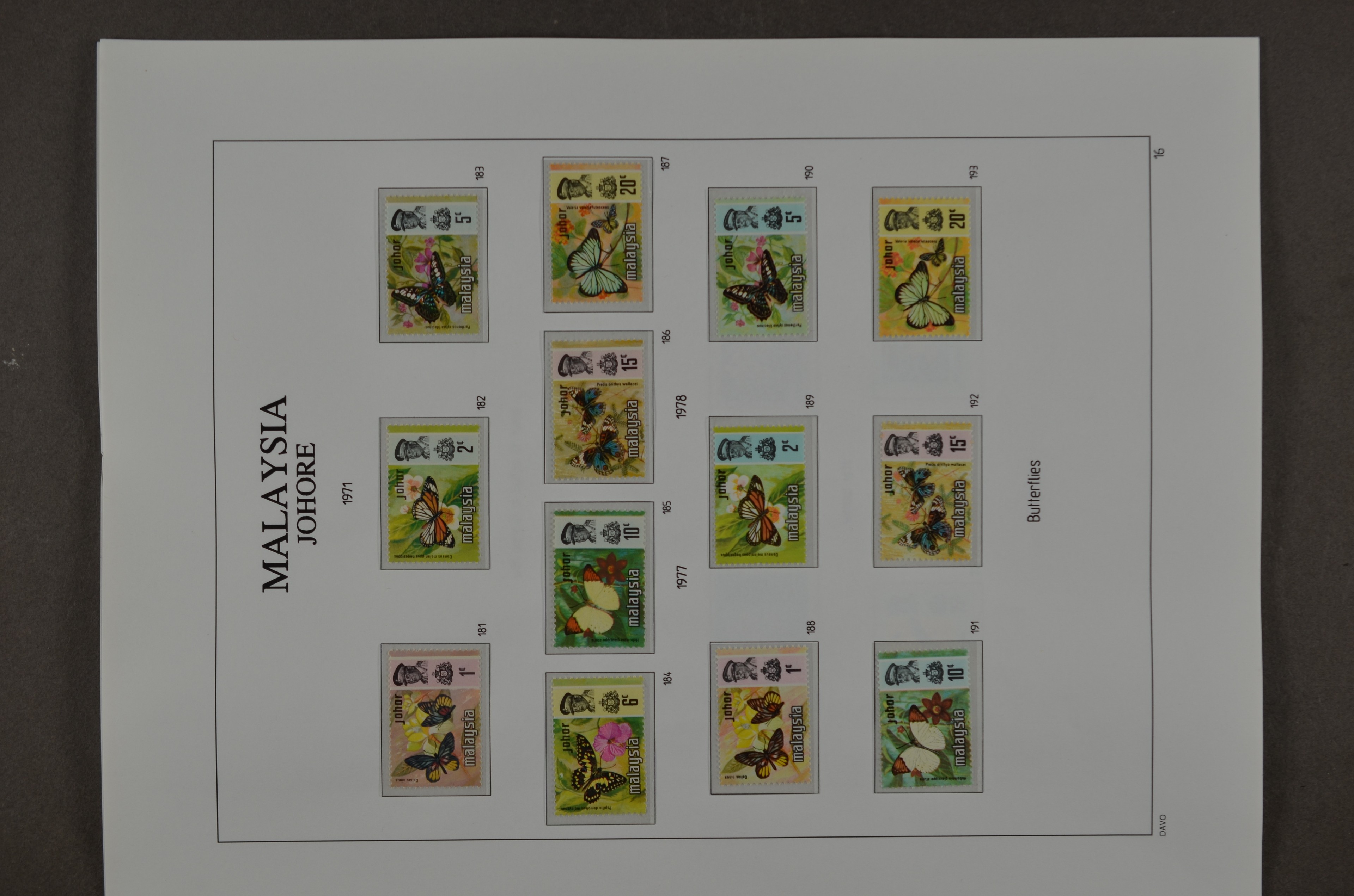 BR.COMMONWEALTH, Malaysian States, Johore 1884-1979, o/*/** collection on albumpages with good numbers and sets, f.e.: S.G.3, 5, 6, 14, 39/53, 61/77, 78/87, 101, 103/25, 126, 127 (f.c.), 128 (f.c.), 133/47 and D1/5. Beautiful lot with very high value!