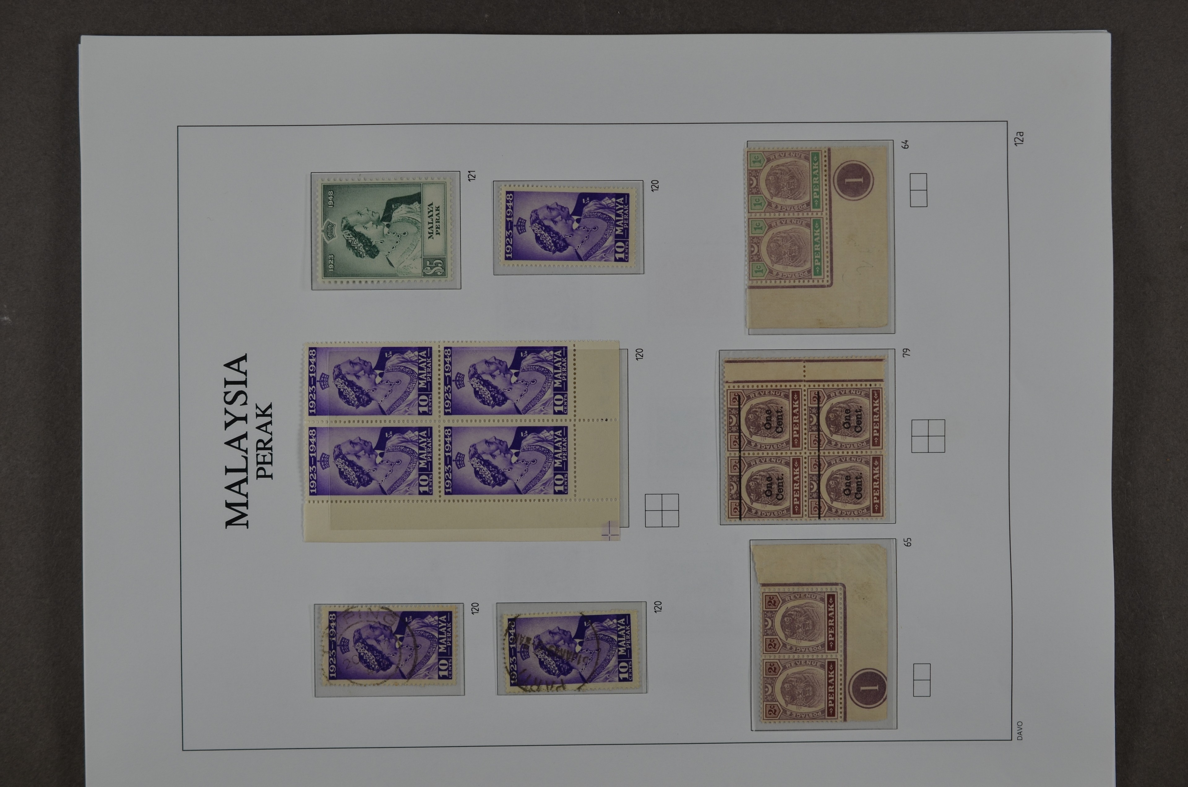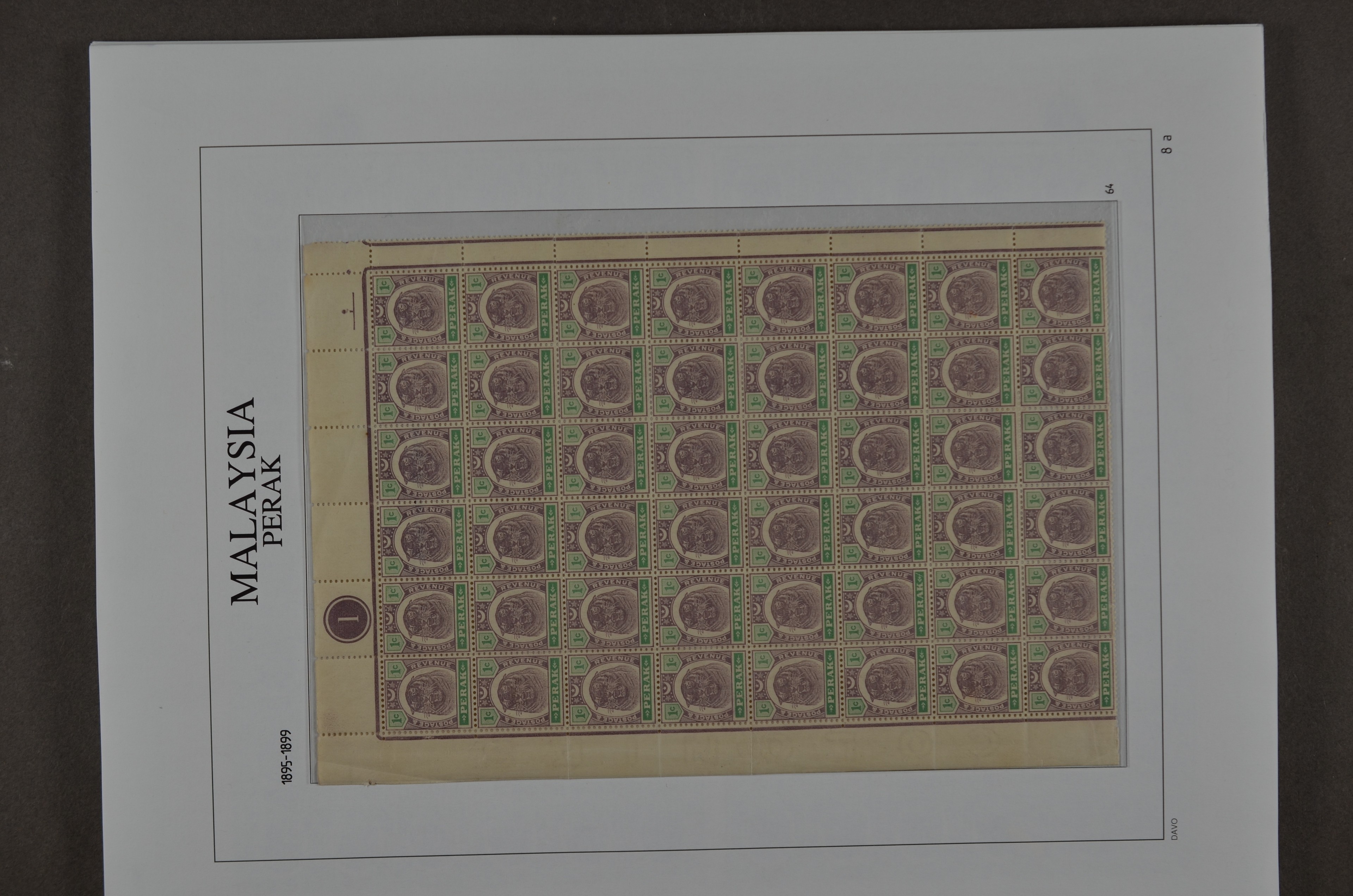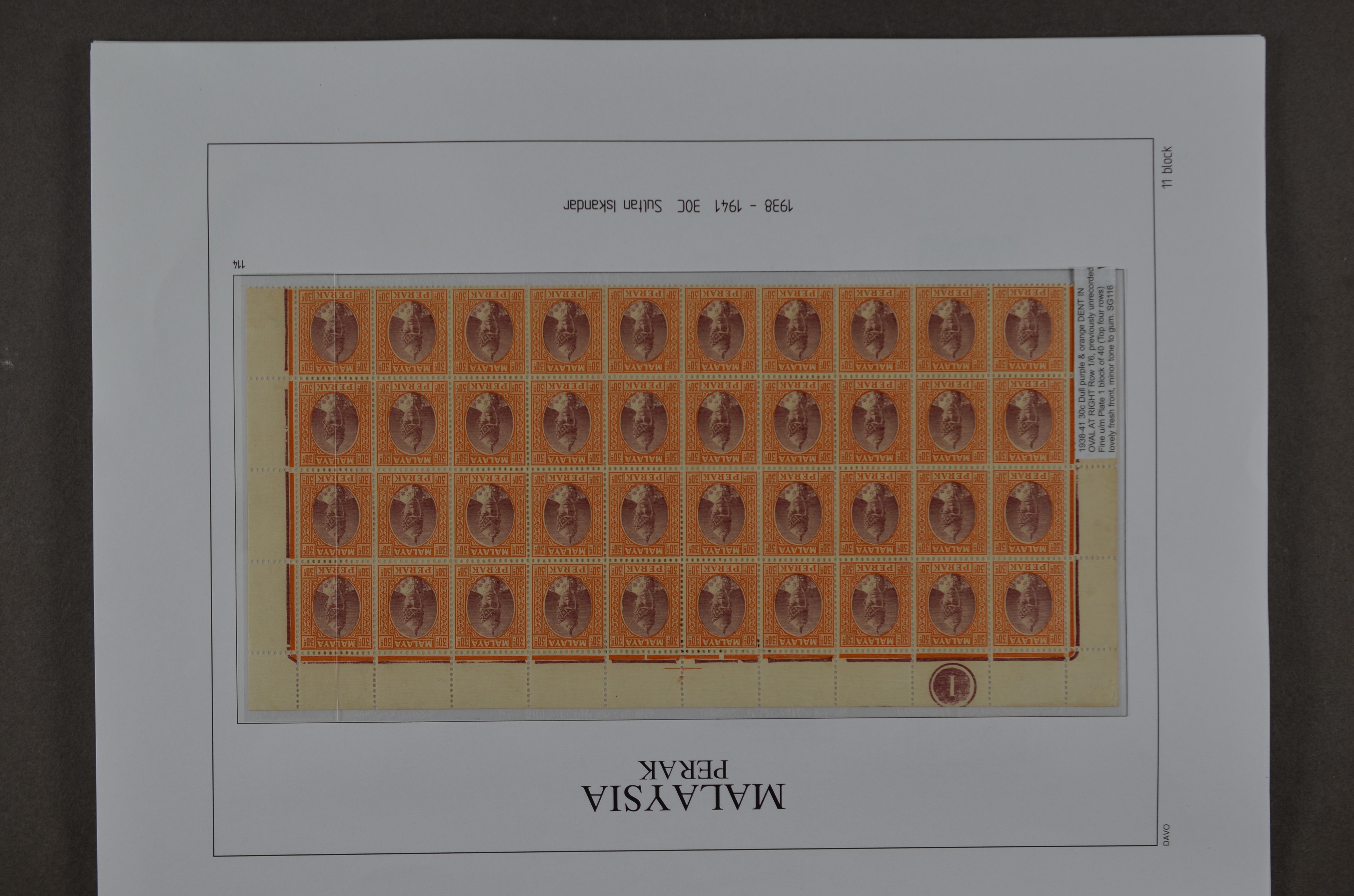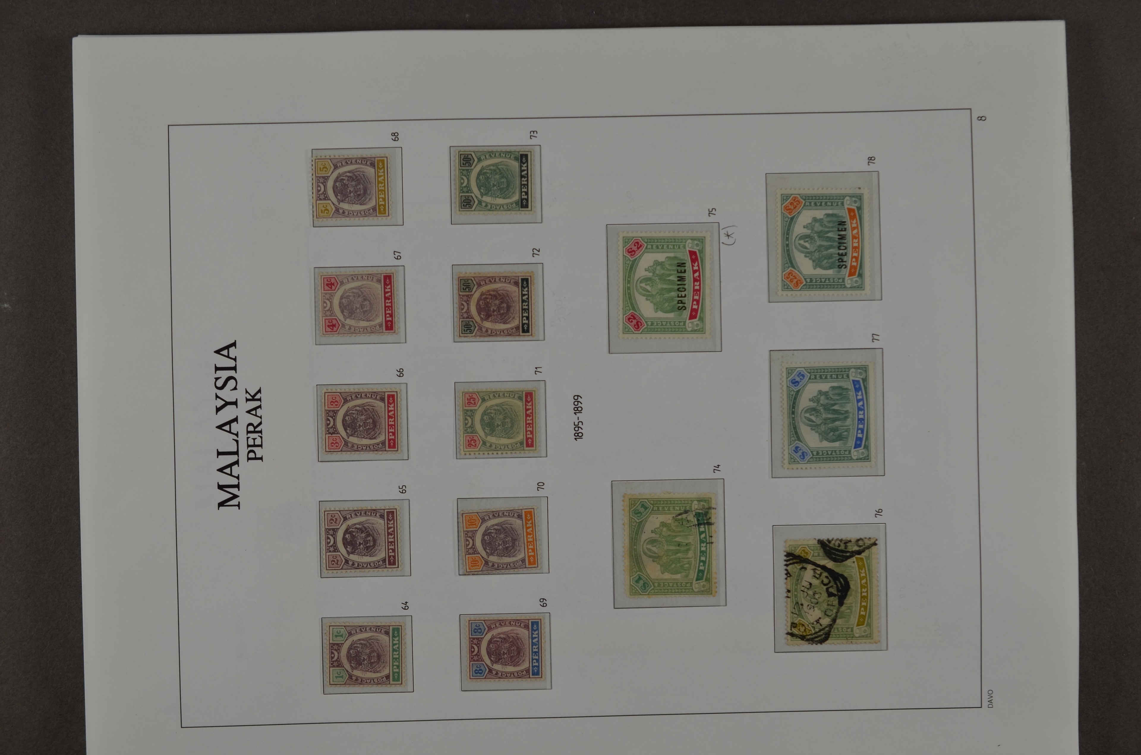 BR.COMMONWEALTH, Malaysian States, Perak 1878-1976, o/*/** collection on albumpages with several good numbers and sets, varieties and printing errors with f.i.: S.G.1 (small thin), 4, 7, 8 (small oxidation spot), 9, 16, 21, 28, 41, 45, 47, 66/76 incl. 66a malformed L (2), 78, 79, 80s, 88/102, 103/21, O.7, O.9, etc., etc. Although there are some numbers with small remarks a beautiful lot which we do not see offered very often!!