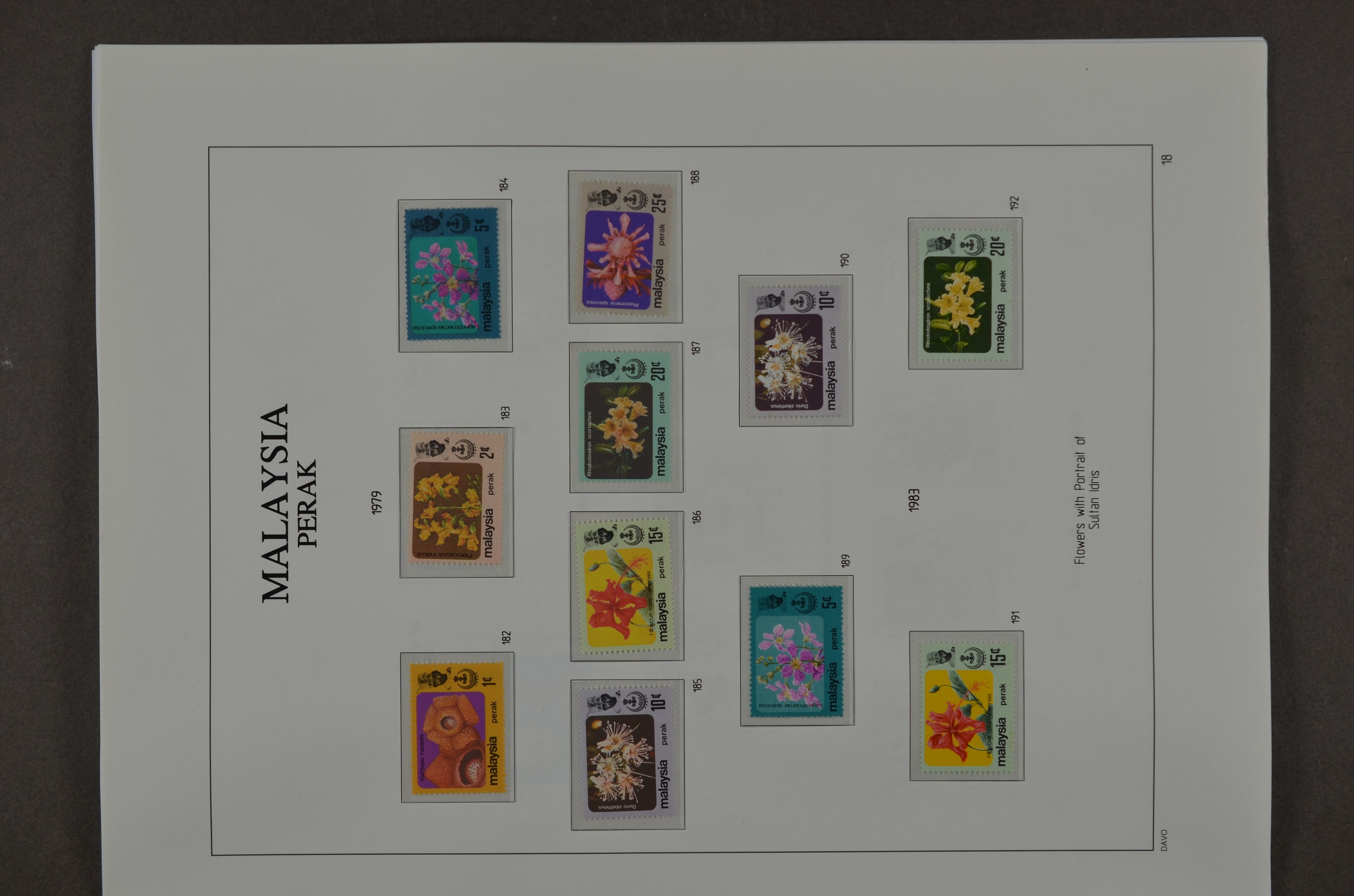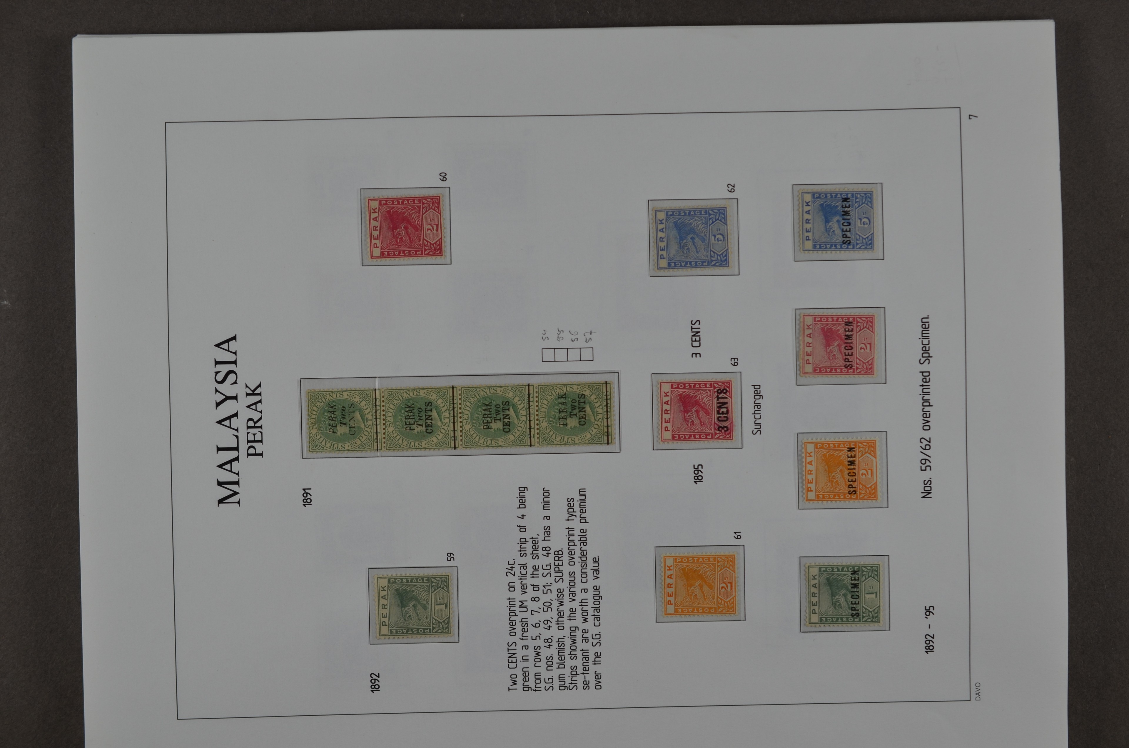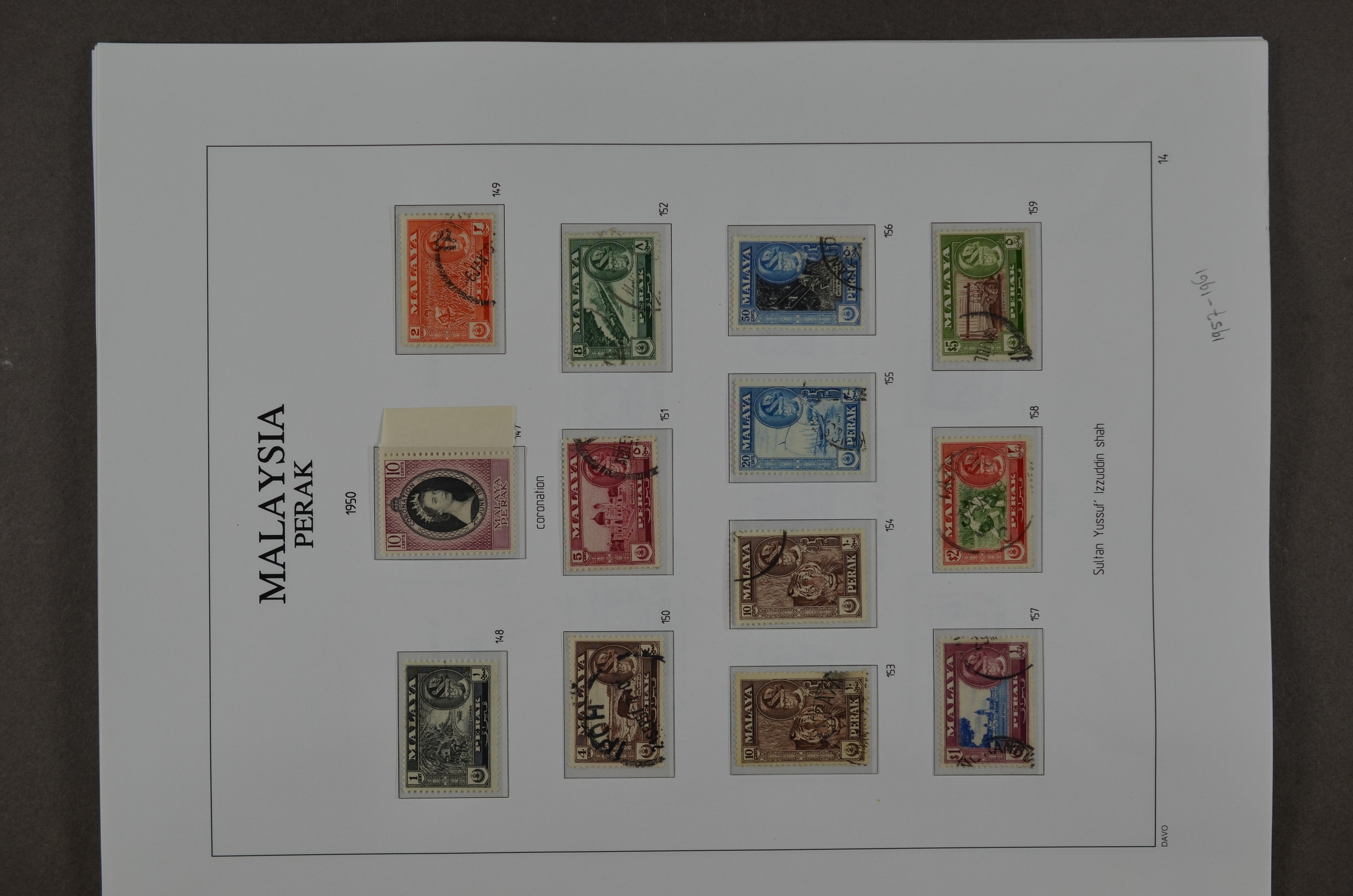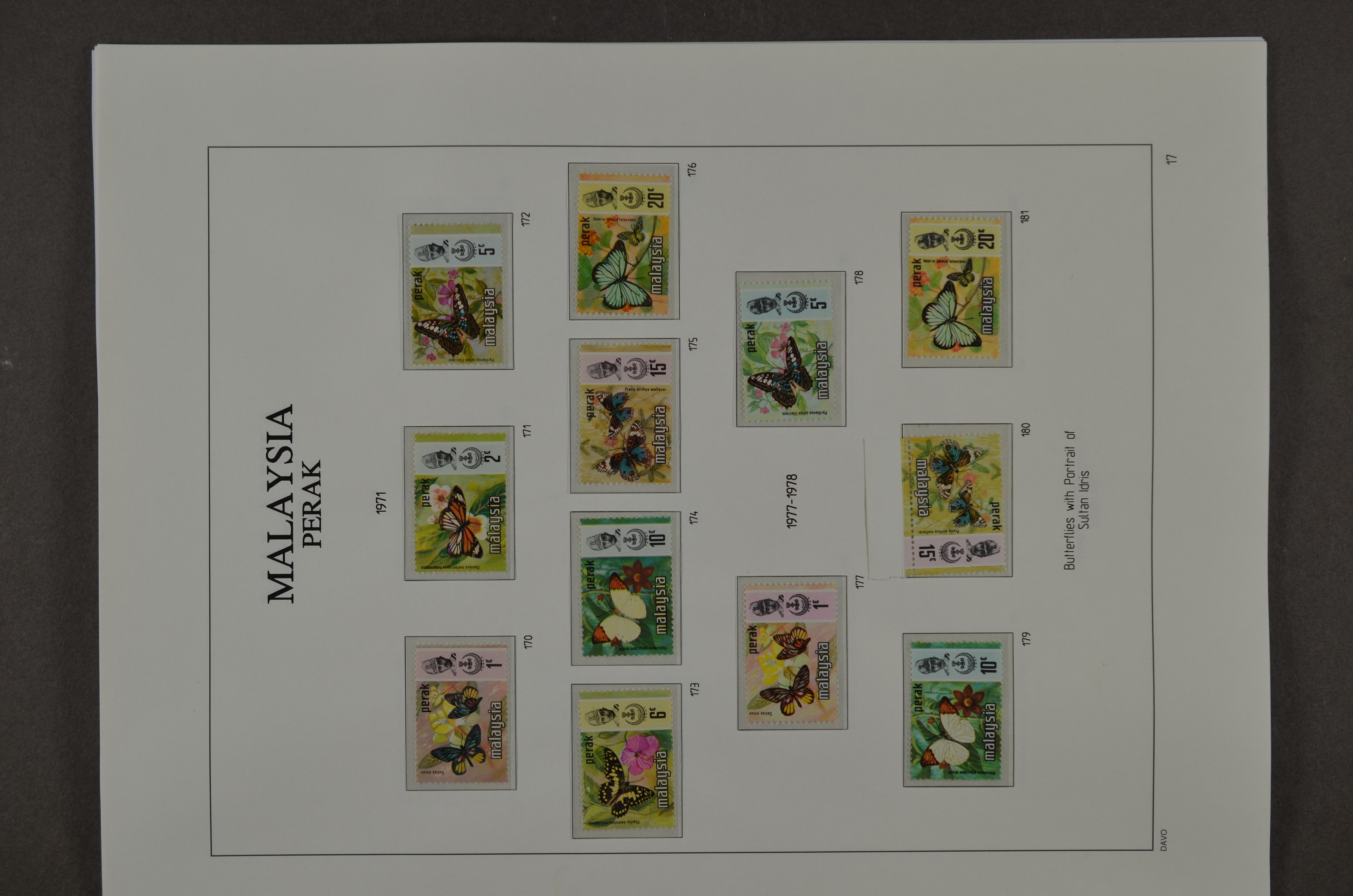 BR.COMMONWEALTH, Malaysian States, Perak 1878-1976, o/*/** collection on albumpages with several good numbers and sets, varieties and printing errors with f.i.: S.G.1 (small thin), 4, 7, 8 (small oxidation spot), 9, 16, 21, 28, 41, 45, 47, 66/76 incl. 66a malformed L (2), 78, 79, 80s, 88/102, 103/21, O.7, O.9, etc., etc. Although there are some numbers with small remarks a beautiful lot which we do not see offered very often!!