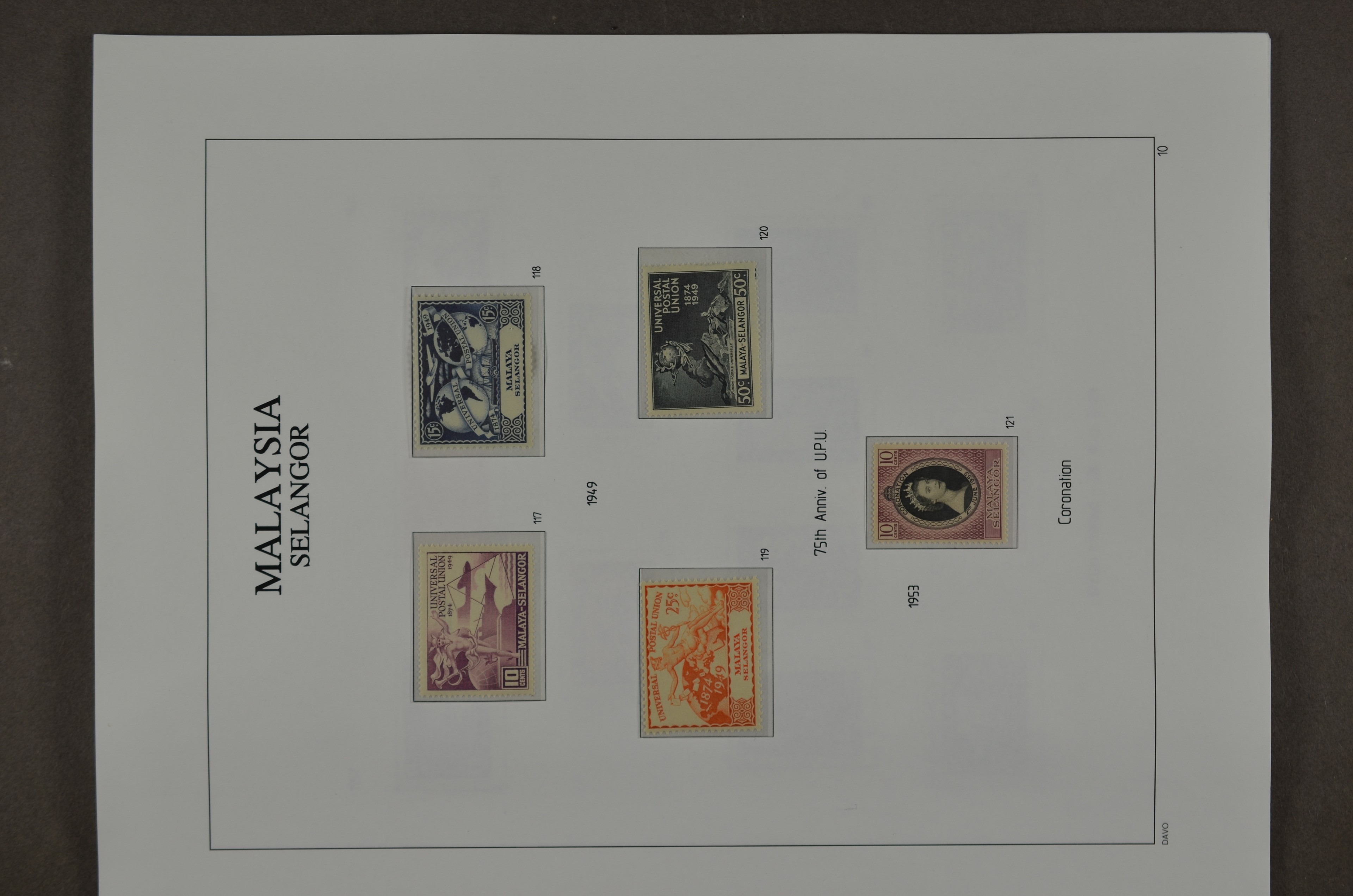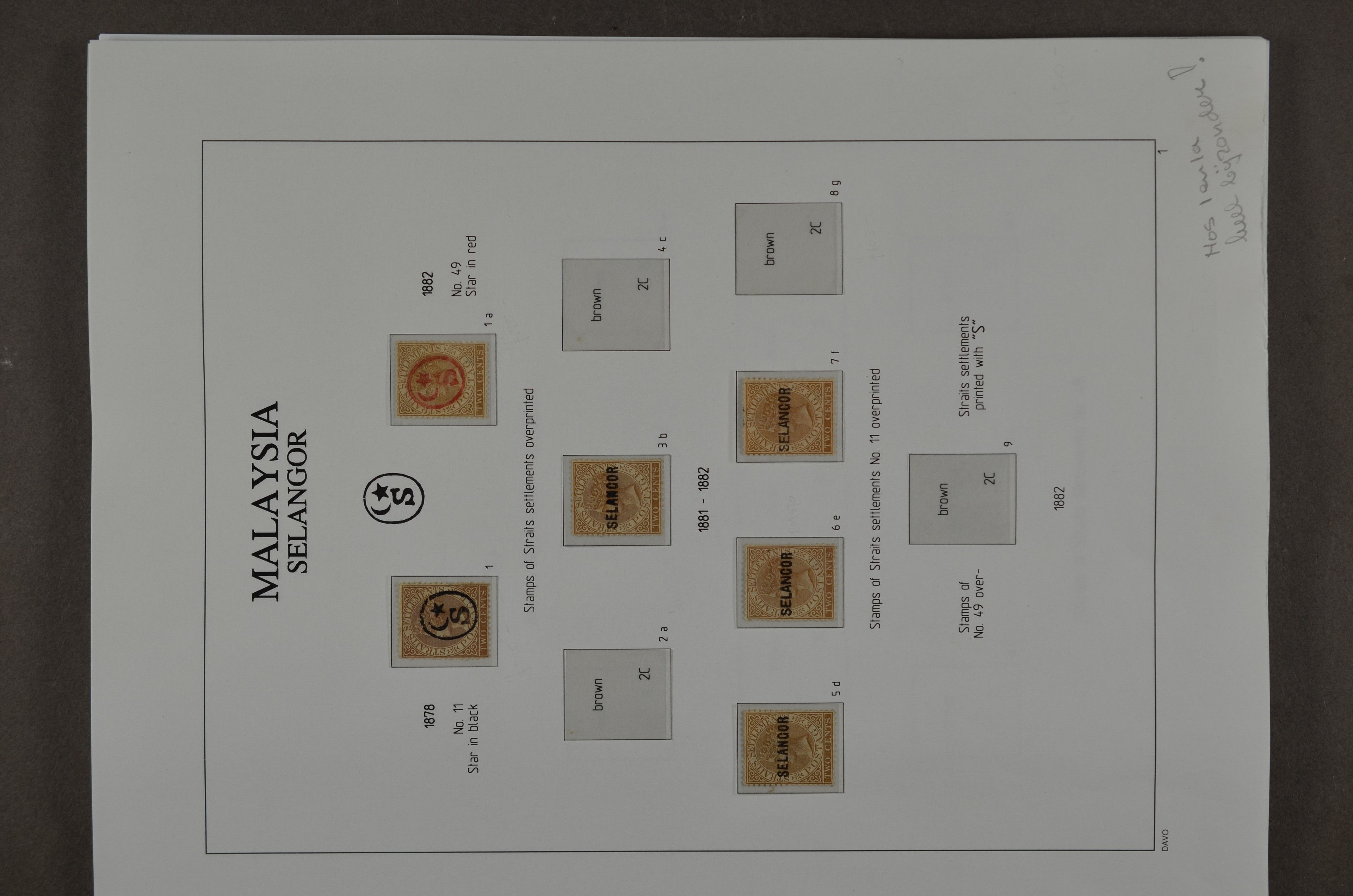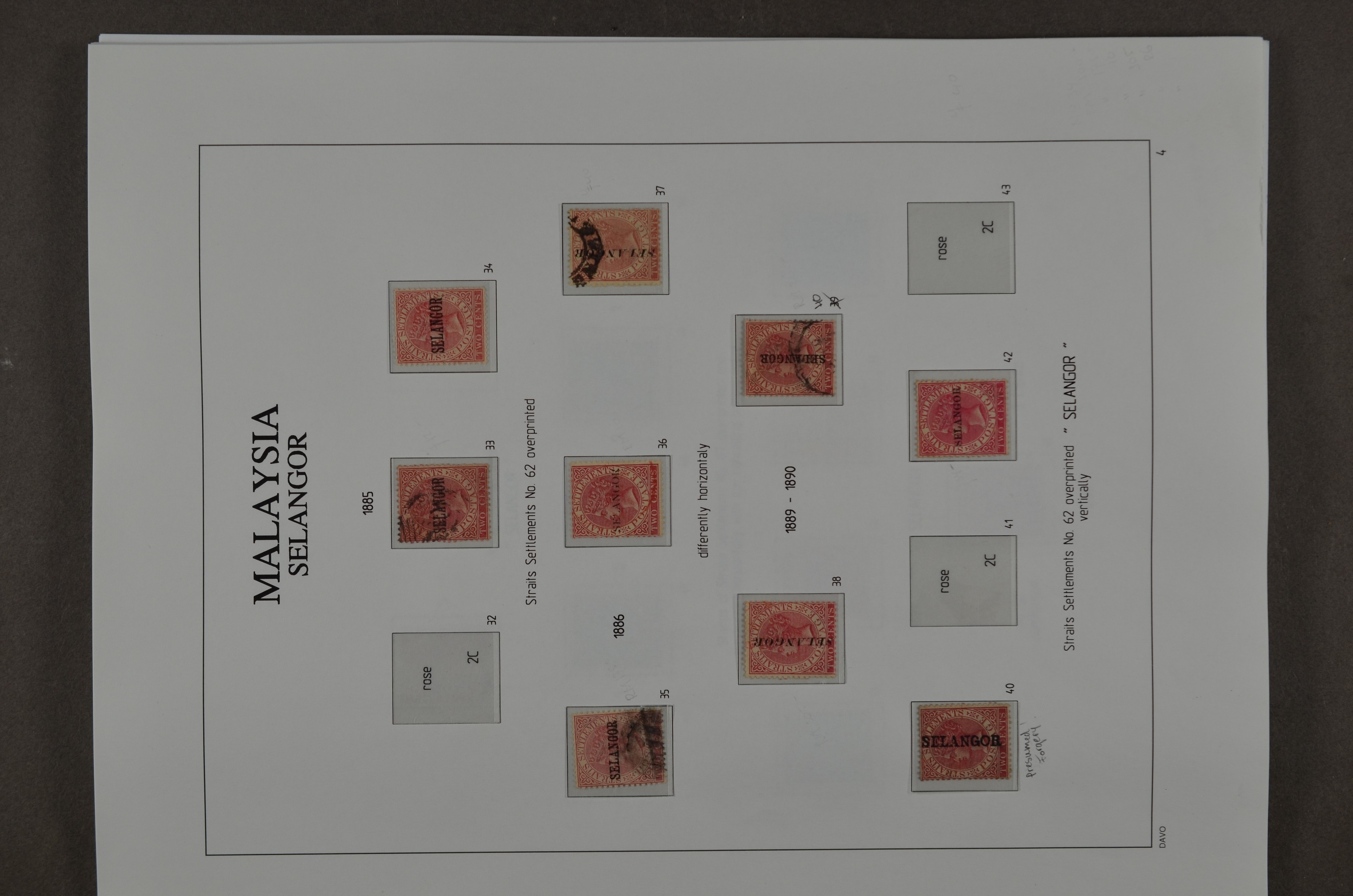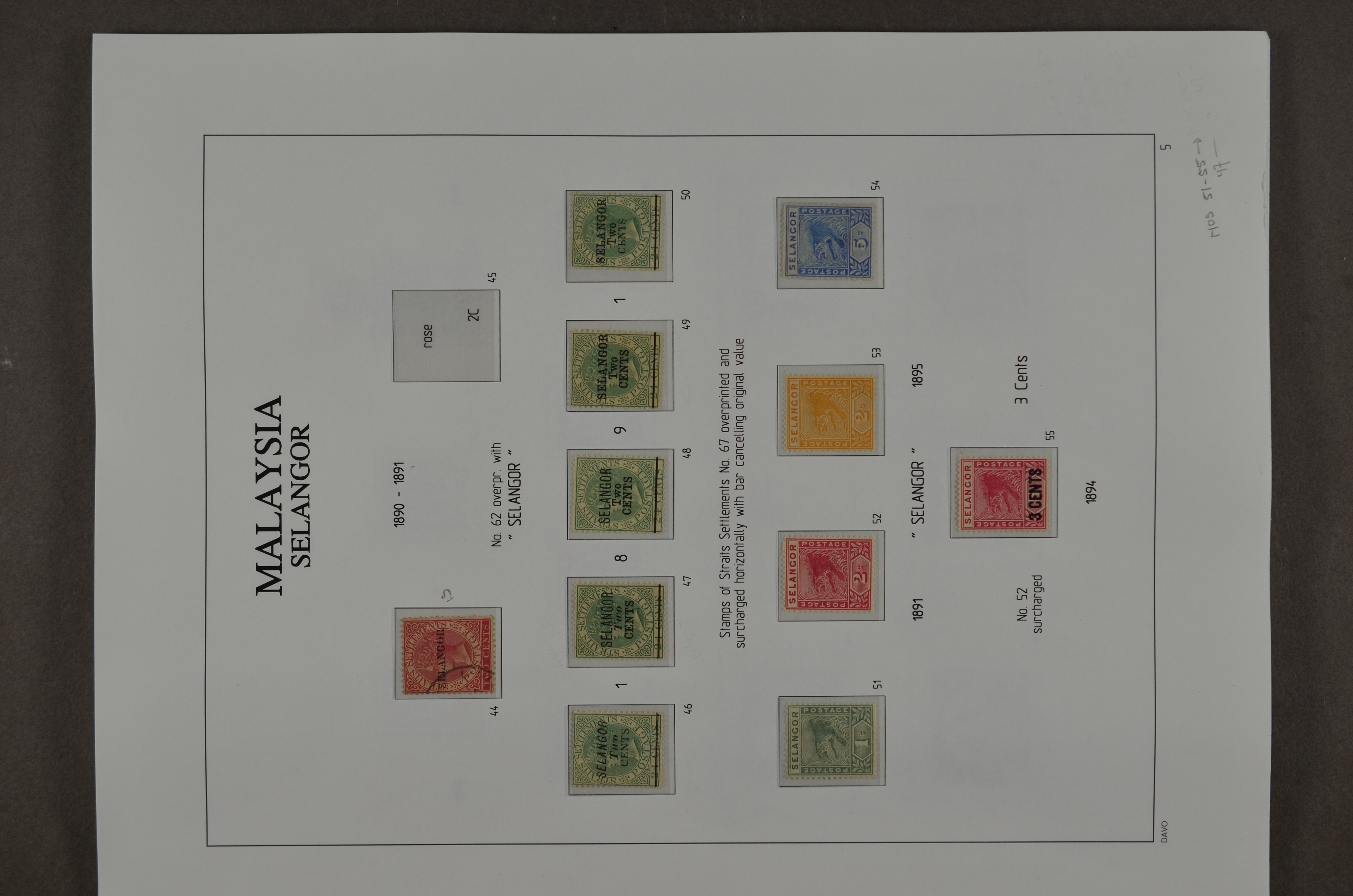 BR.COMMONWEALTH, Malaysian States, Selangor 1881-1976, o/*/**, beautiful collection on albumpages with several good numbers including: the crescent and star-overprint in black and red, S.G.3, 5/7, 11, 13, 19, 22, 23, 25, 27, 42, 44/48, 60, 63, 64, 65s/66Ss, 68/85 and 90/110, nice lot with high cataloque value!!