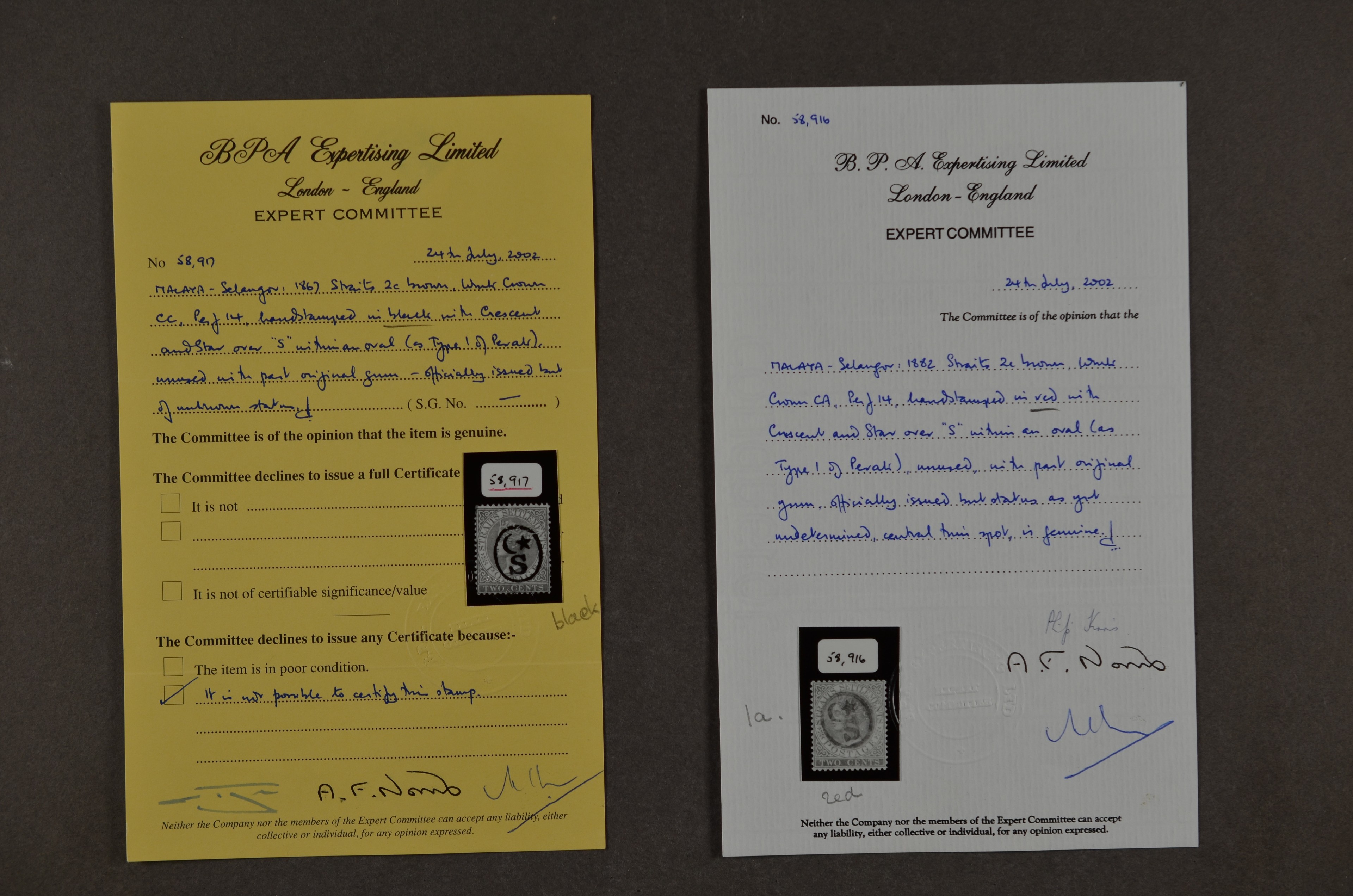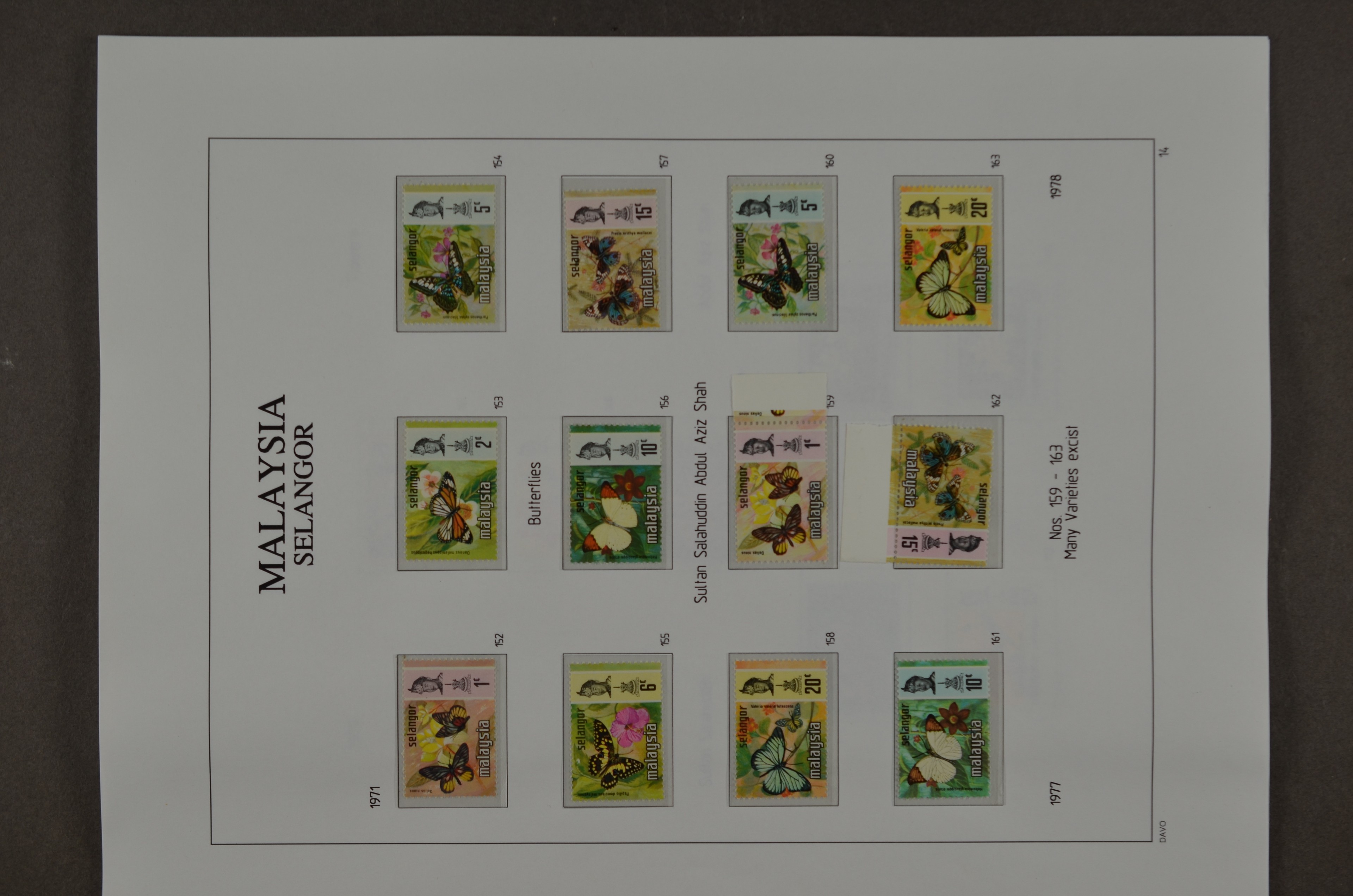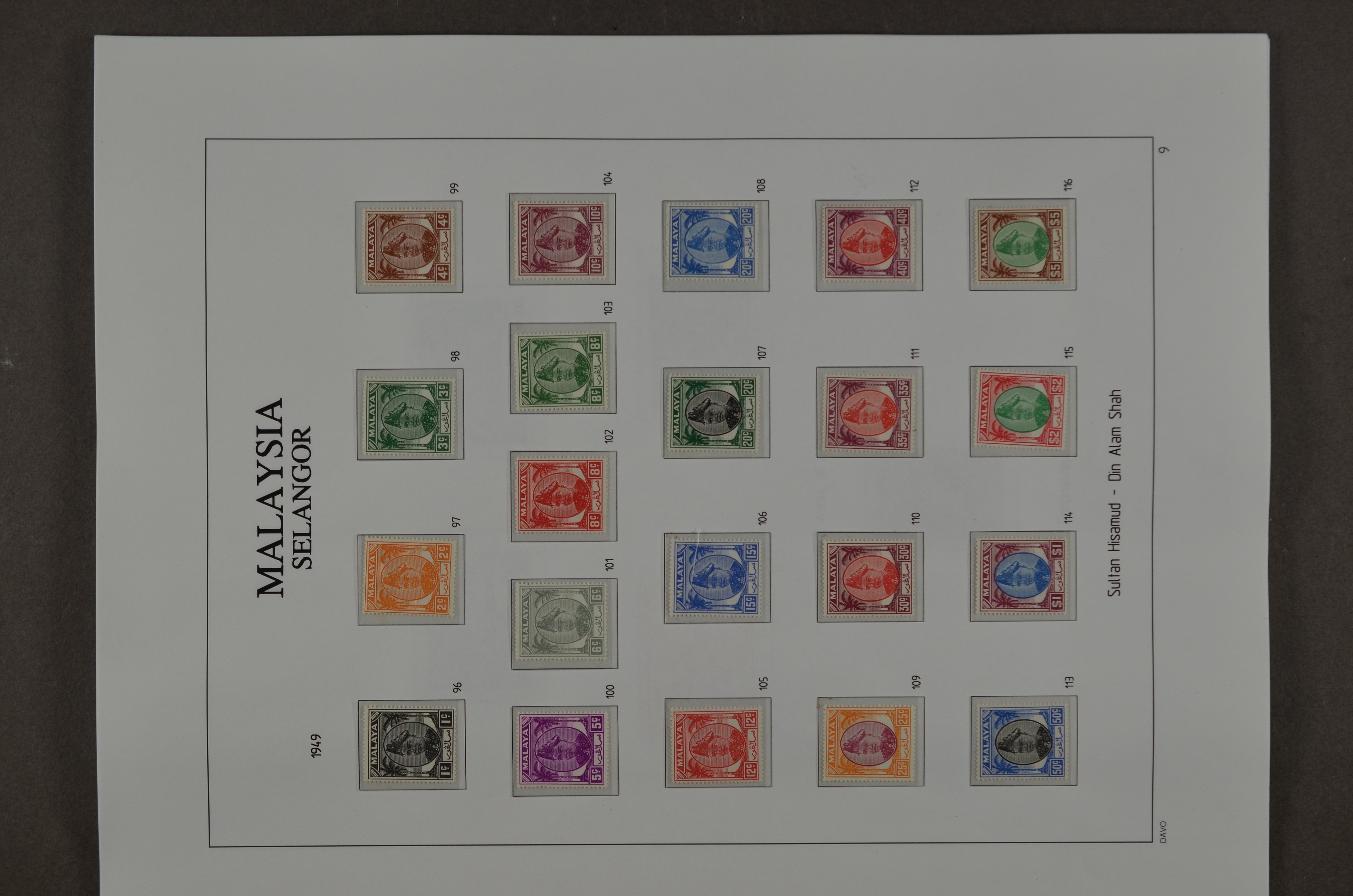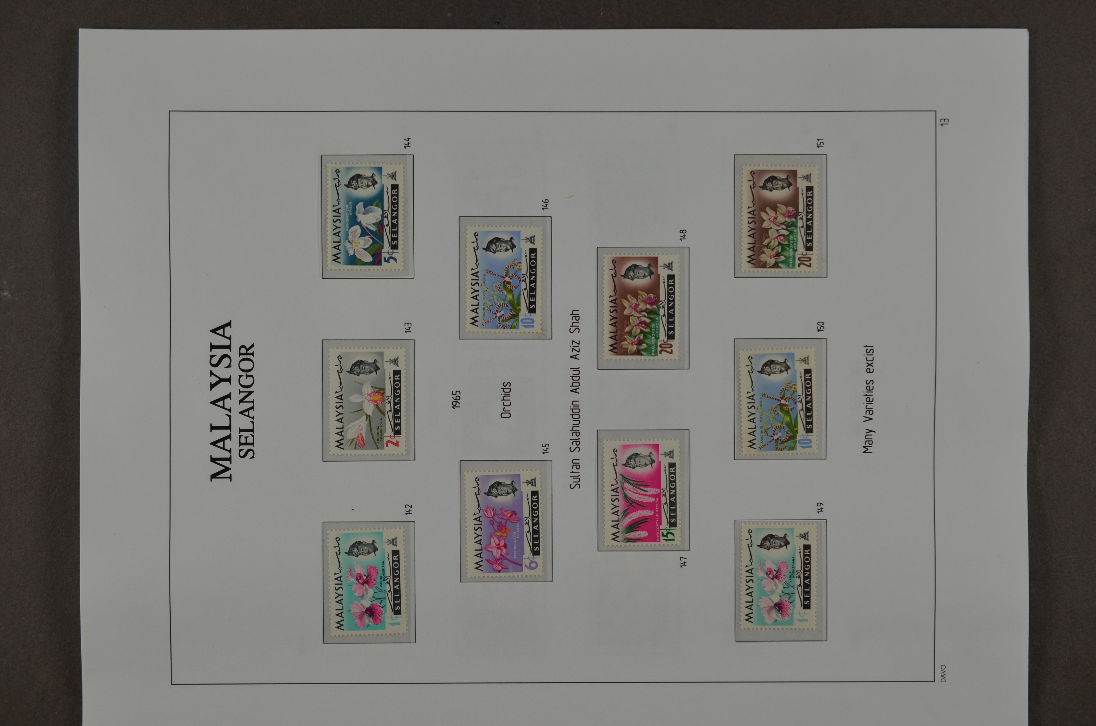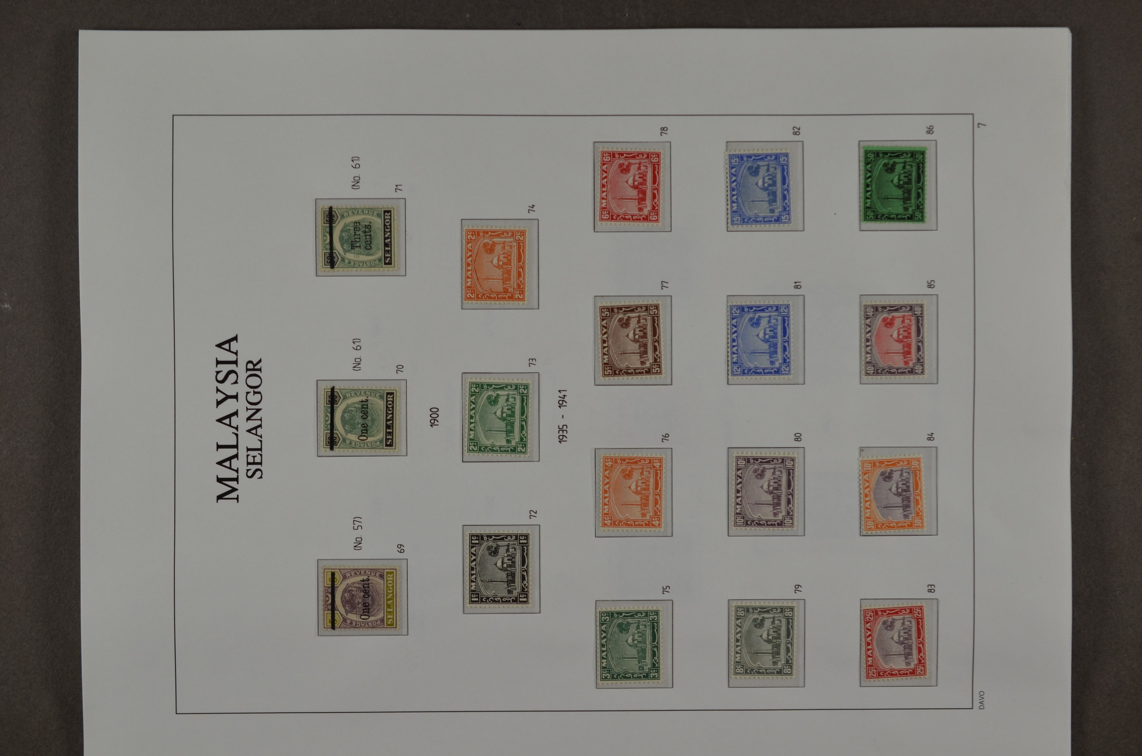 BR.COMMONWEALTH, Malaysian States, Selangor 1881-1976, o/*/**, beautiful collection on albumpages with several good numbers including: the crescent and star-overprint in black and red, S.G.3, 5/7, 11, 13, 19, 22, 23, 25, 27, 42, 44/48, 60, 63, 64, 65s/66Ss, 68/85 and 90/110, nice lot with high cataloque value!!