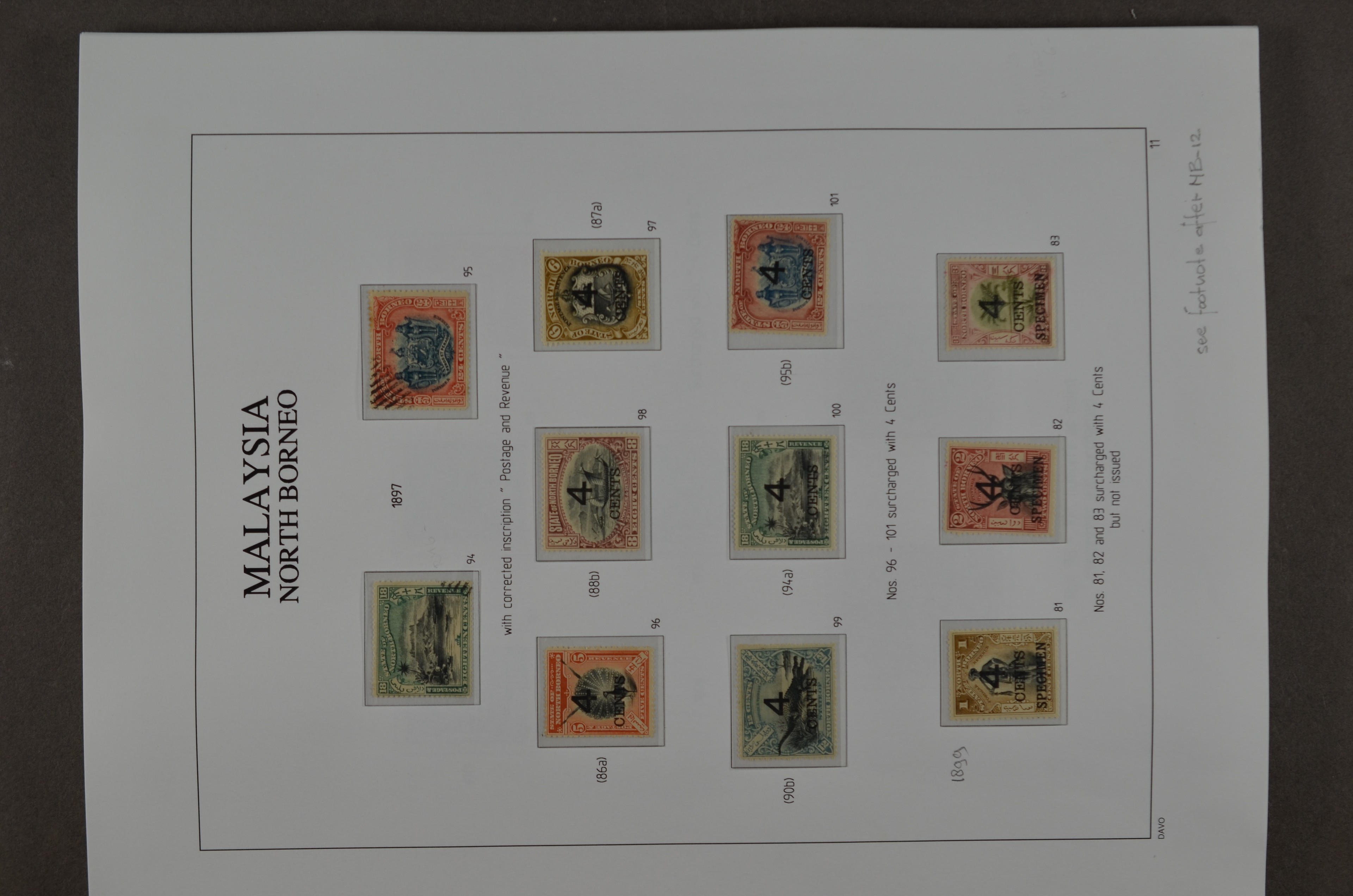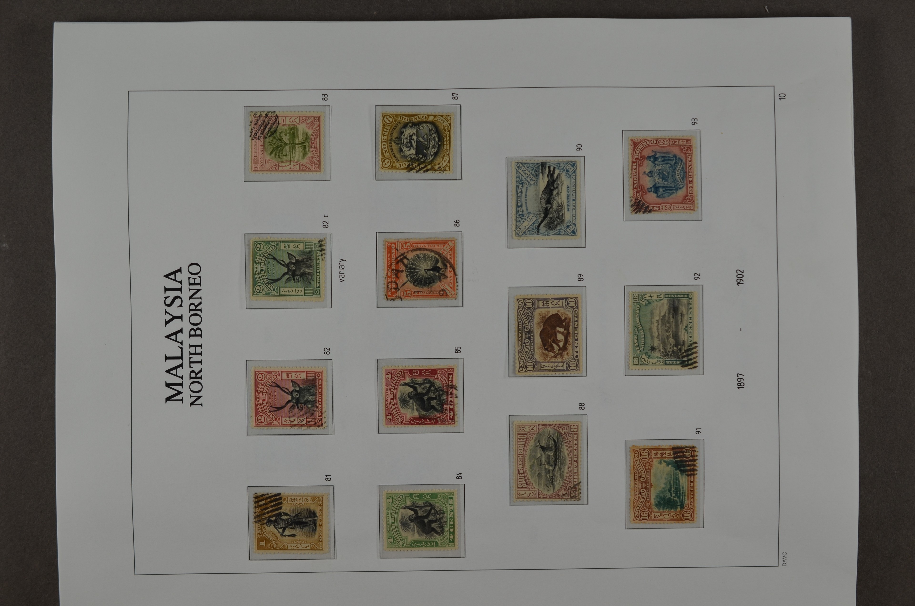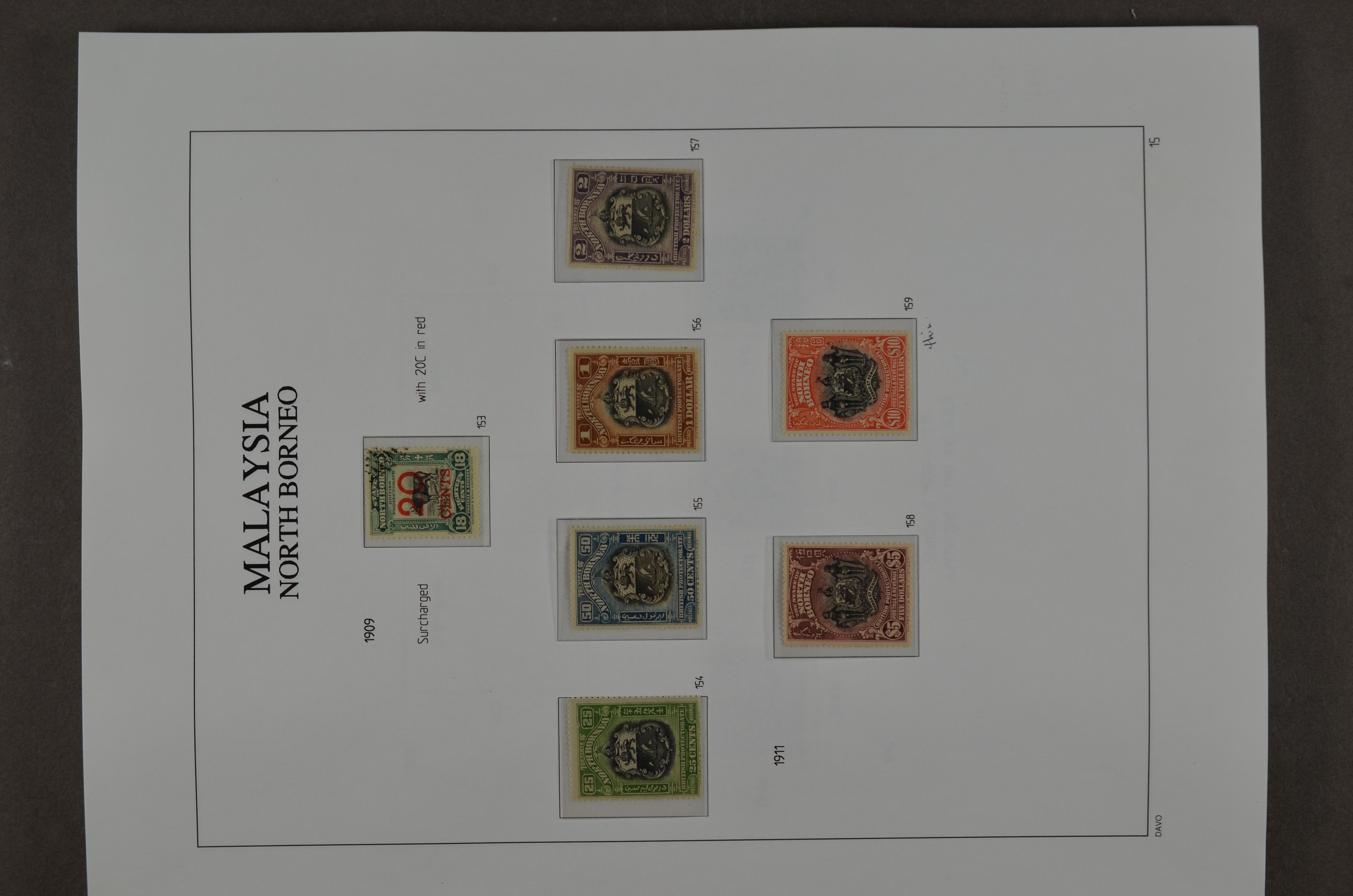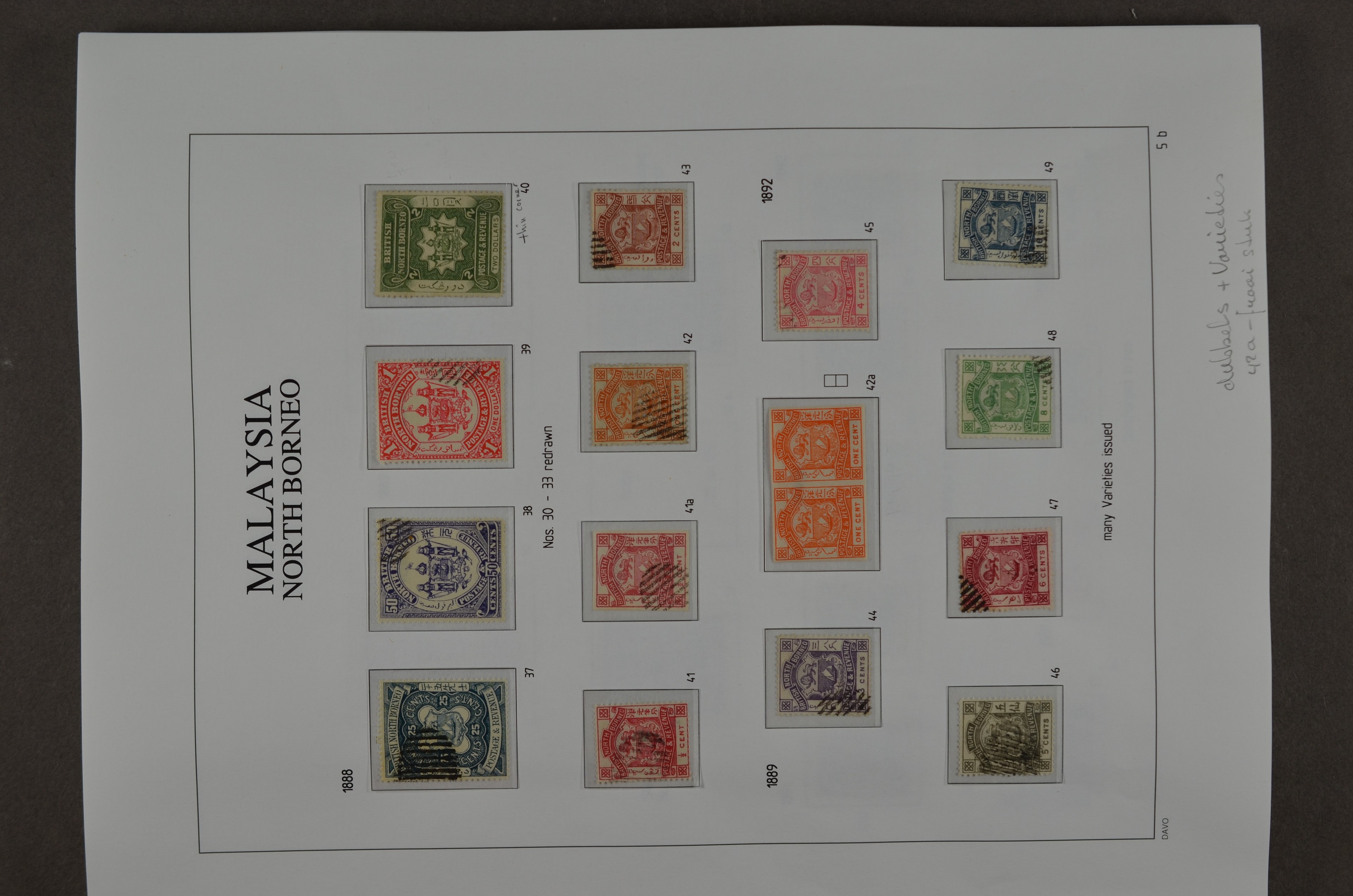 BR.COMMONWEALTH, North Borneo 1883-1963, o/*/**, beautiful collection on albumpages with several expensive numbers and sets including: S.G.55a, 55b, 85 (single and block of four), 112/24, 178/83 ($.10,- thin), 189/201, 213, 214/34, 235/52, 277/94, 295/302, 303/17, 320/30, 391/406, D45, D47, D85/89, etc., etc.
