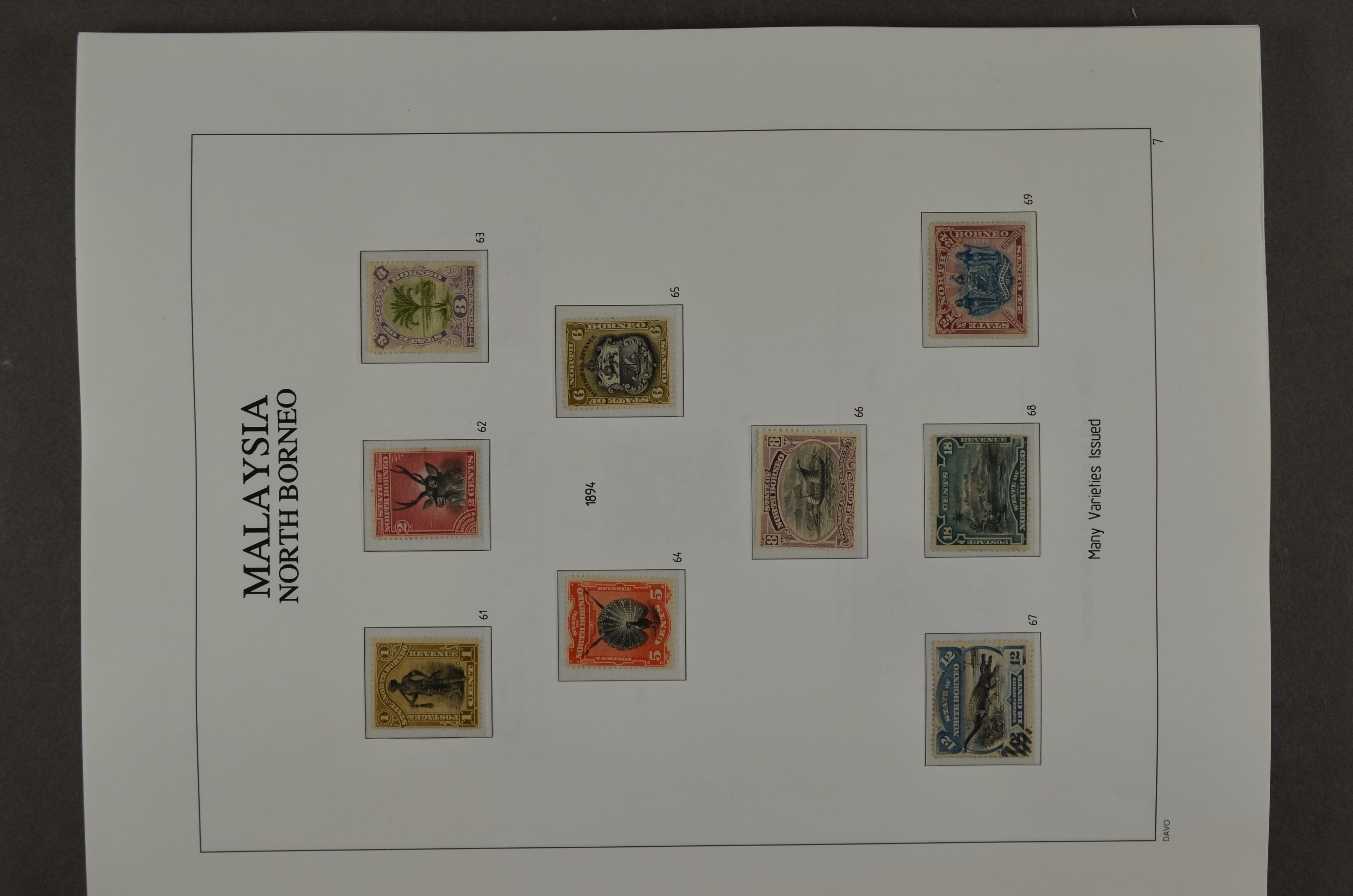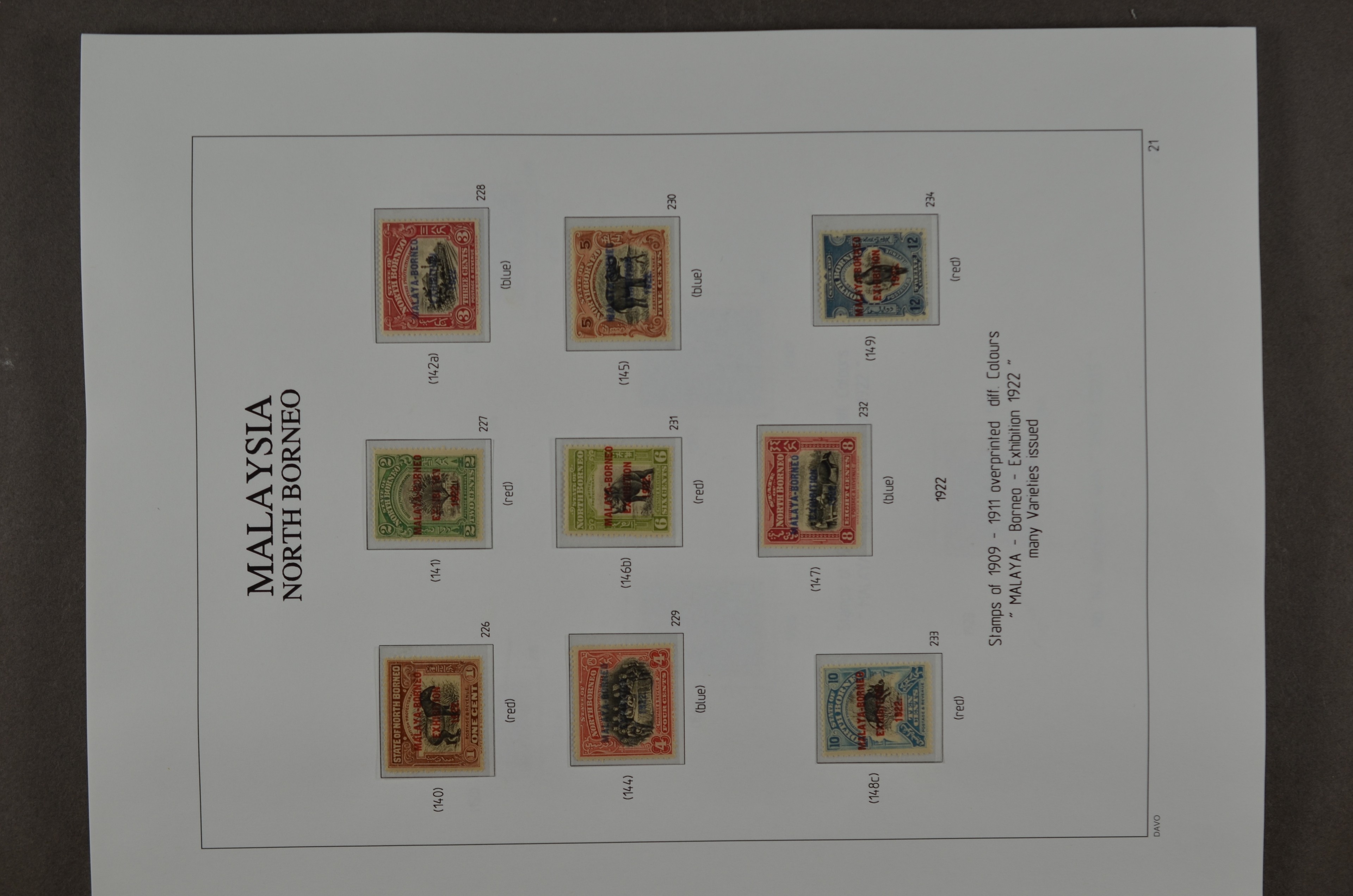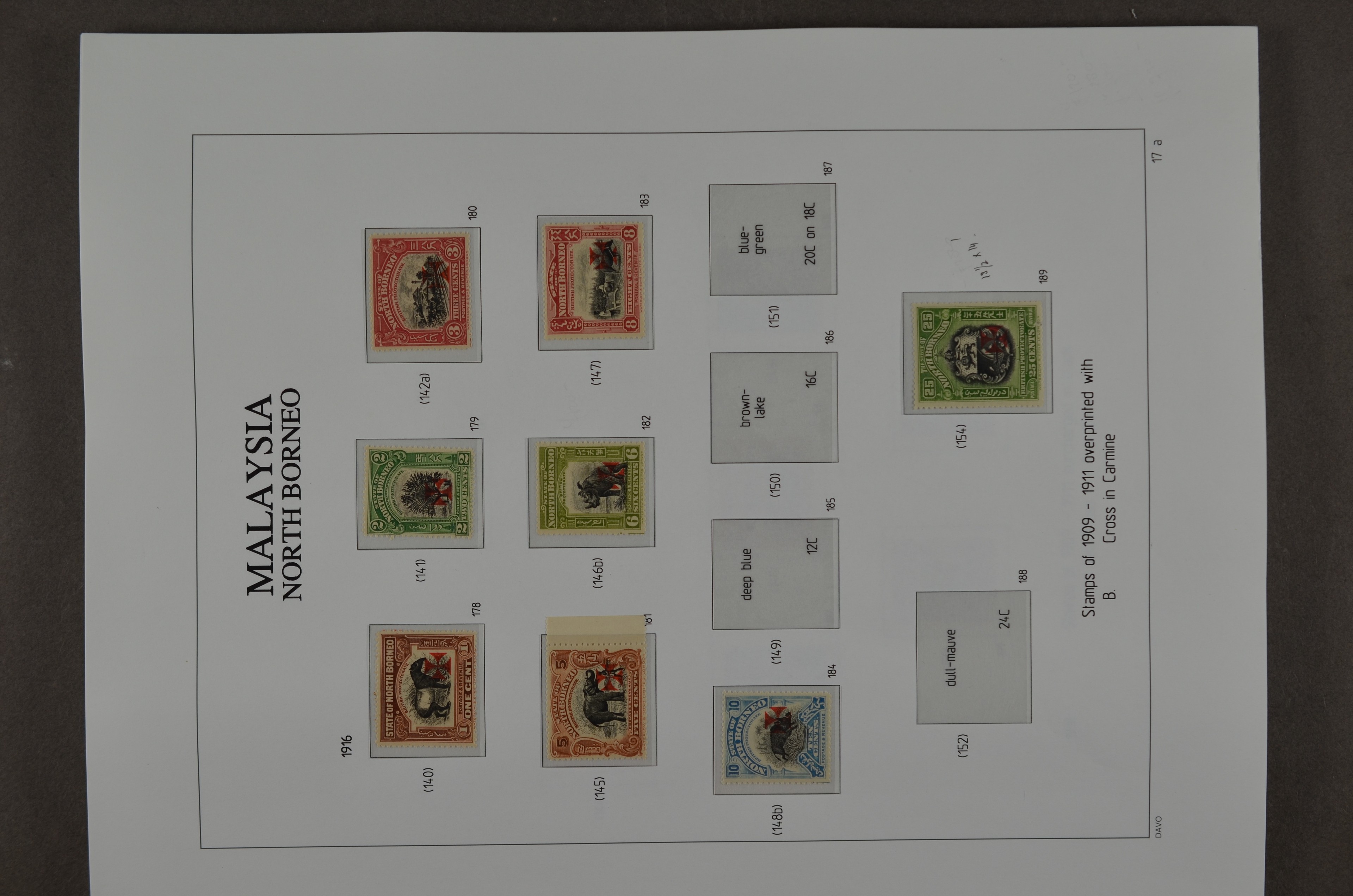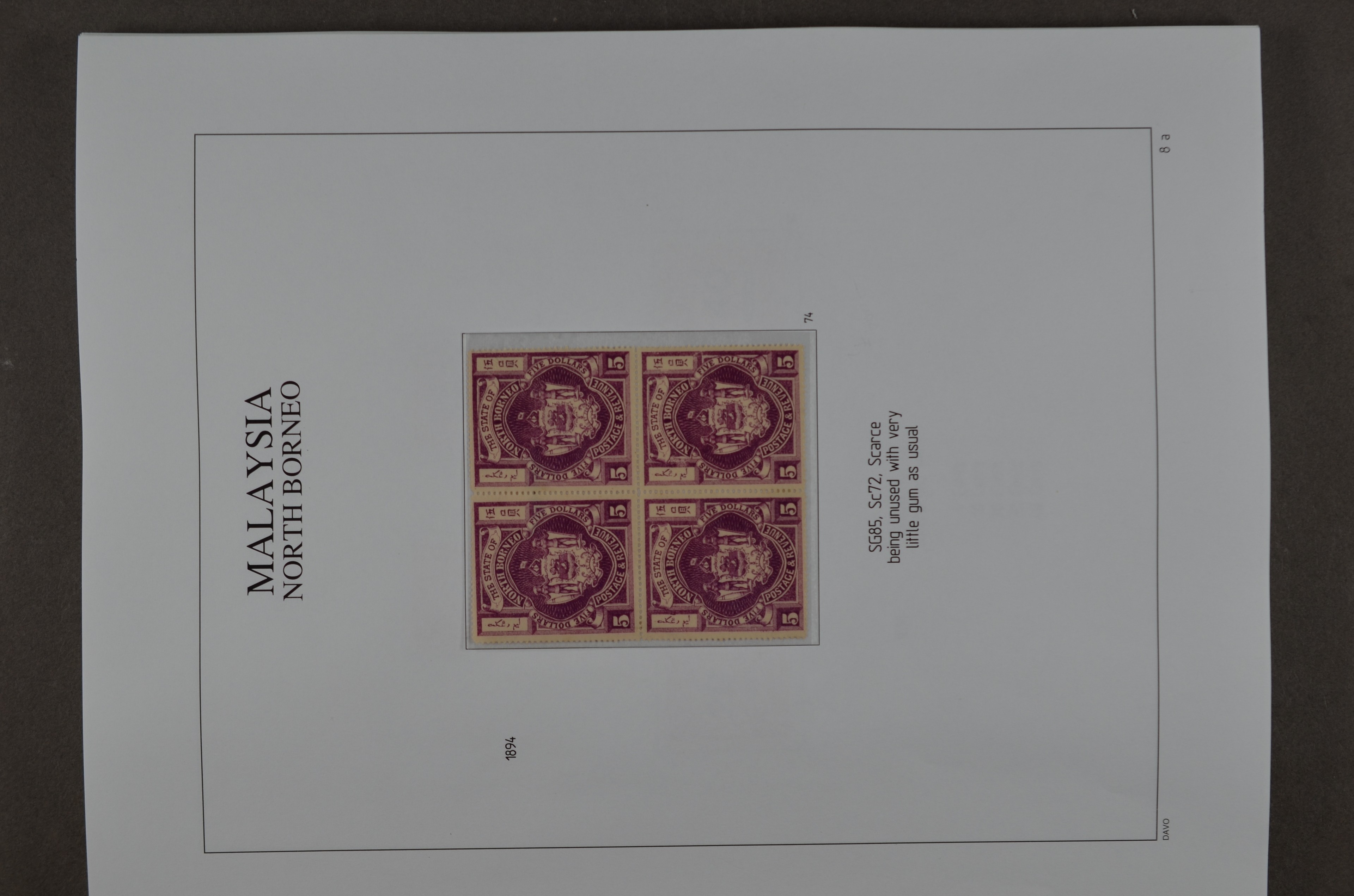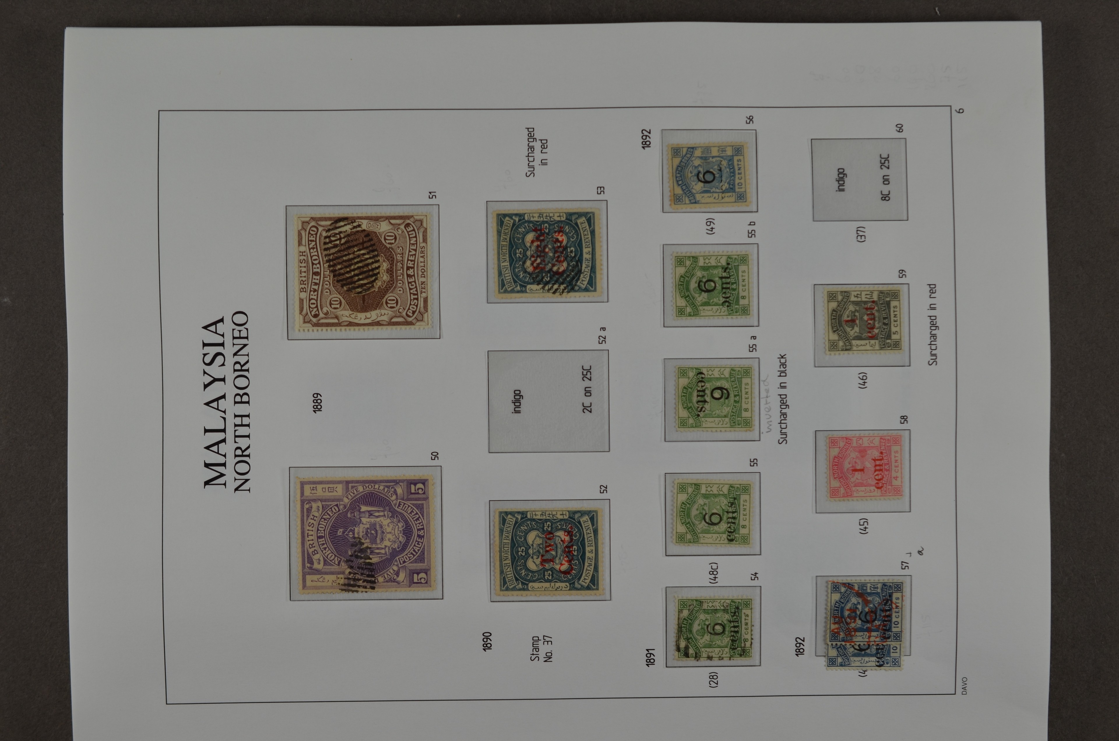 BR.COMMONWEALTH, North Borneo 1883-1963, o/*/**, beautiful collection on albumpages with several expensive numbers and sets including: S.G.55a, 55b, 85 (single and block of four), 112/24, 178/83 ($.10,- thin), 189/201, 213, 214/34, 235/52, 277/94, 295/302, 303/17, 320/30, 391/406, D45, D47, D85/89, etc., etc.