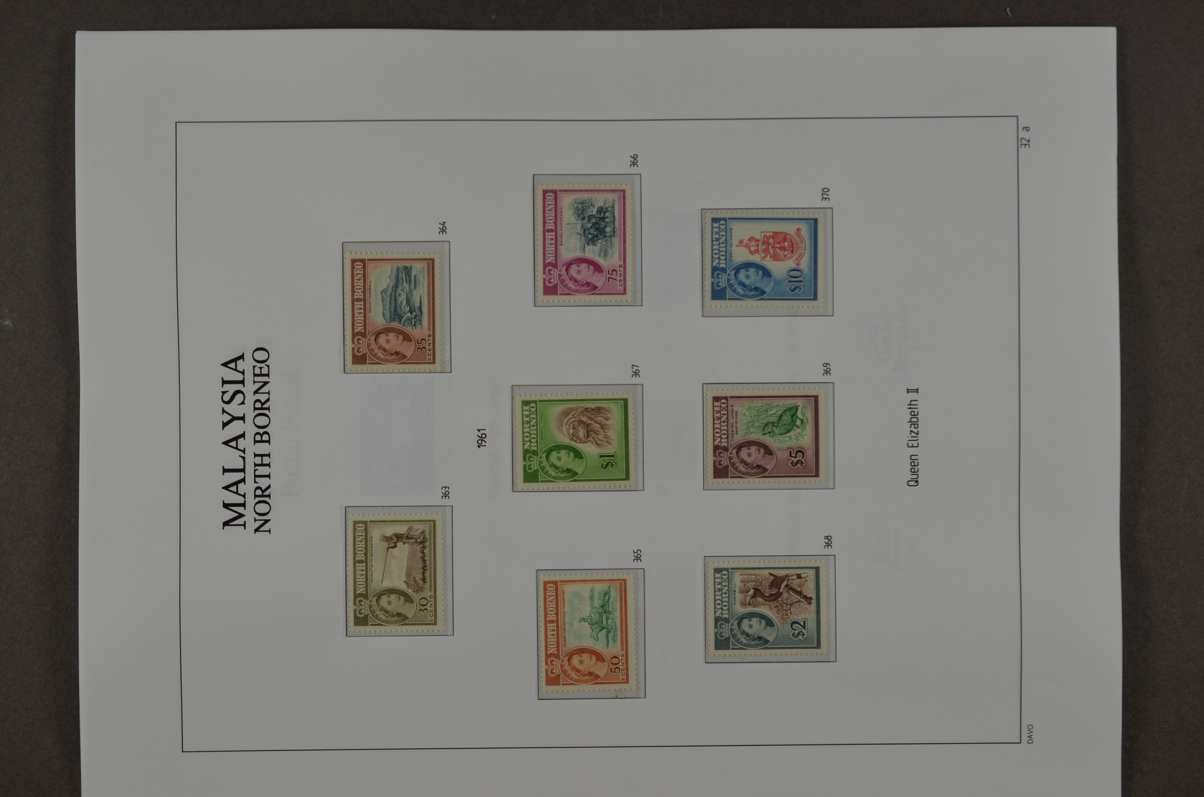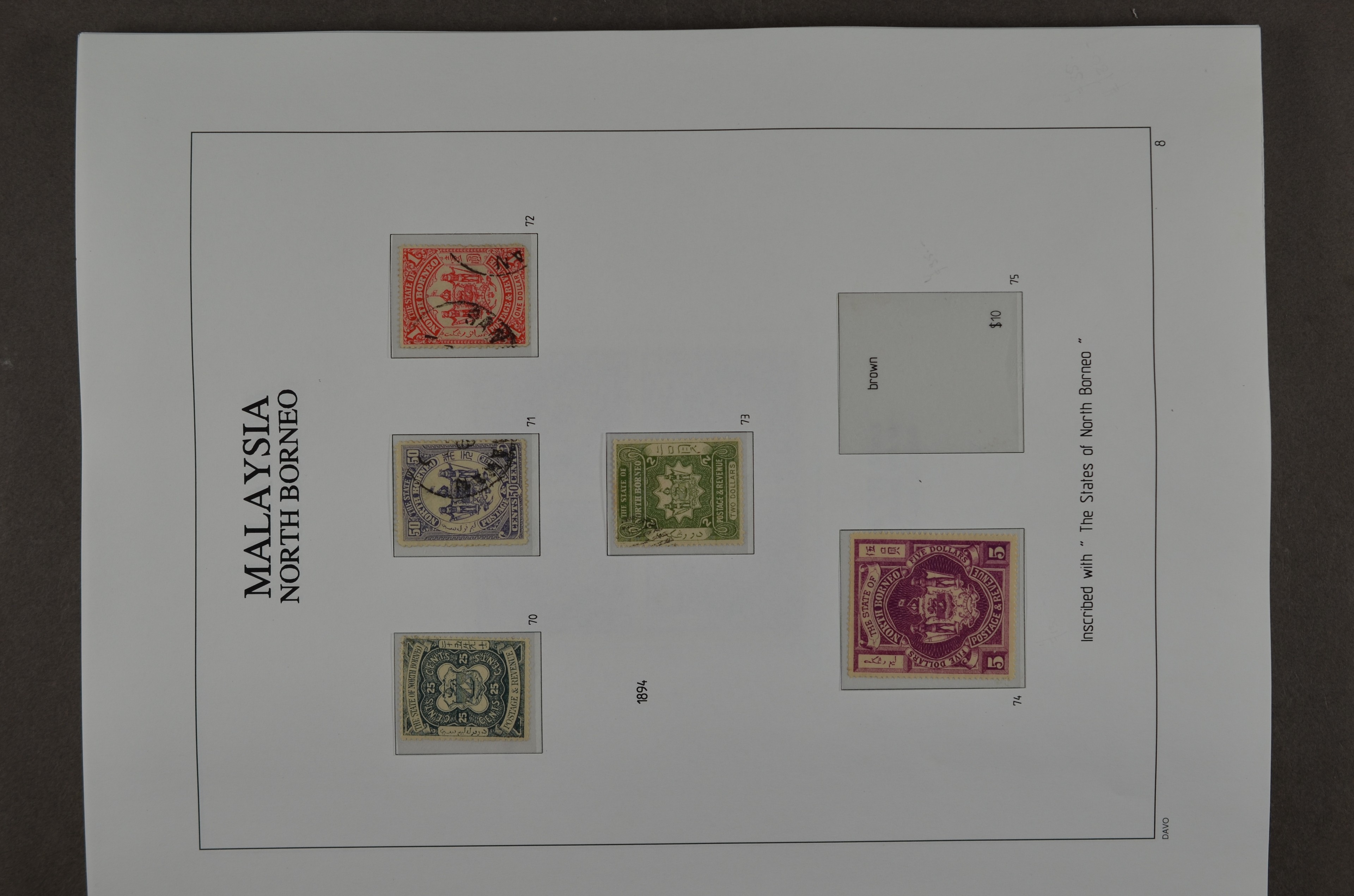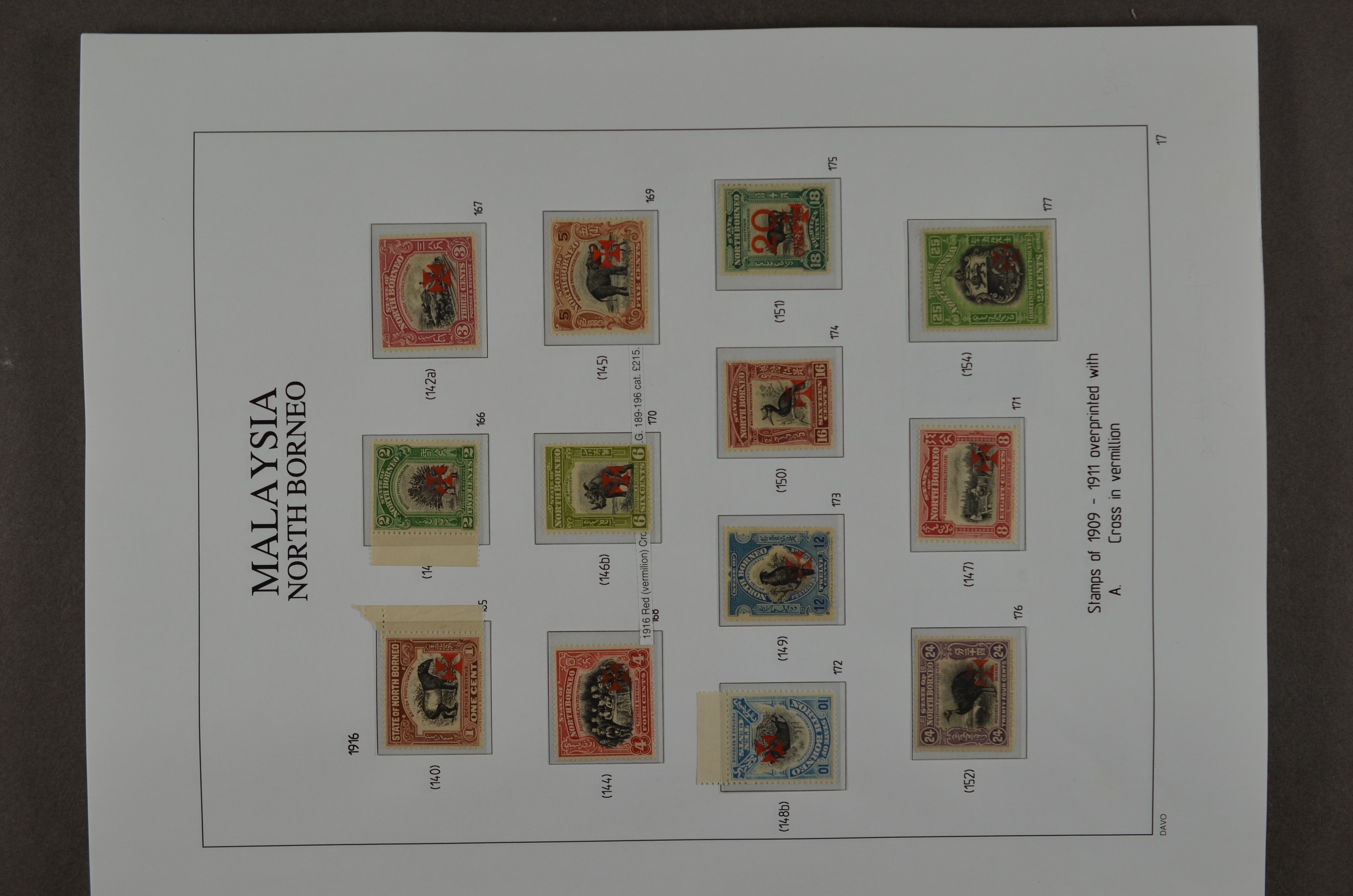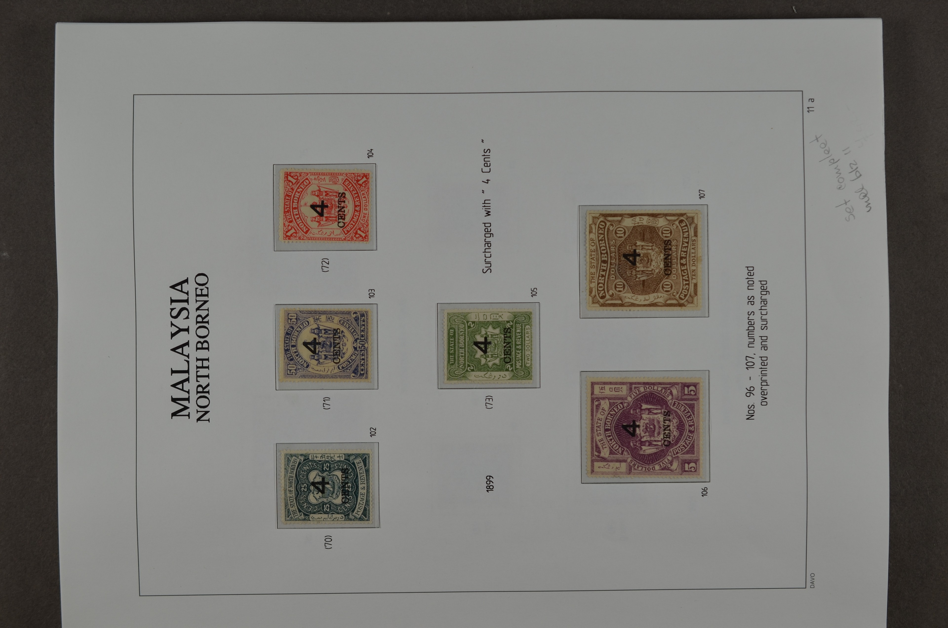 BR.COMMONWEALTH, North Borneo 1883-1963, o/*/**, beautiful collection on albumpages with several expensive numbers and sets including: S.G.55a, 55b, 85 (single and block of four), 112/24, 178/83 ($.10,- thin), 189/201, 213, 214/34, 235/52, 277/94, 295/302, 303/17, 320/30, 391/406, D45, D47, D85/89, etc., etc.