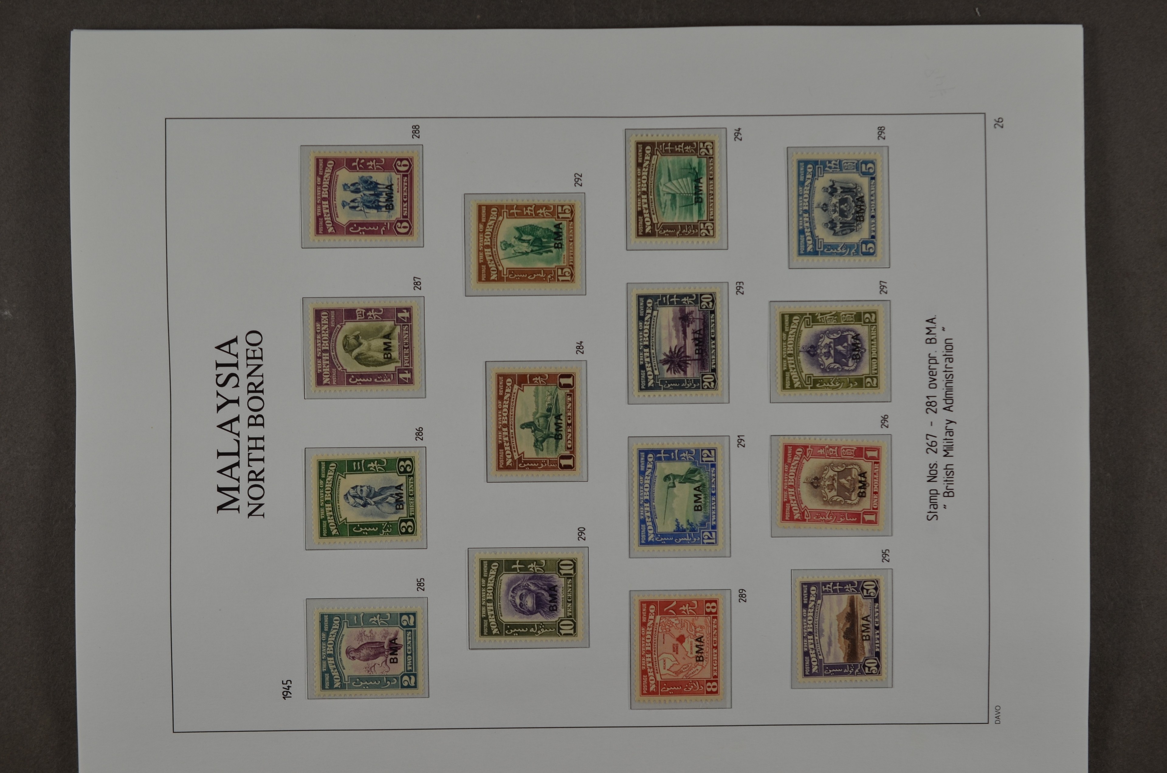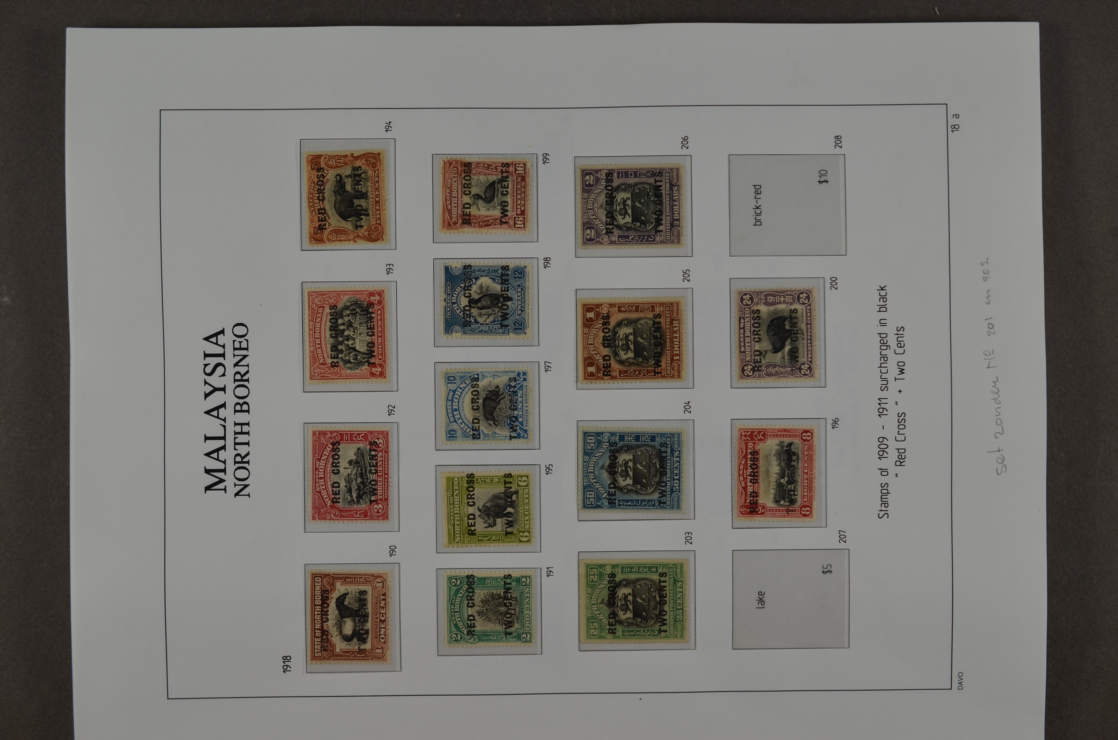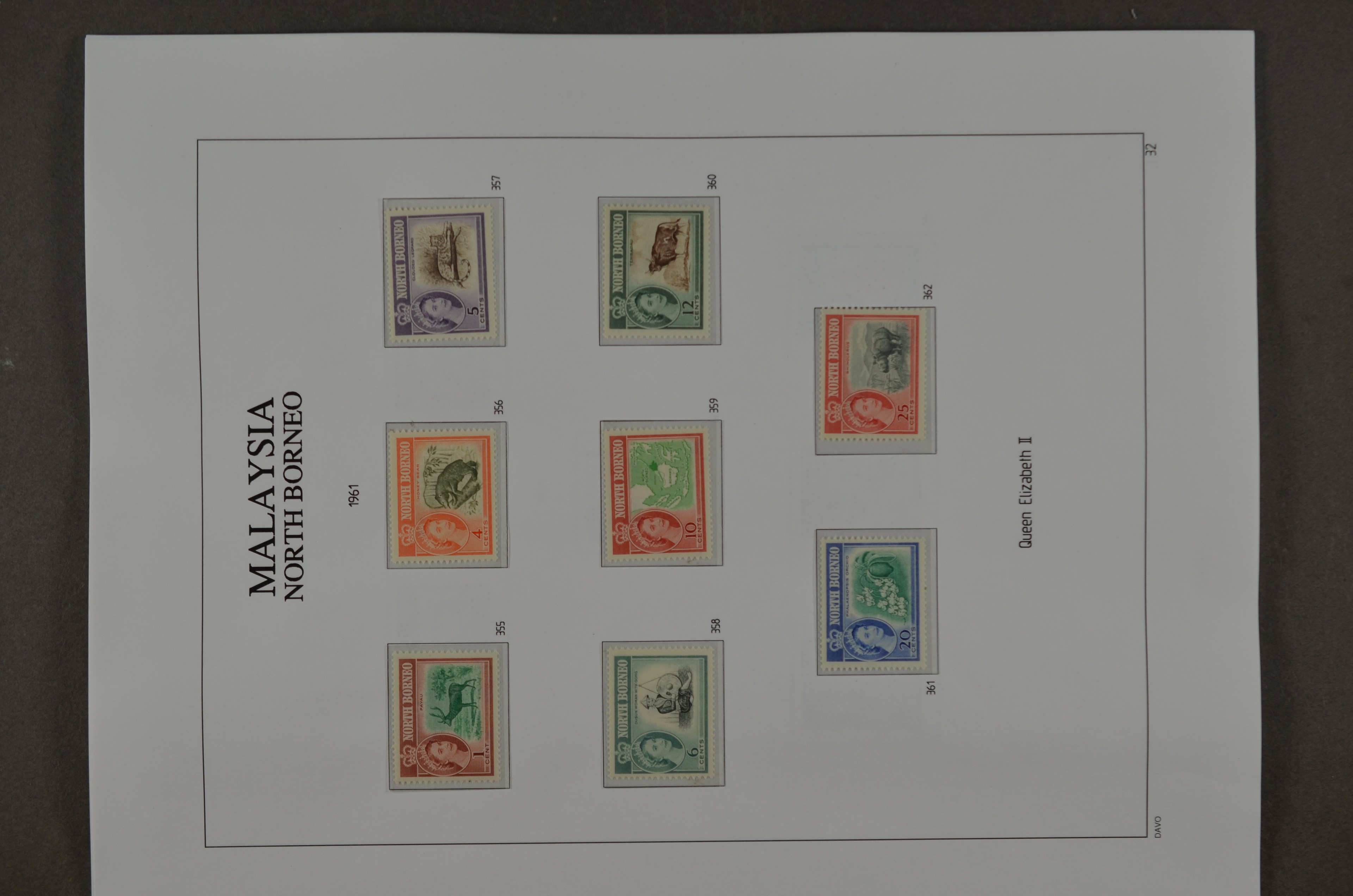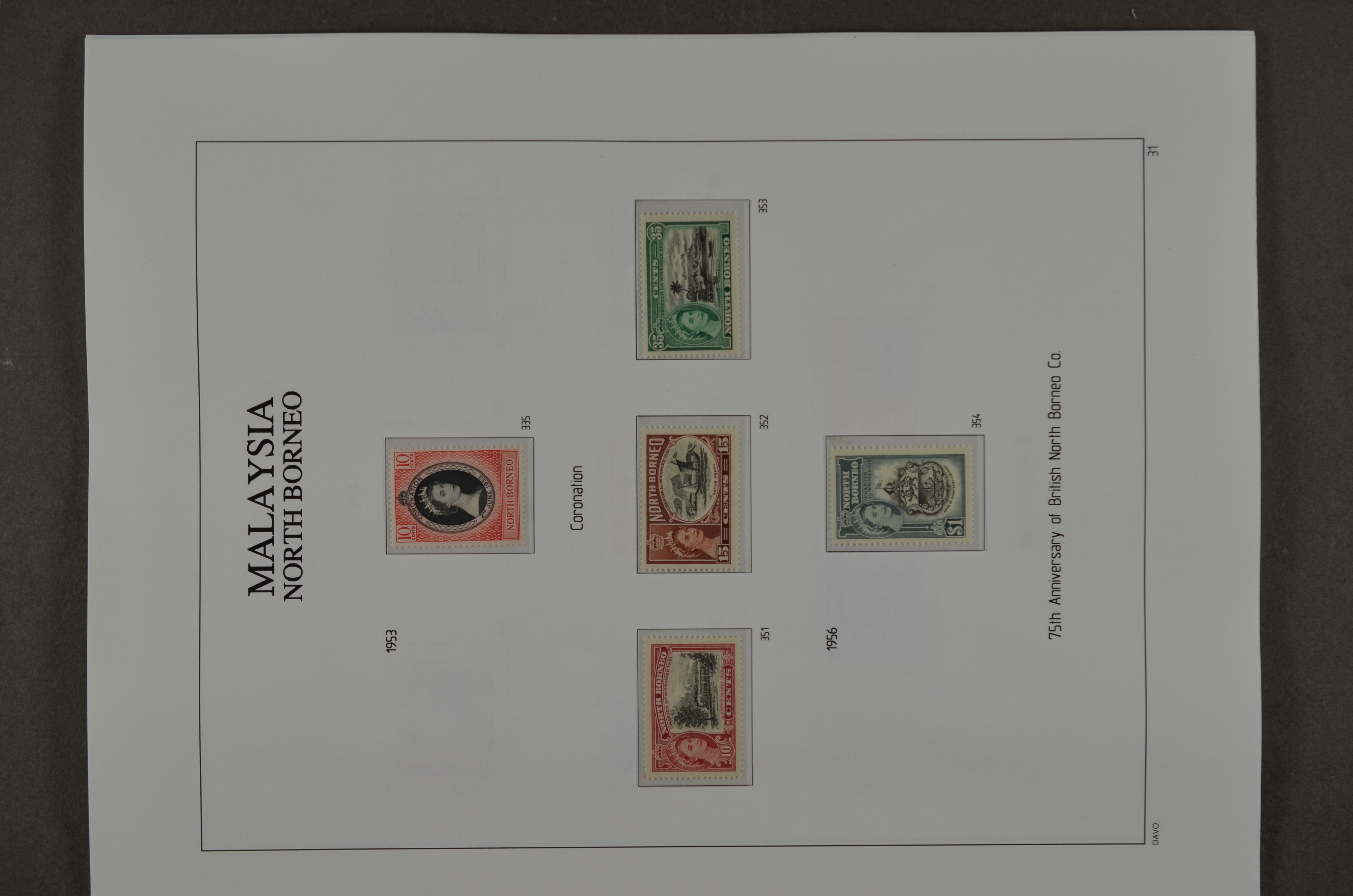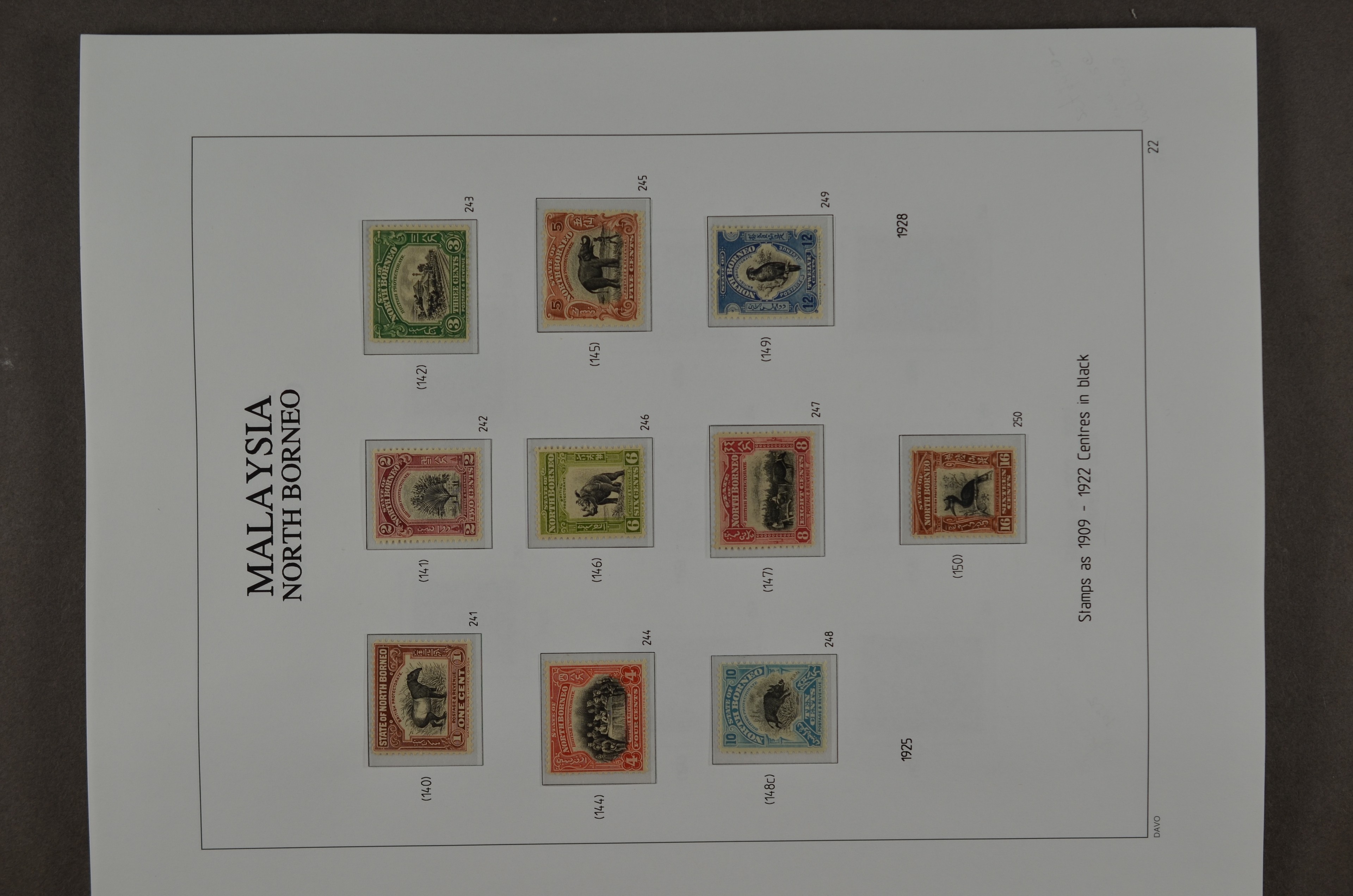 BR.COMMONWEALTH, North Borneo 1883-1963, o/*/**, beautiful collection on albumpages with several expensive numbers and sets including: S.G.55a, 55b, 85 (single and block of four), 112/24, 178/83 ($.10,- thin), 189/201, 213, 214/34, 235/52, 277/94, 295/302, 303/17, 320/30, 391/406, D45, D47, D85/89, etc., etc.