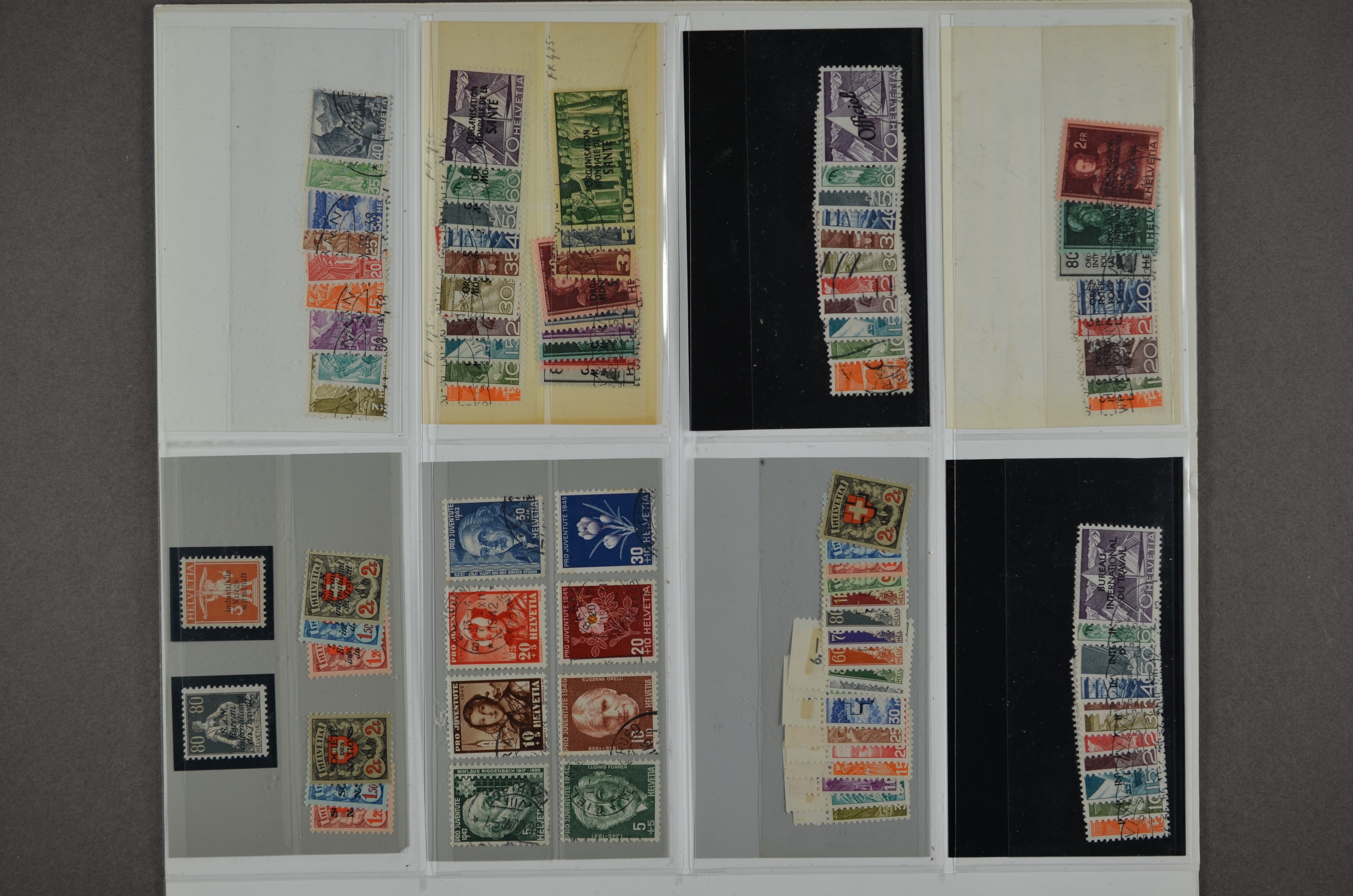SWITZERLAND 1850-1955, o/*/** singles and sets on stockcards with better items f.e.: 250/55, 270/76, Block 8, 11, 12, 14, 15, Service 19/27, OMS 6/25 and IRO 118