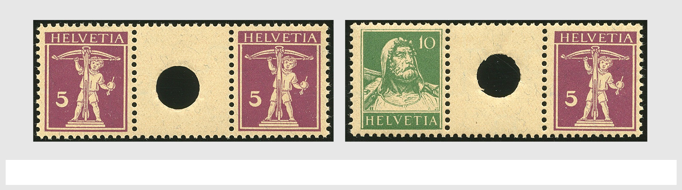 SWITZERLAND, Se-tenant printing, Mi.24B + 23B (Zumstein S28 + S32), MNH in very fine quality, cat.value € 1200