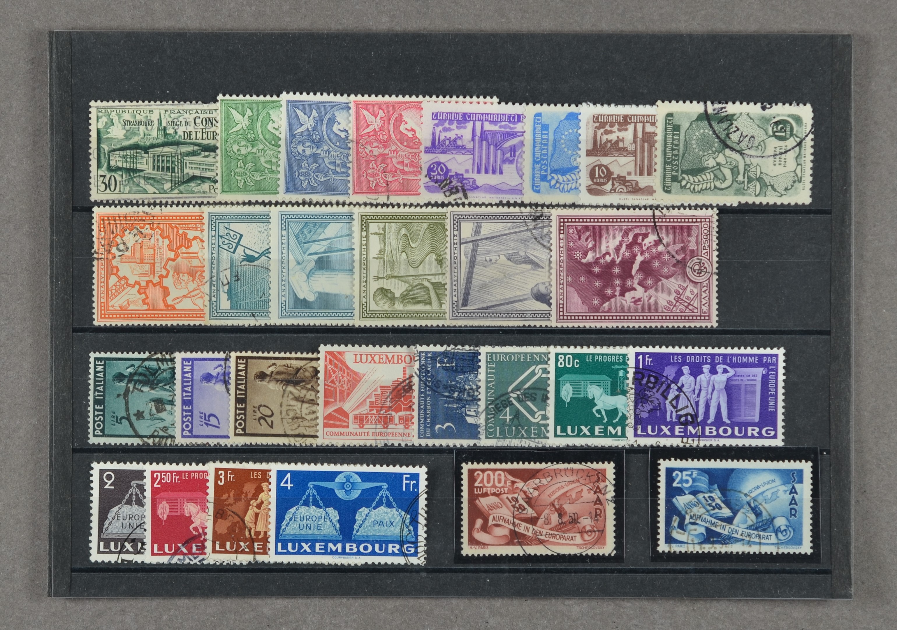 UNITED EUROPE, Forerunners used on stockcard incl. f.i. Saar 1950