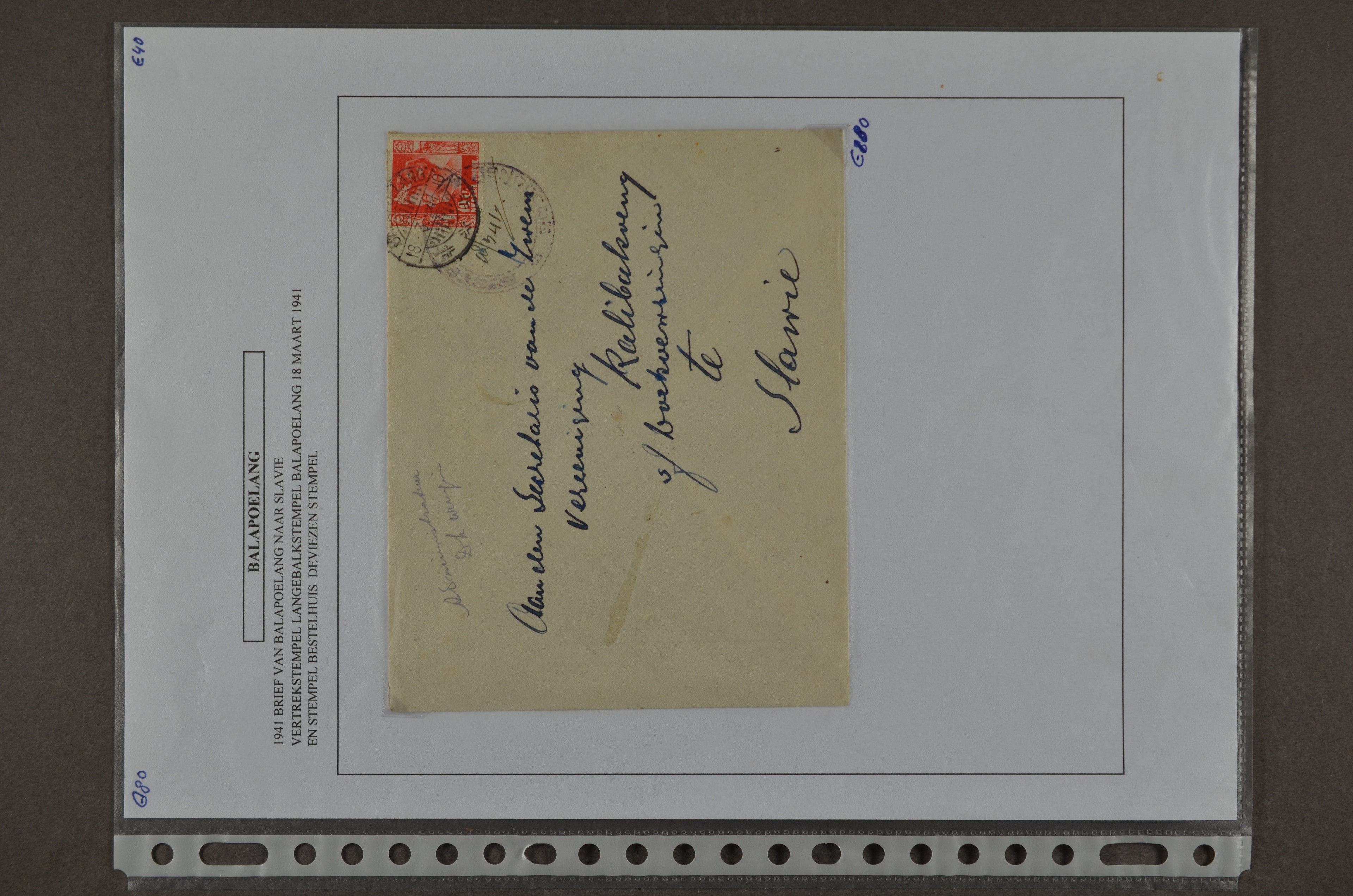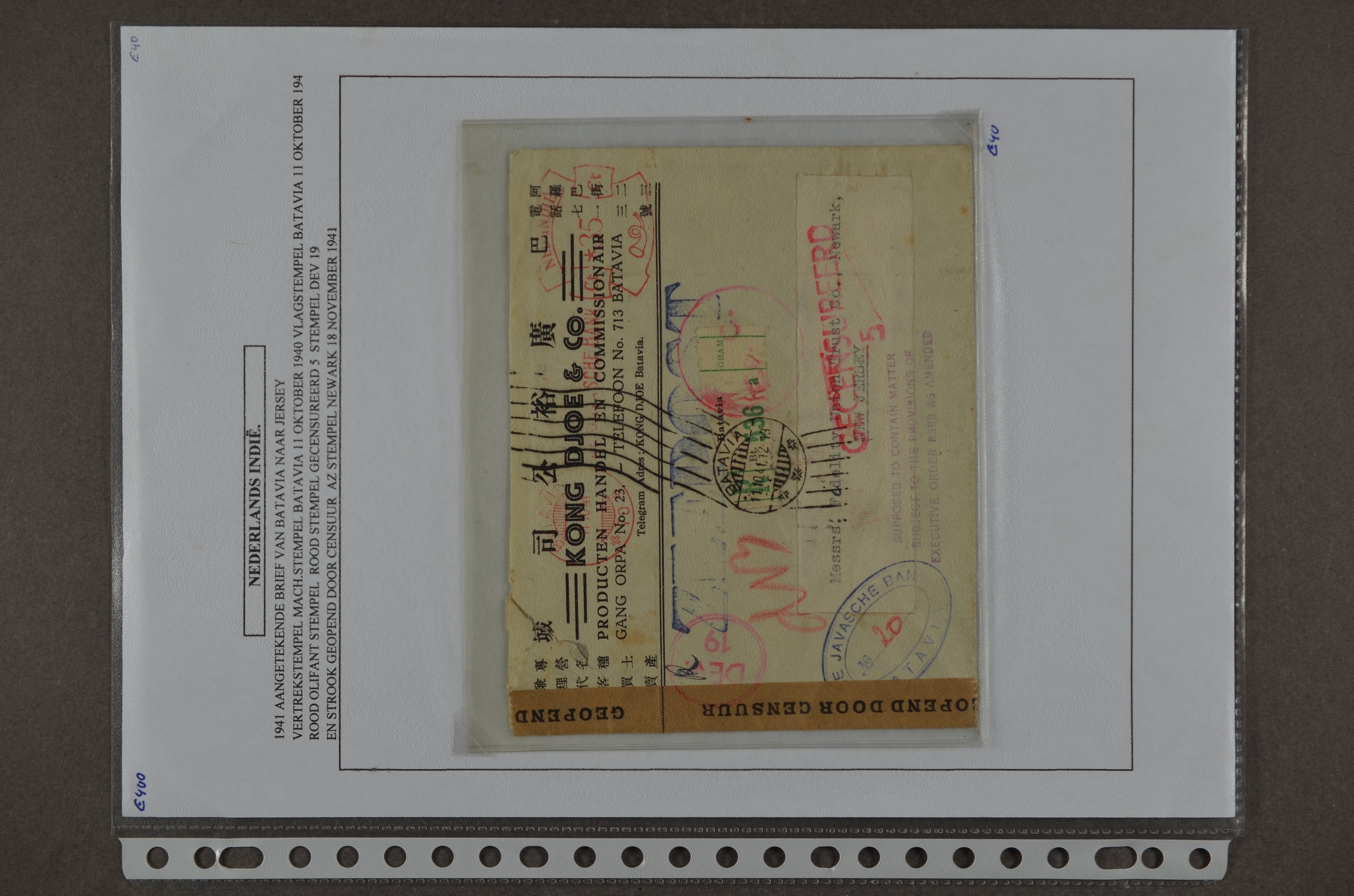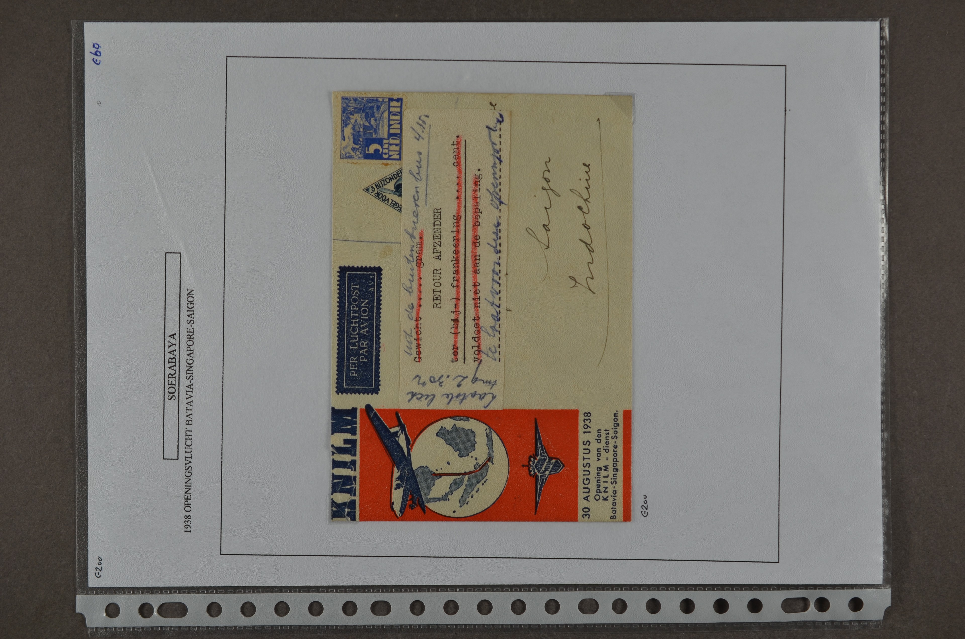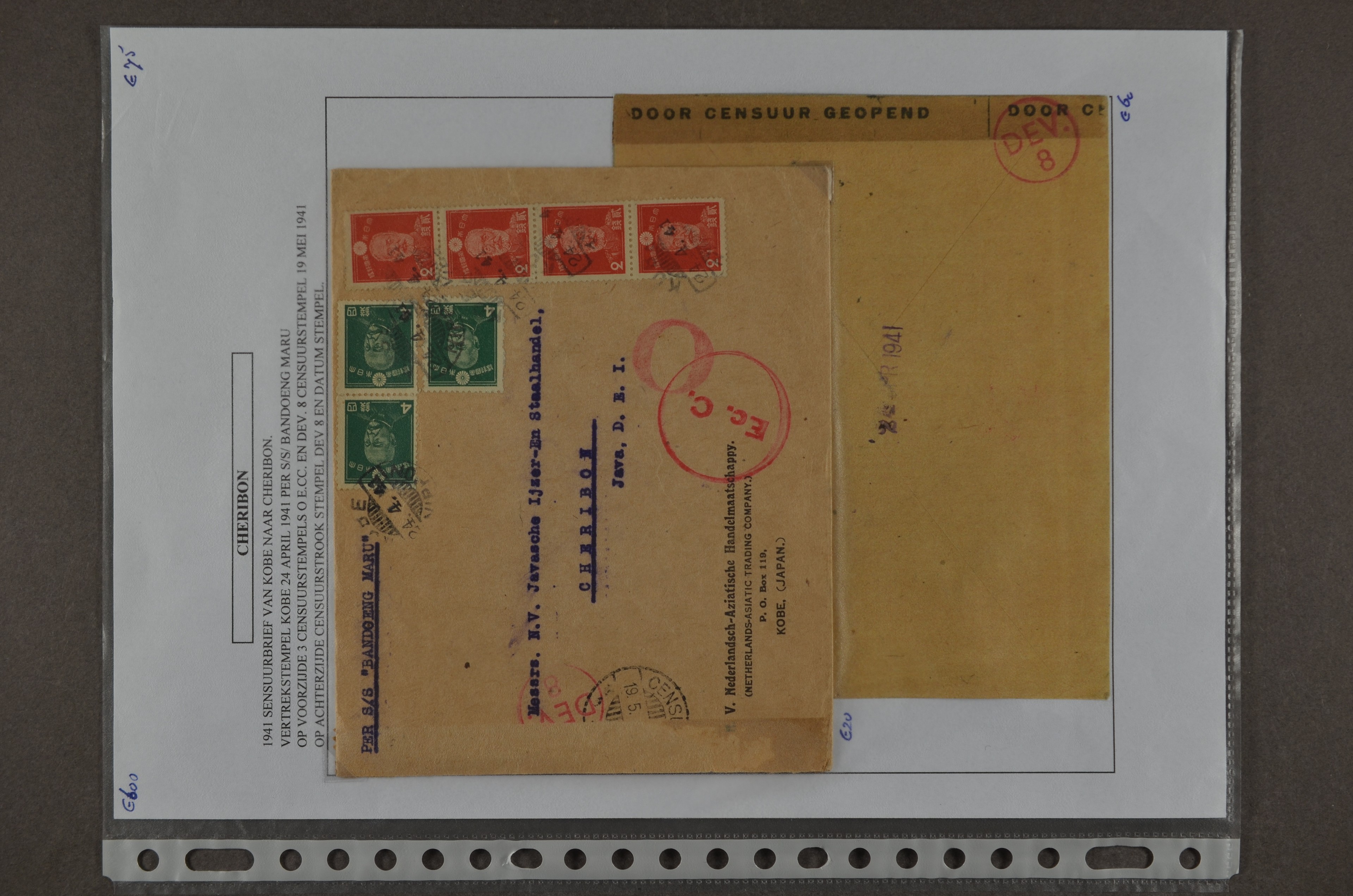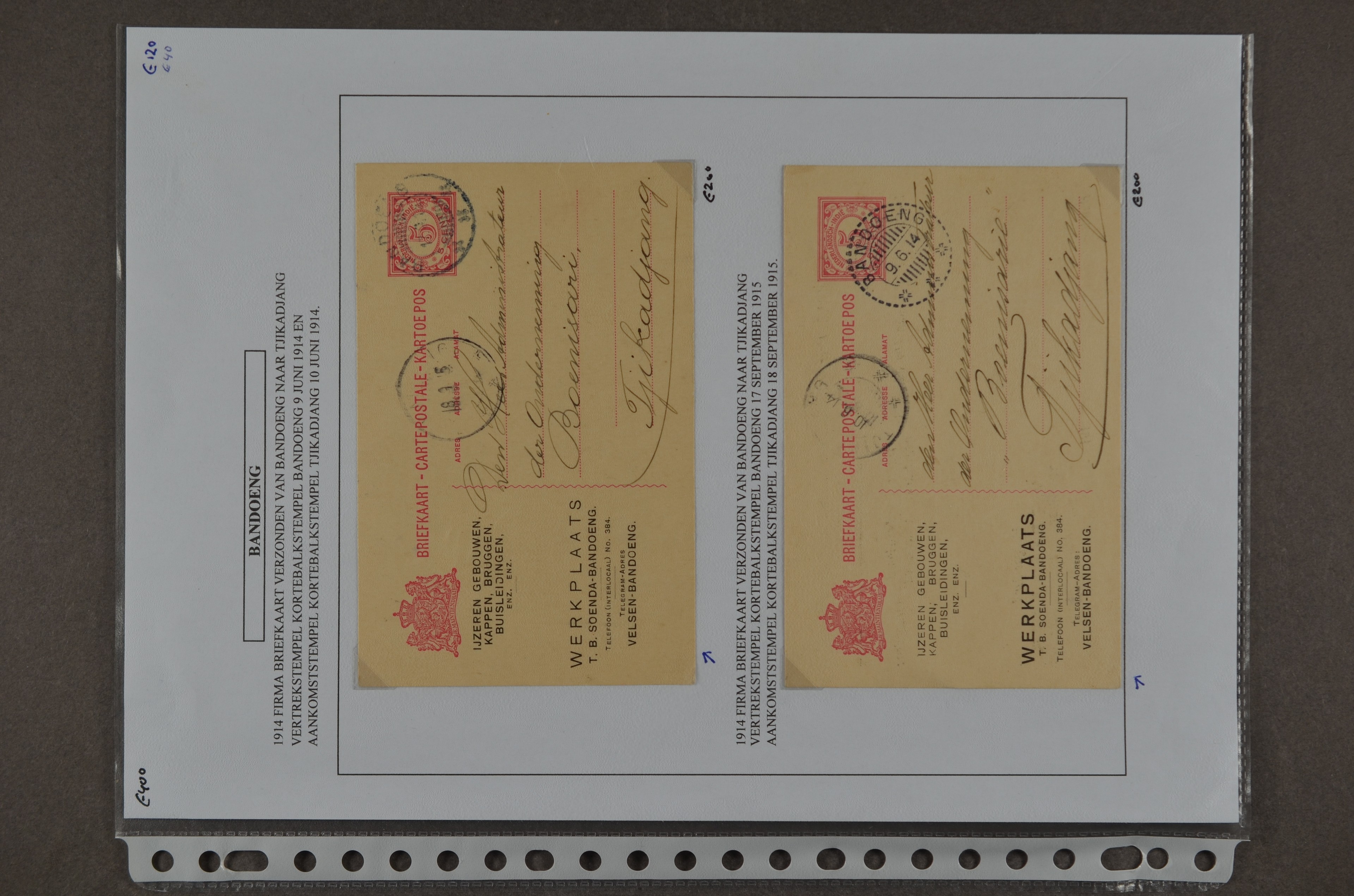 NED.- INDIË POSTHISTORIE, 32 behoorlijk betere poststukken 1890-1949 w.o. stempels, (enkel)frankeringen, beport, luchtpost, aangetekend, geadviseerd, Royal Neth. Indies Army/Concession Rate (rood en violet, 1945), Hollandia Bu.Y, etc. opgezet op bladen in ringband