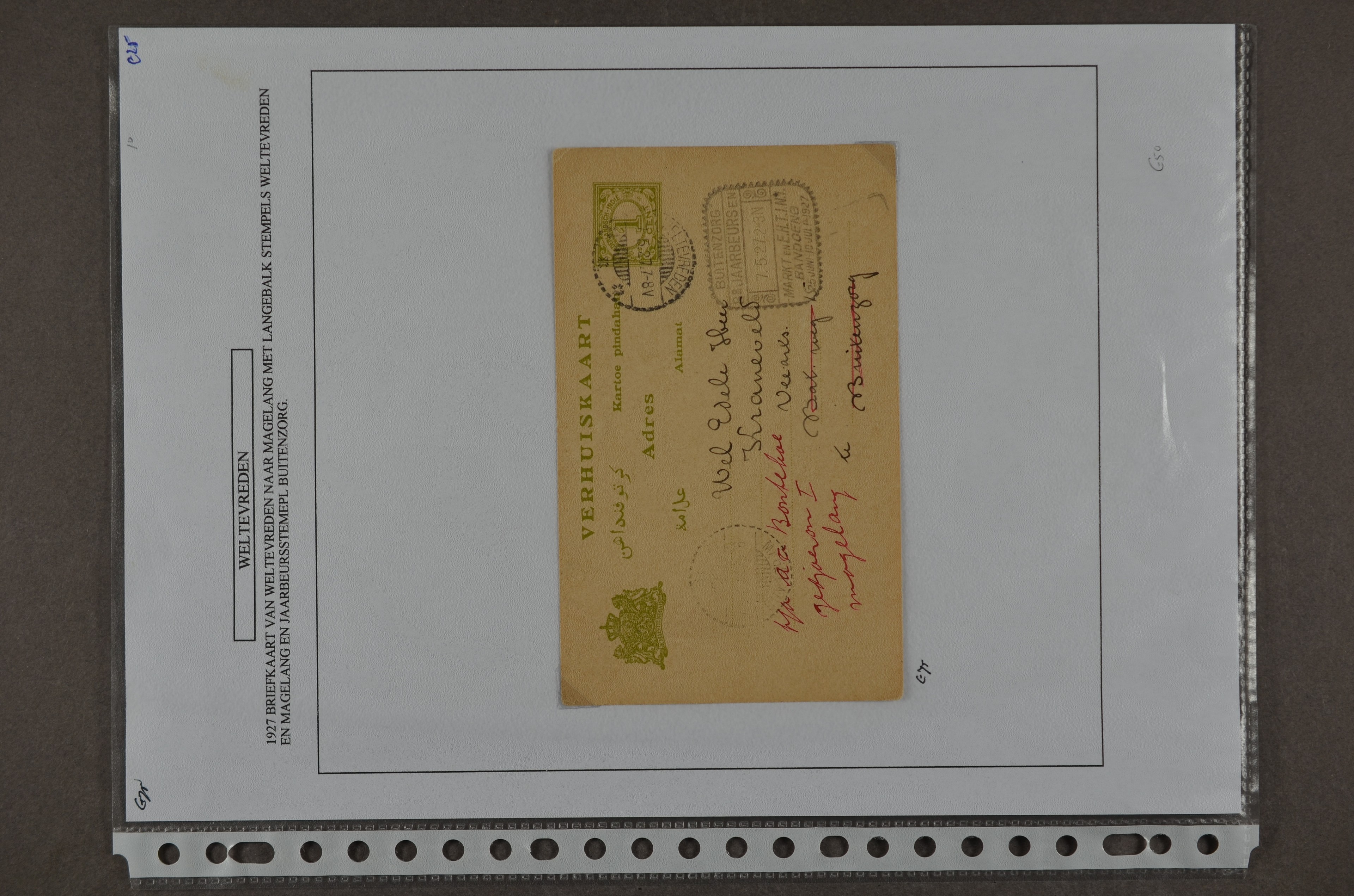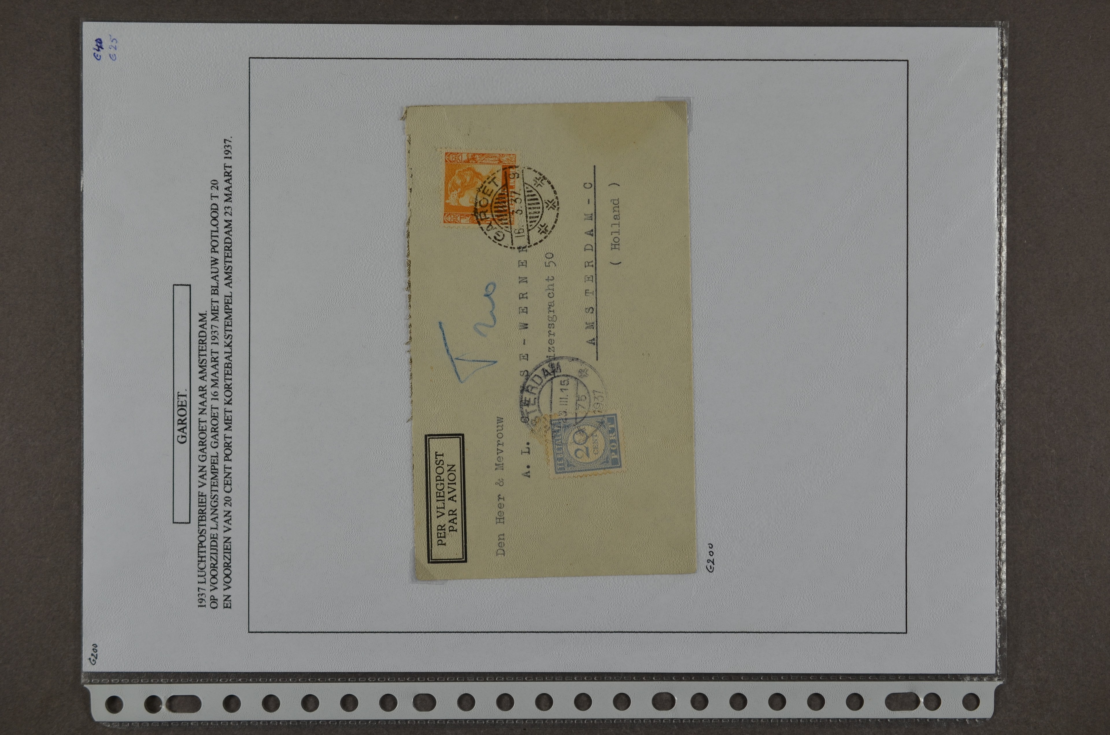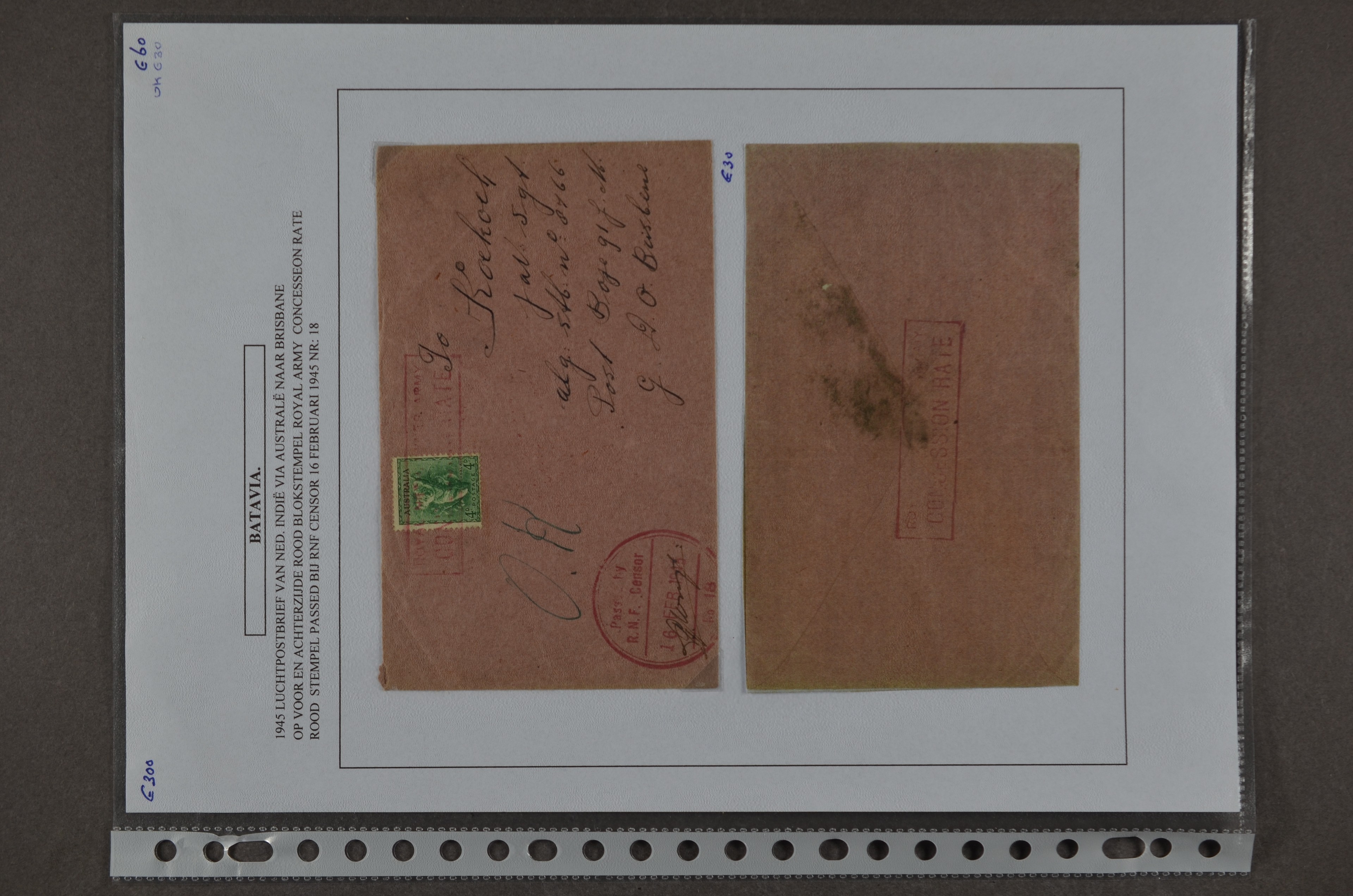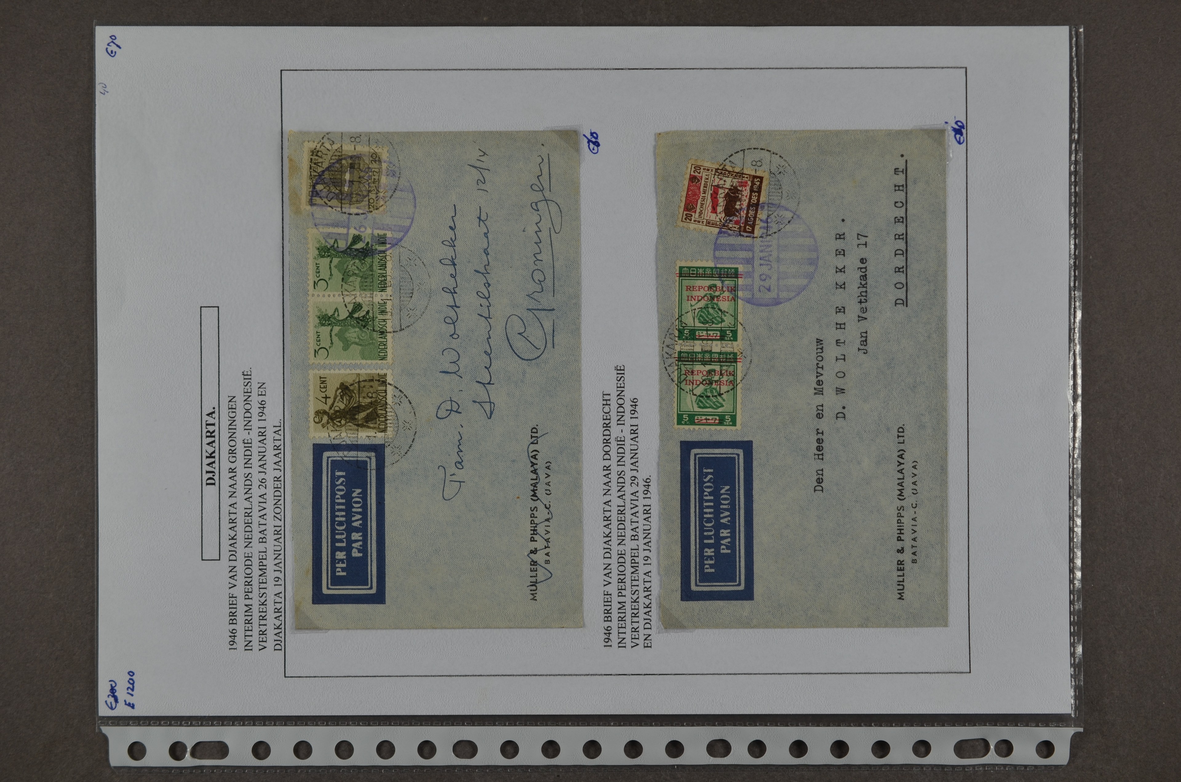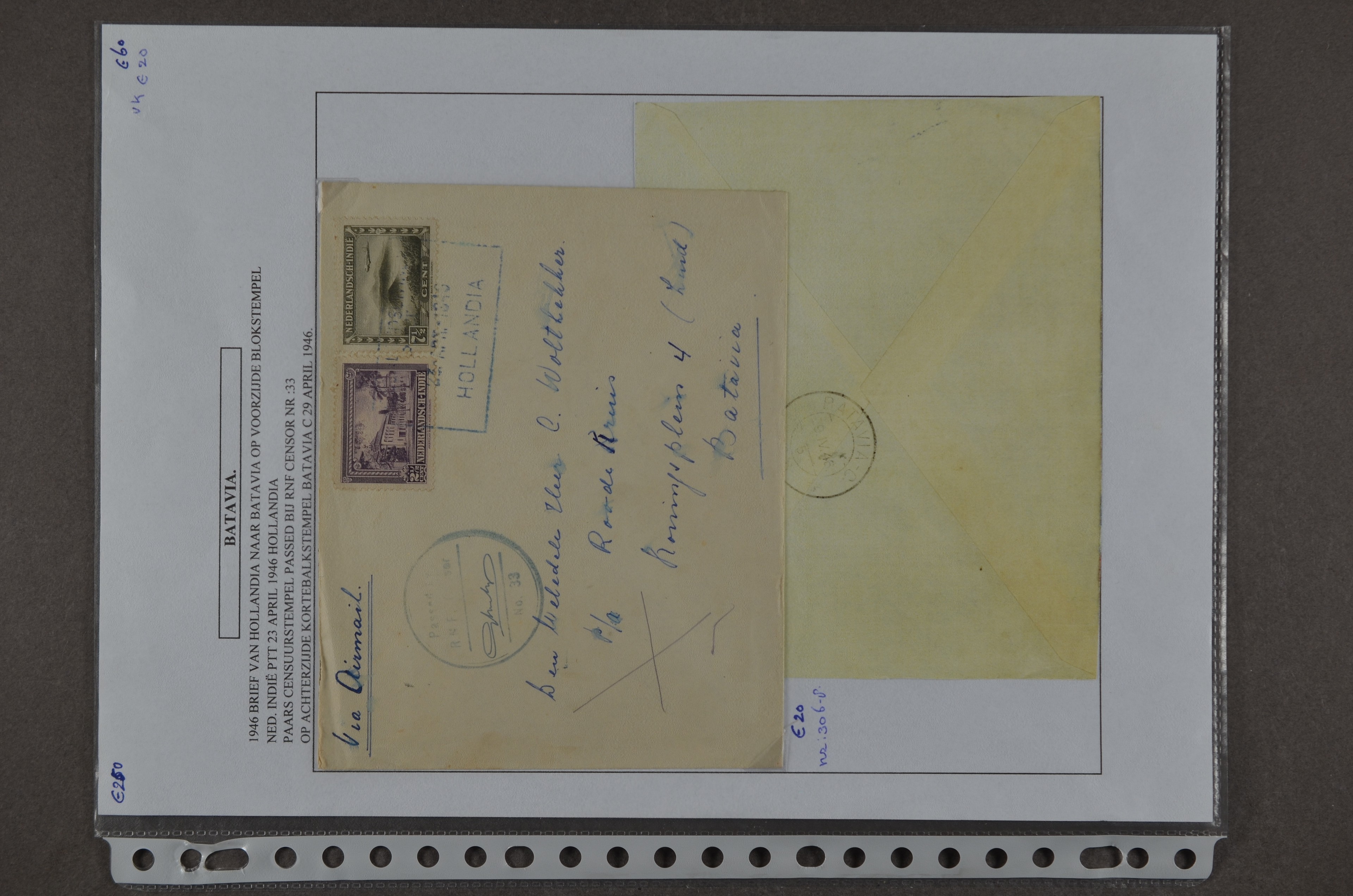 NED.- INDIË POSTHISTORIE, 32 behoorlijk betere poststukken 1890-1949 w.o. stempels, (enkel)frankeringen, beport, luchtpost, aangetekend, geadviseerd, Royal Neth. Indies Army/Concession Rate (rood en violet, 1945), Hollandia Bu.Y, etc. opgezet op bladen in ringband