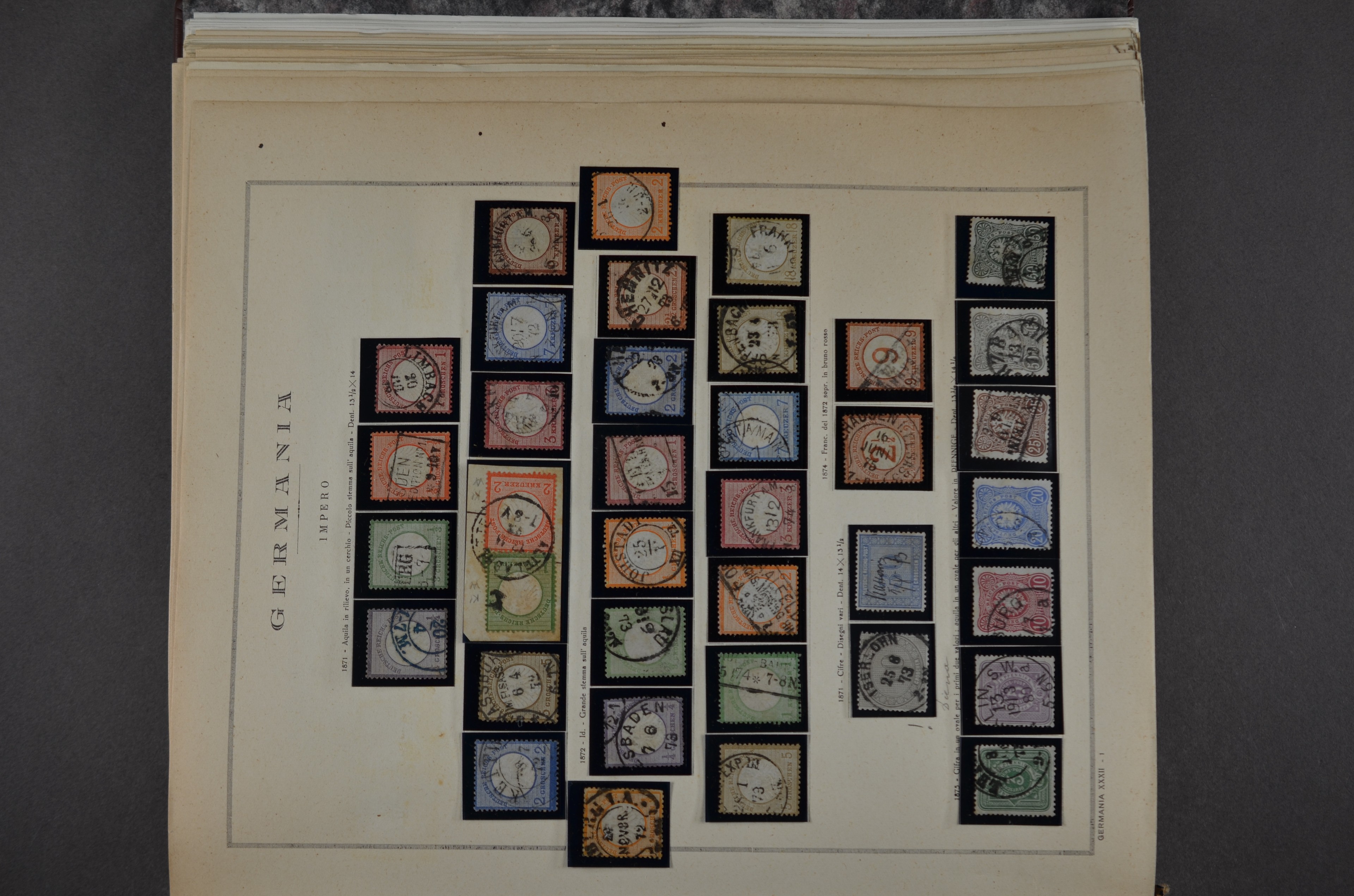 GERMAN EMPIRE 1872-1945, almost complete used collection in album with small and large shields, a no.12 with roundcancel 'Iserlohn', wmk-kvarieties no.209Py and 278Y!, 'Südamerikafahrt', 'Polarfahrt' and 'Chicagofahrt', Bl.1 used and unused, Bl.2 unused, Bl.3 unused and Block 4/11 all used and unused. Despite some staining an in overall good quality collection with a cat. value well over € 44.000