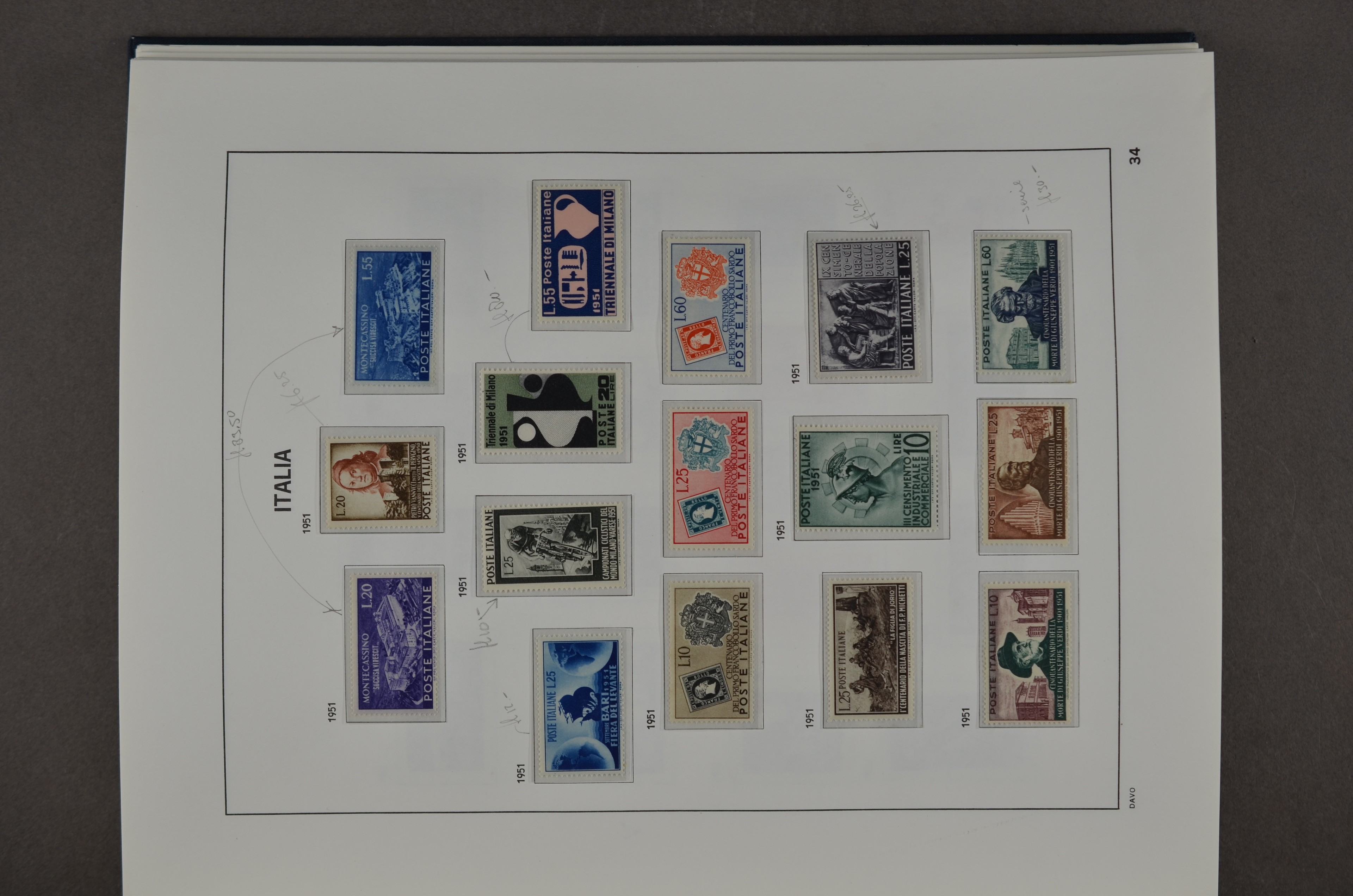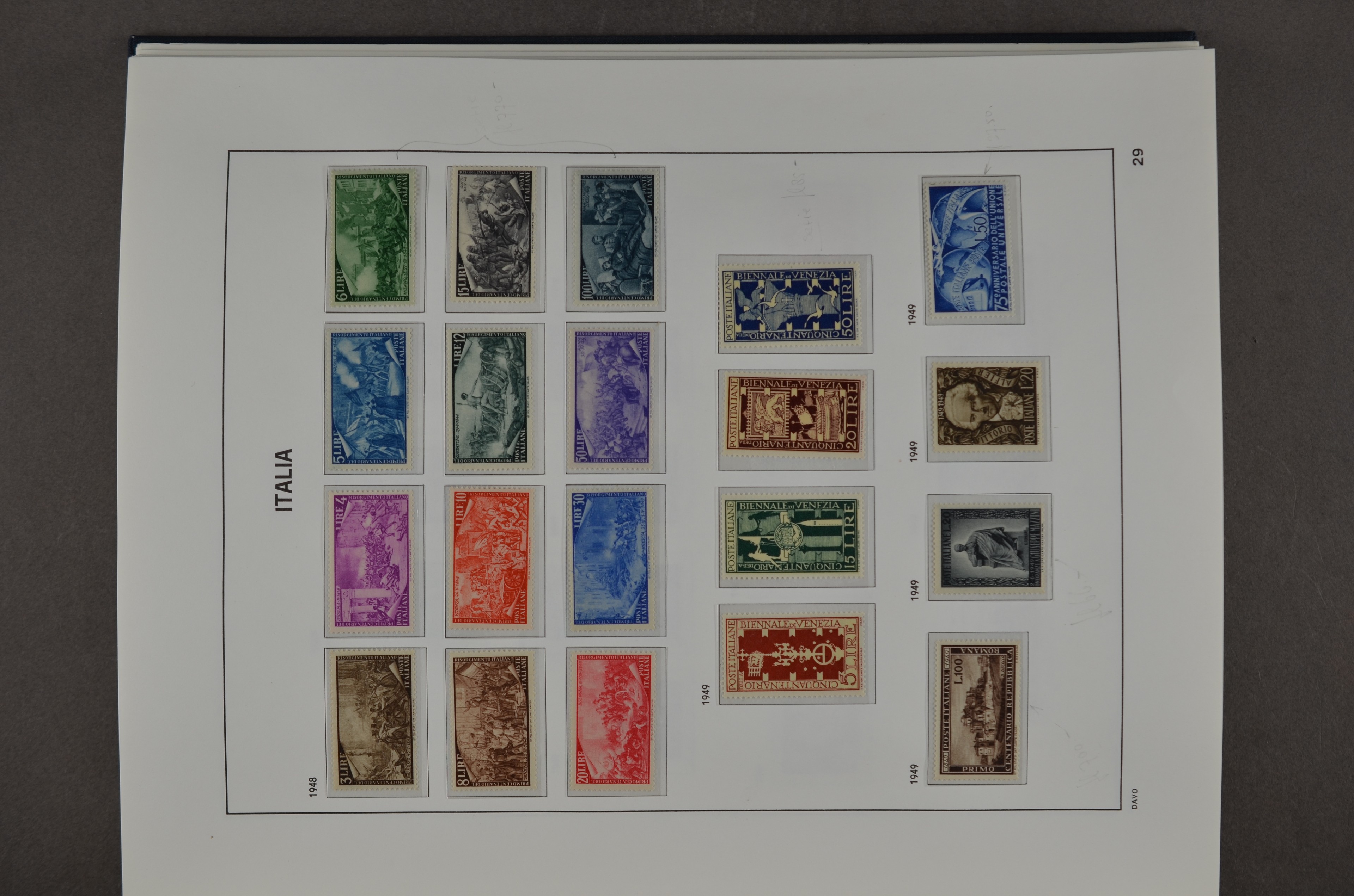 ITALY 1878-2000, */** collection in 3 Davo albums with a lot of better numbers and sets f.e.: Mi.20 (regummed), 29/33, 35/36, 95/98, 183/85, 201/04, 361, 439/44, 445/46, 484/87, 682/704, 748/760, 773 and Service no.10!