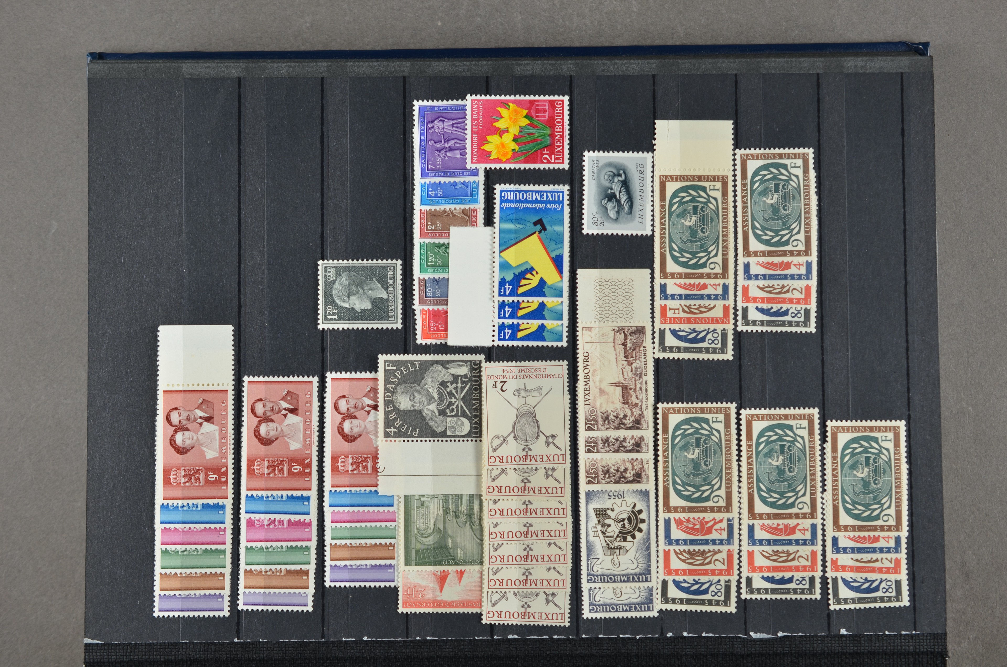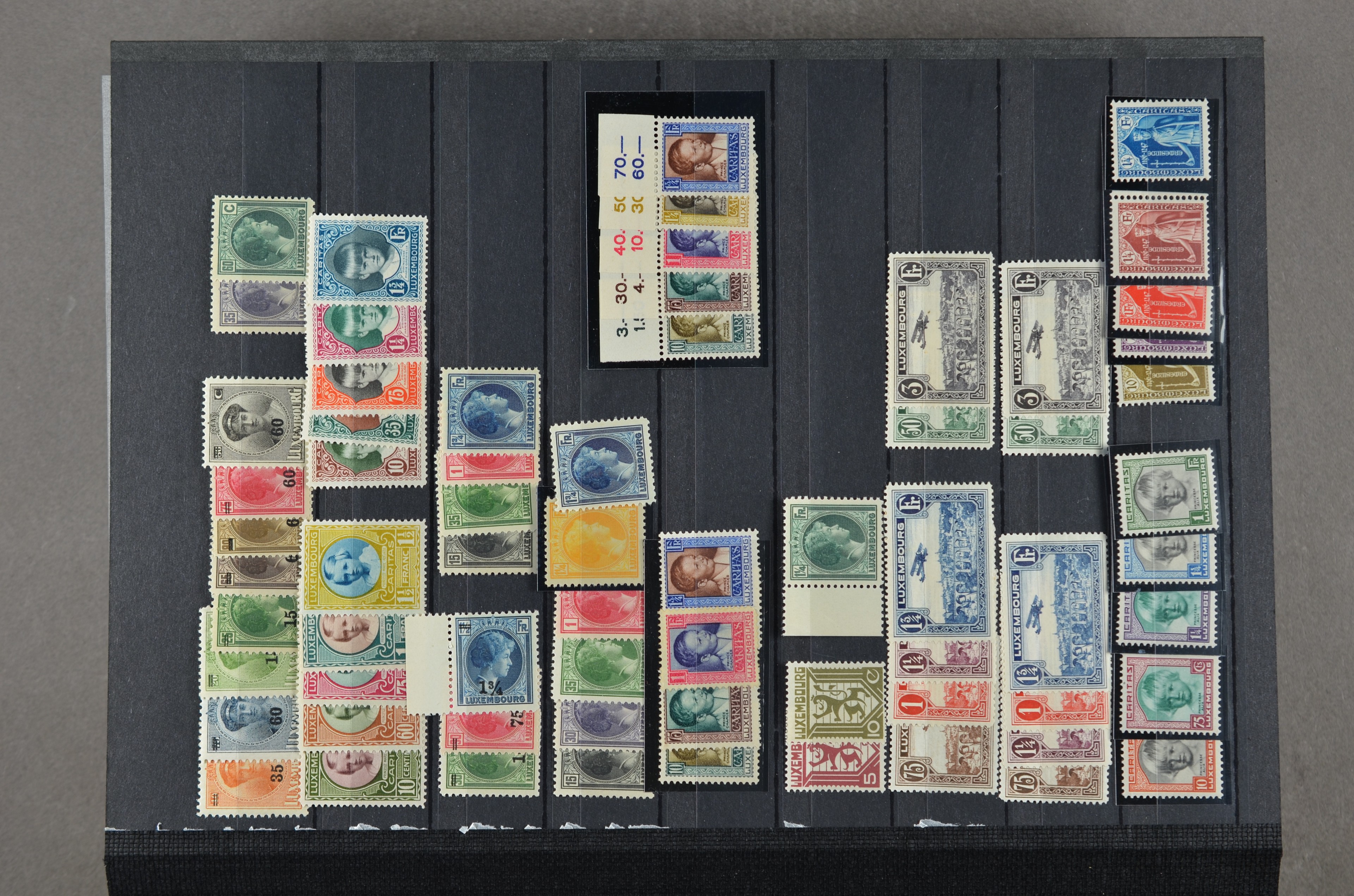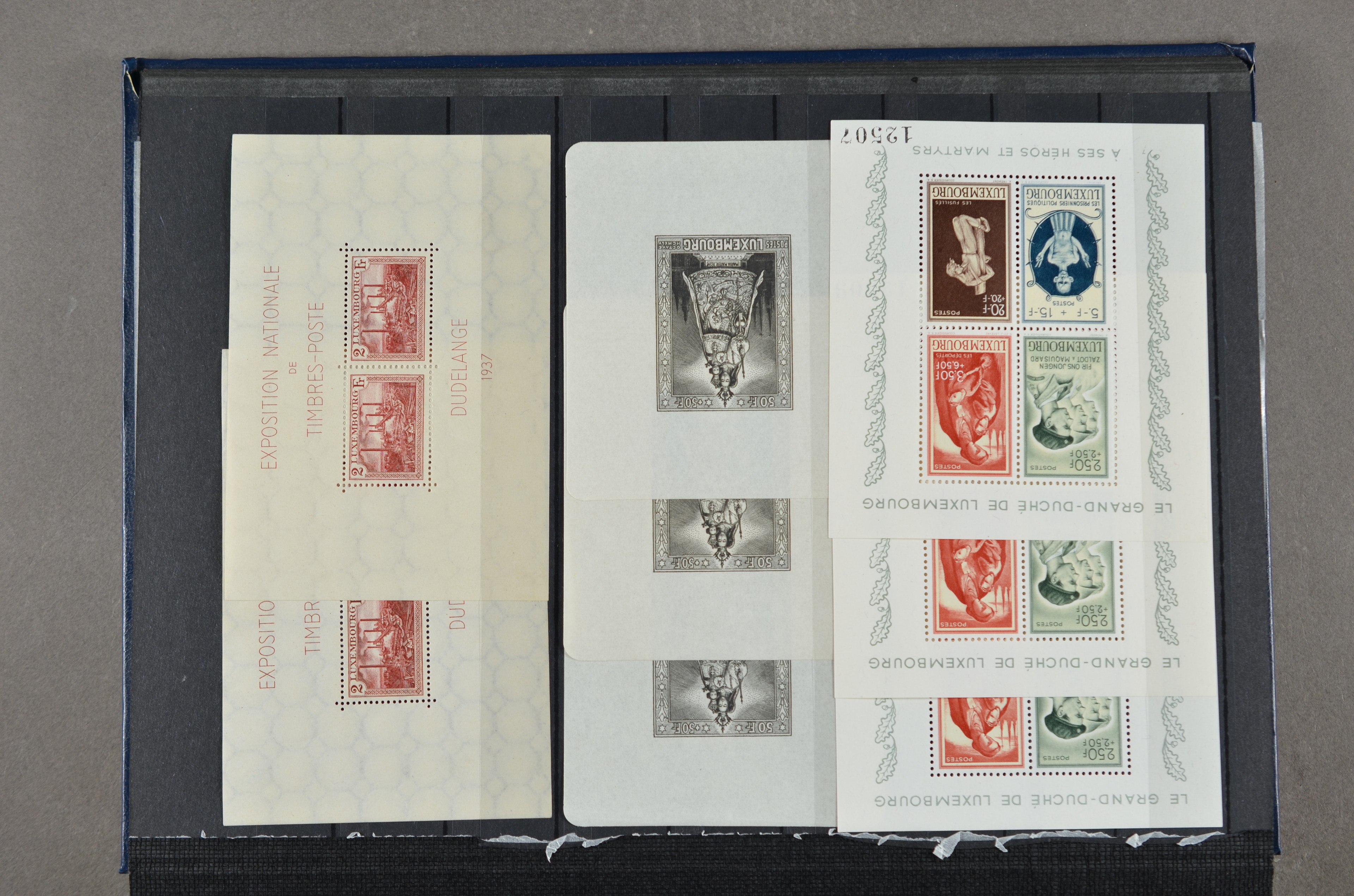 LUXEMBURG, beautiful unmounted mint duplicate-stock of mainly better sets and blocks from the 30's and 50's, also in block of four and several miniature sheets. Huge cat. value