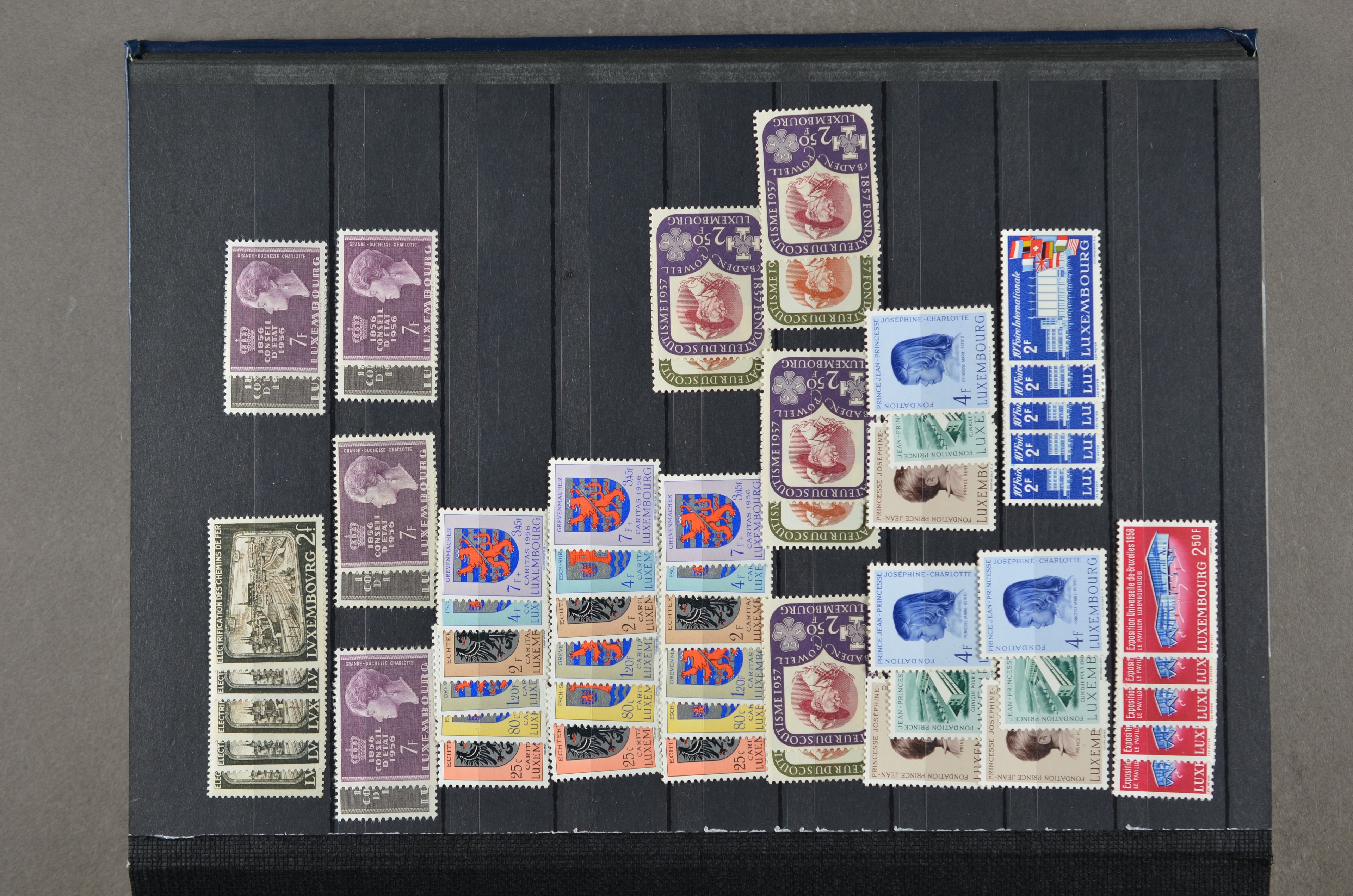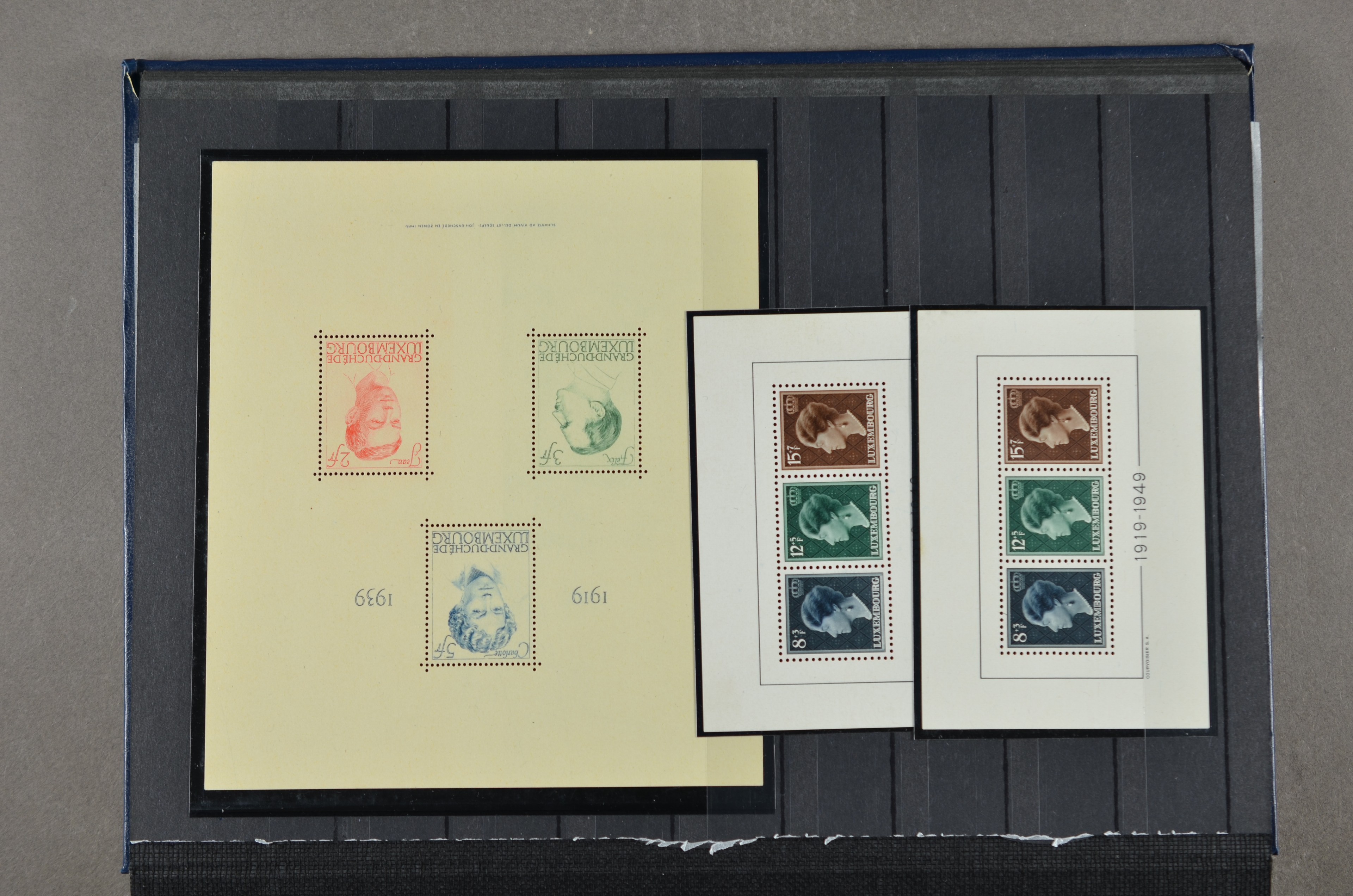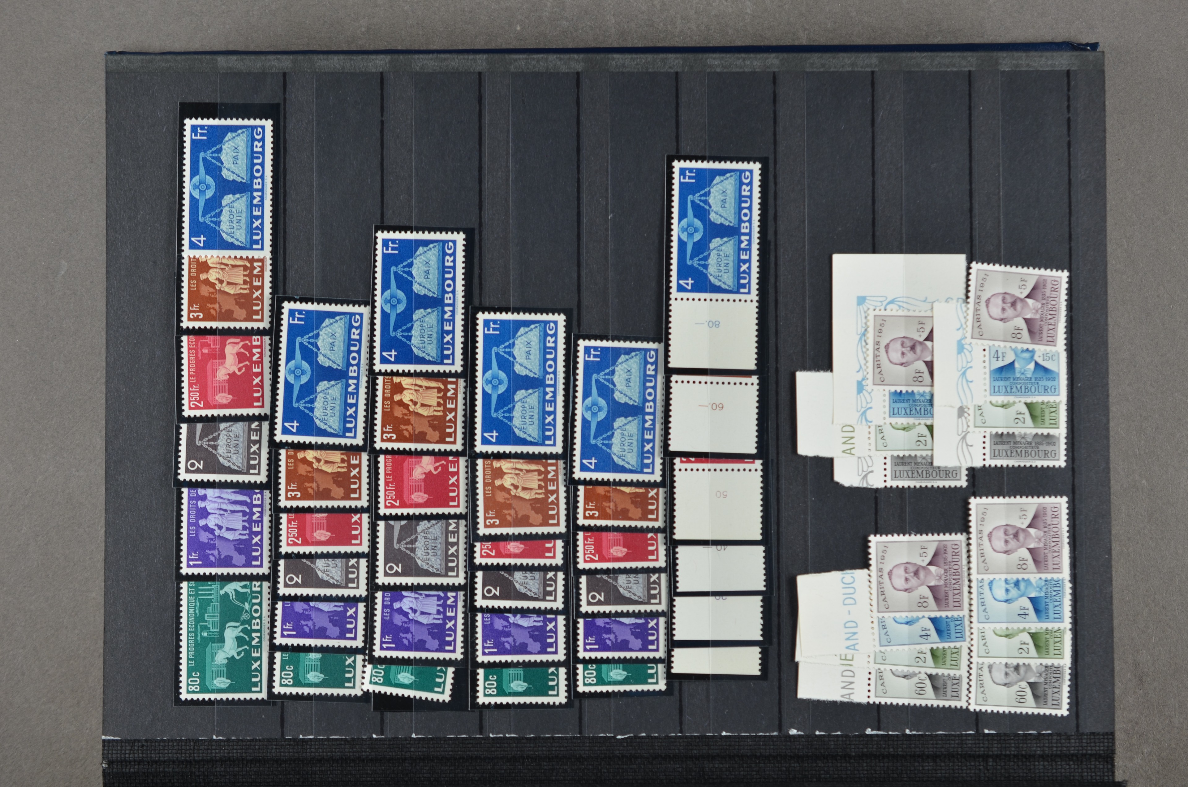 LUXEMBURG, beautiful unmounted mint duplicate-stock of mainly better sets and blocks from the 30's and 50's, also in block of four and several miniature sheets. Huge cat. value