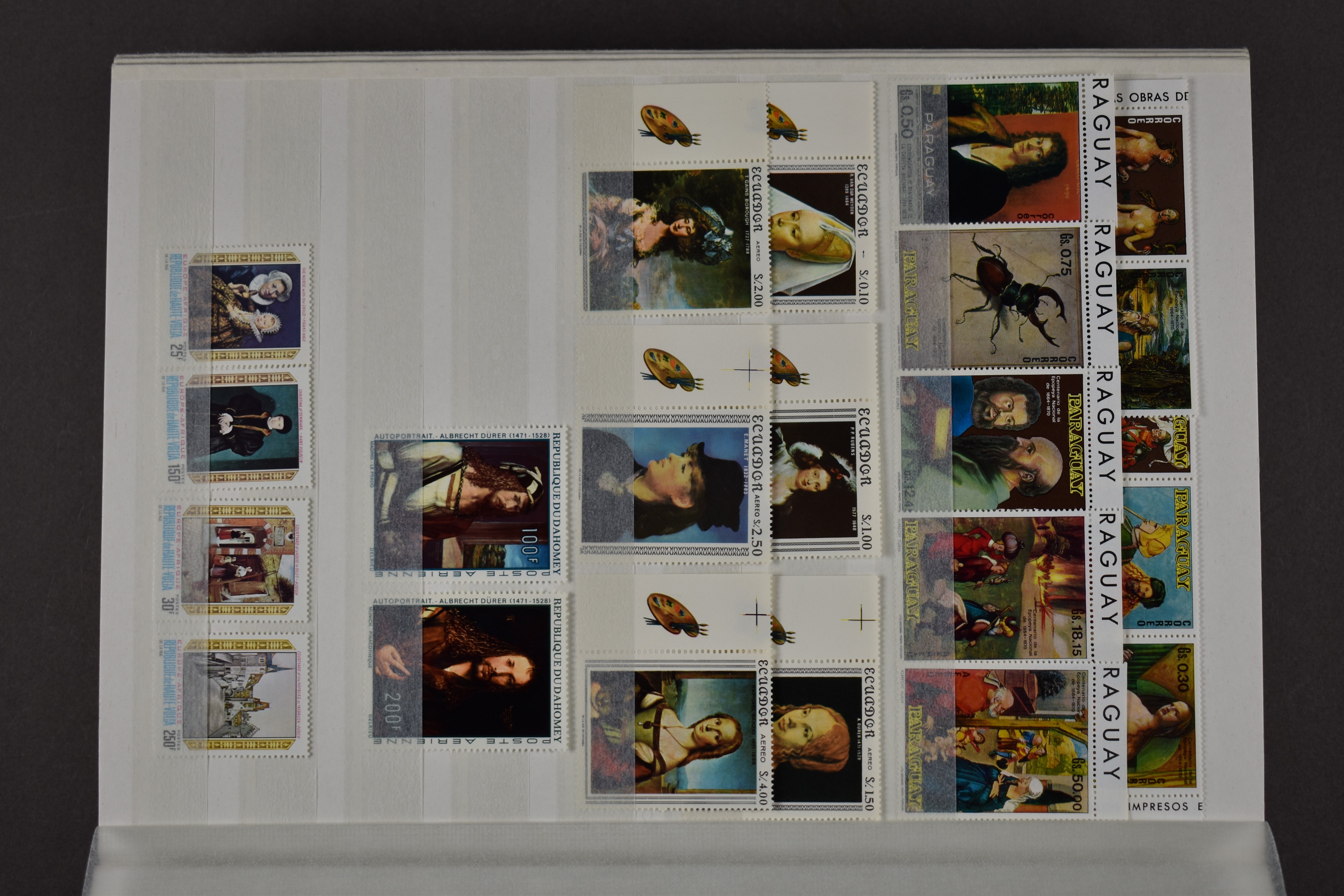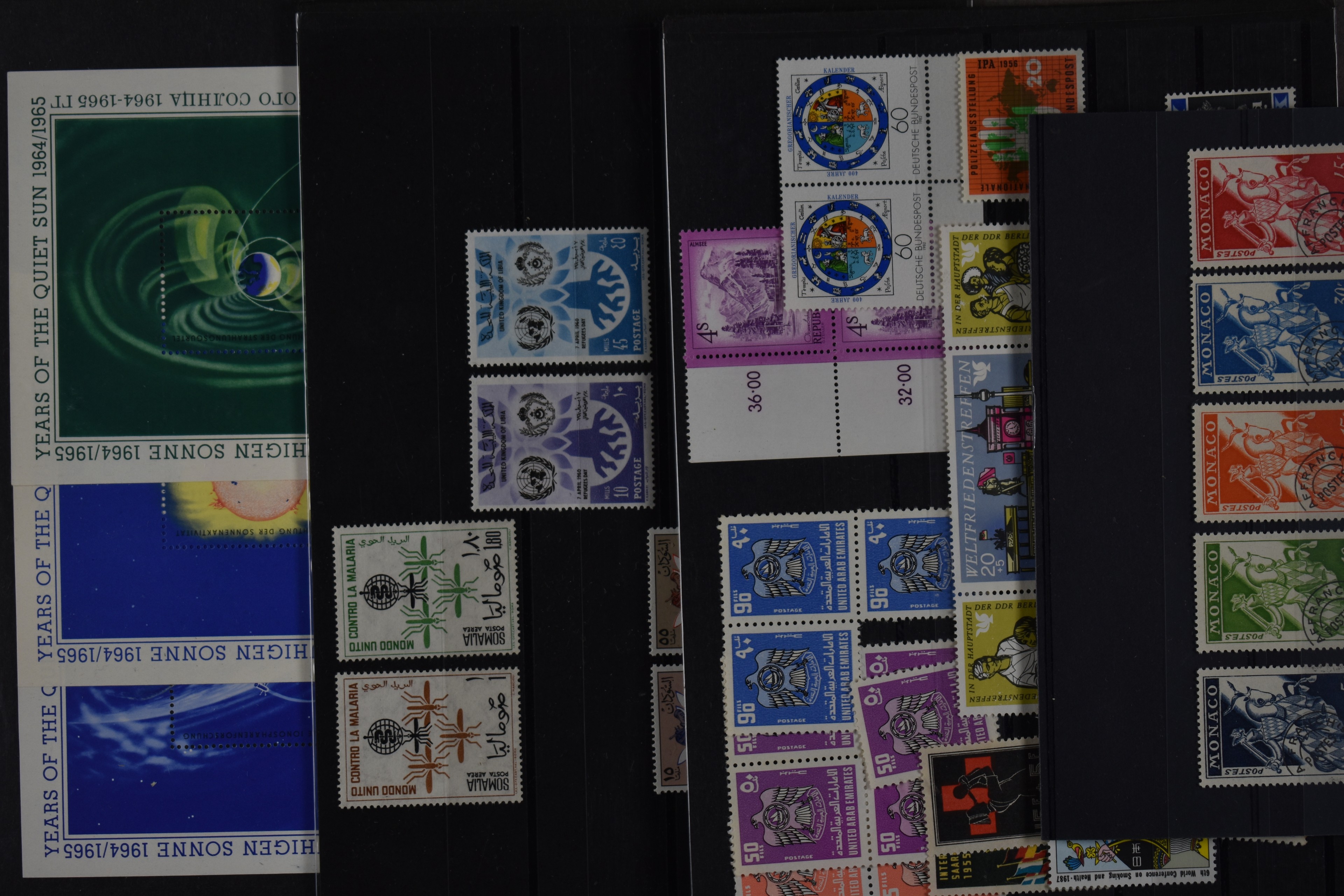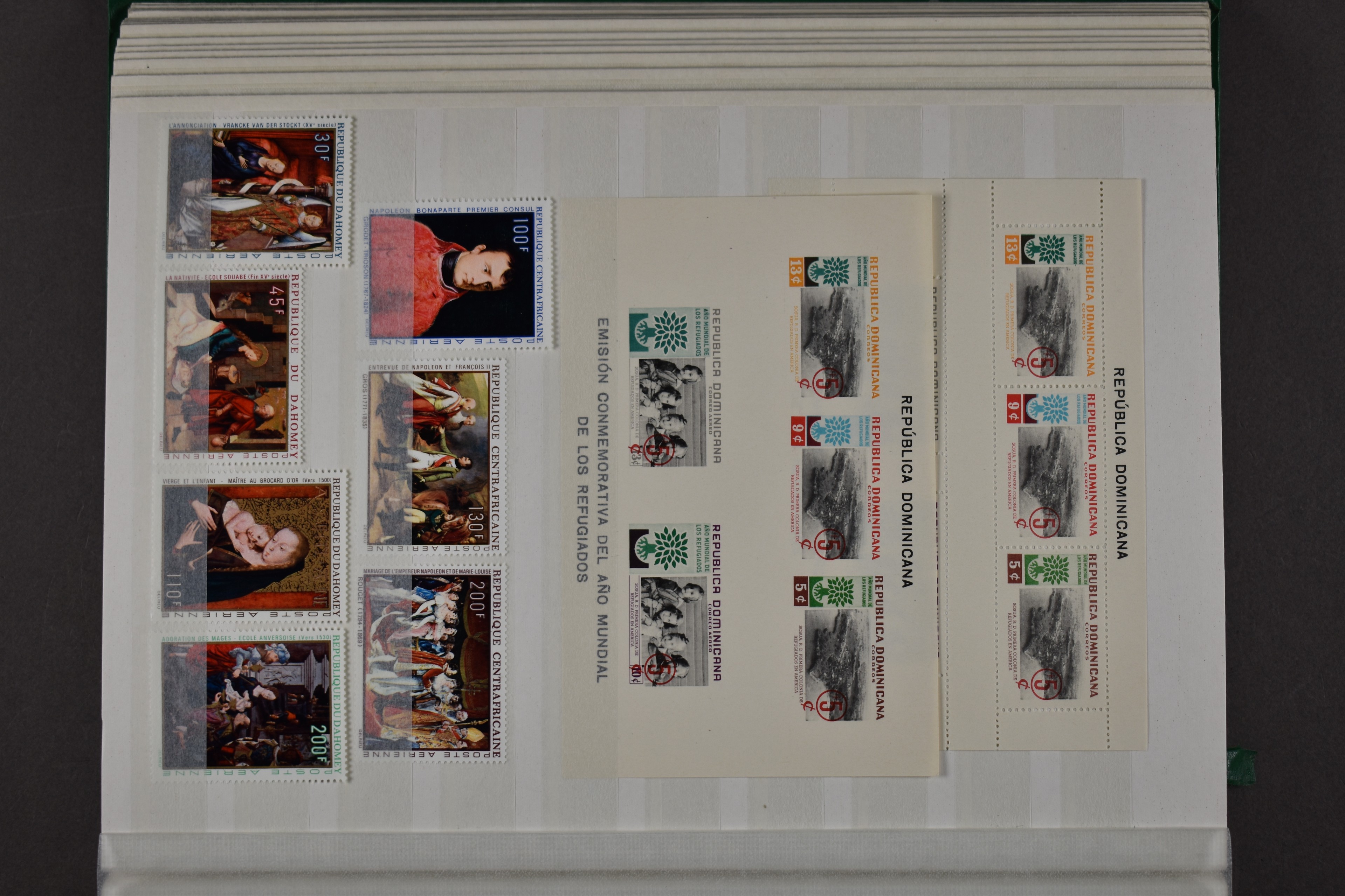 WORLD, o/*/** remnants of a lifetime collecting in 12 stockbooks, stockpages, stockcards, etc., with thematic material, covers, miniature-sheets, Cinderella's, etc., etc., in 2 boxes