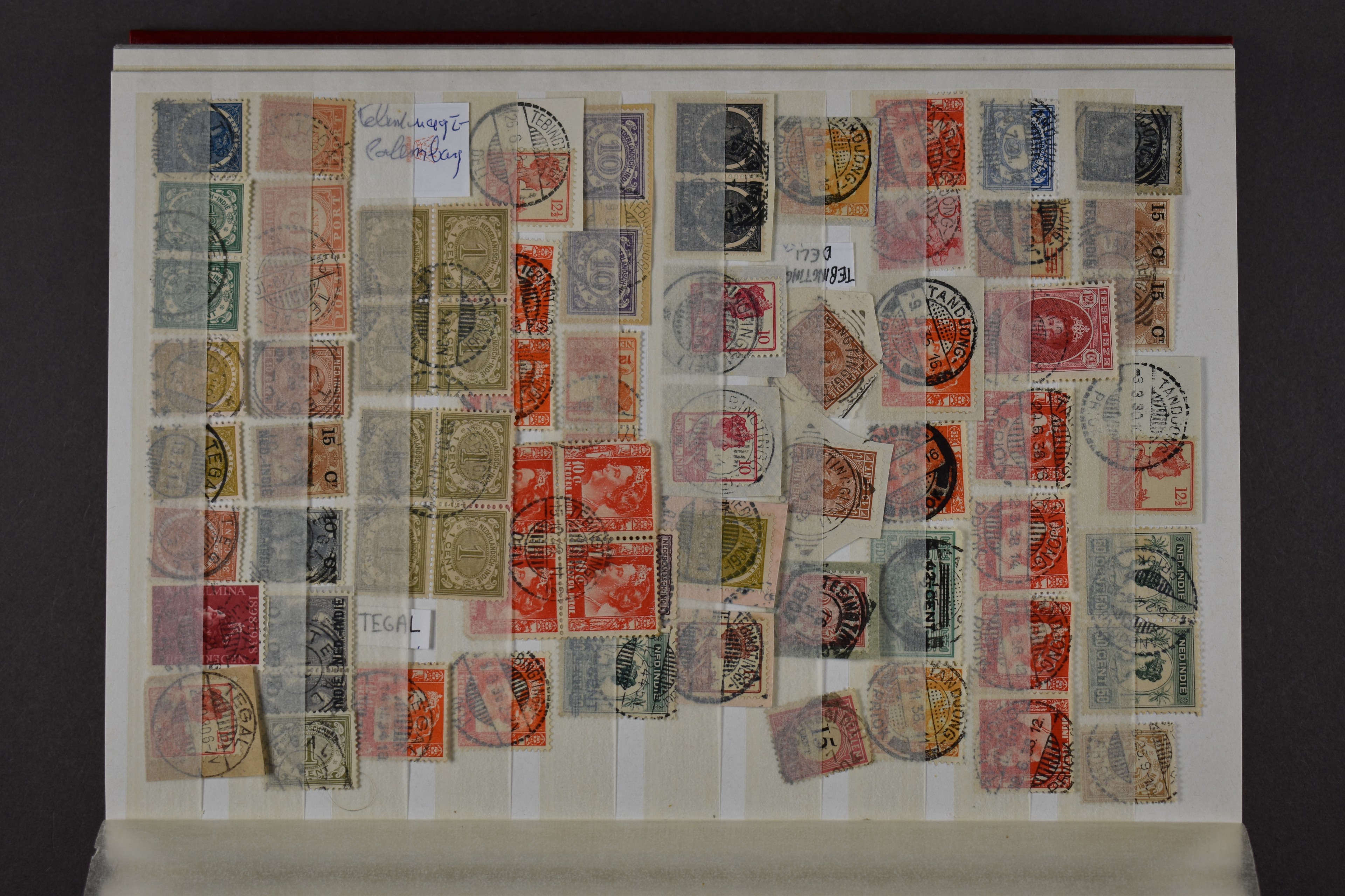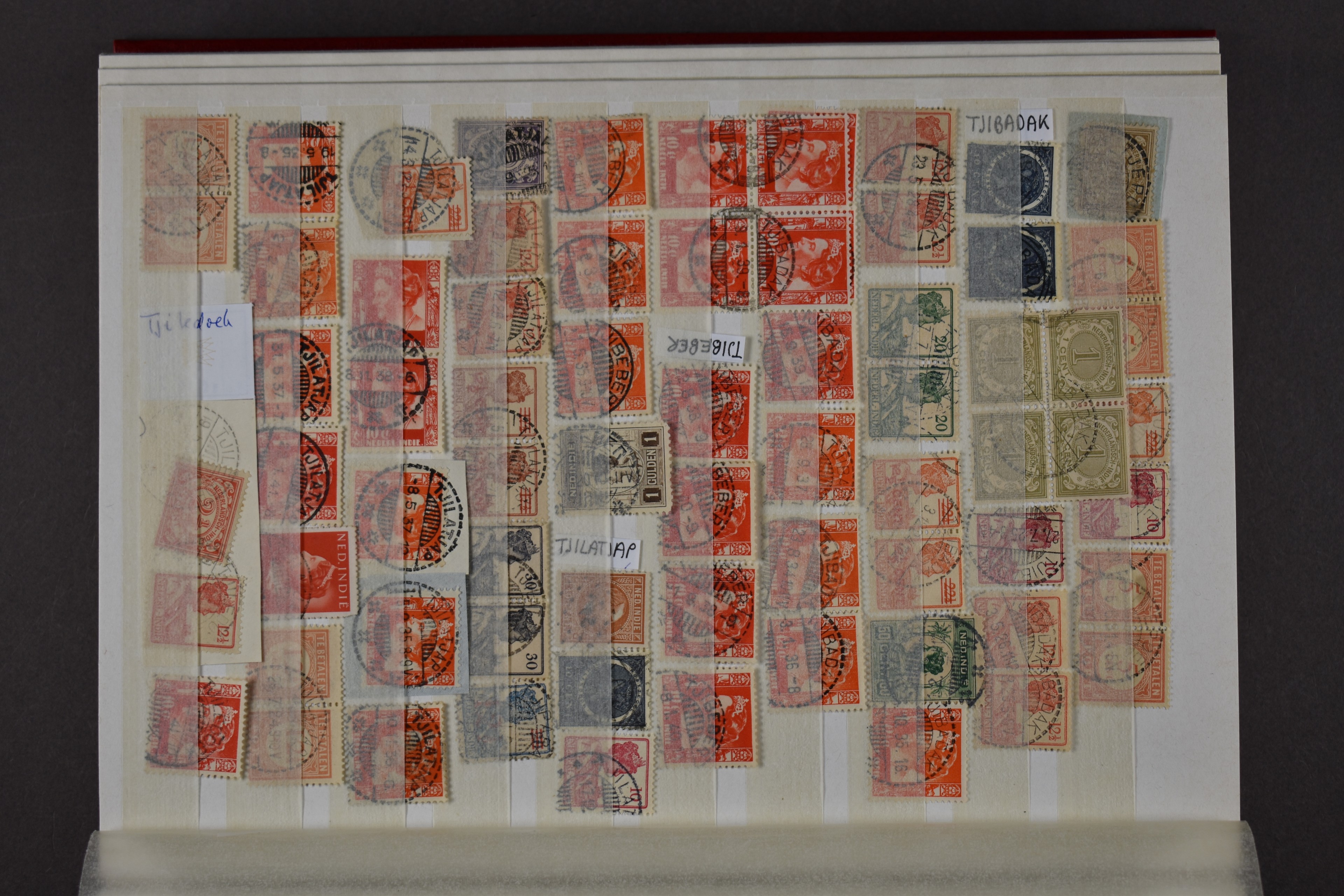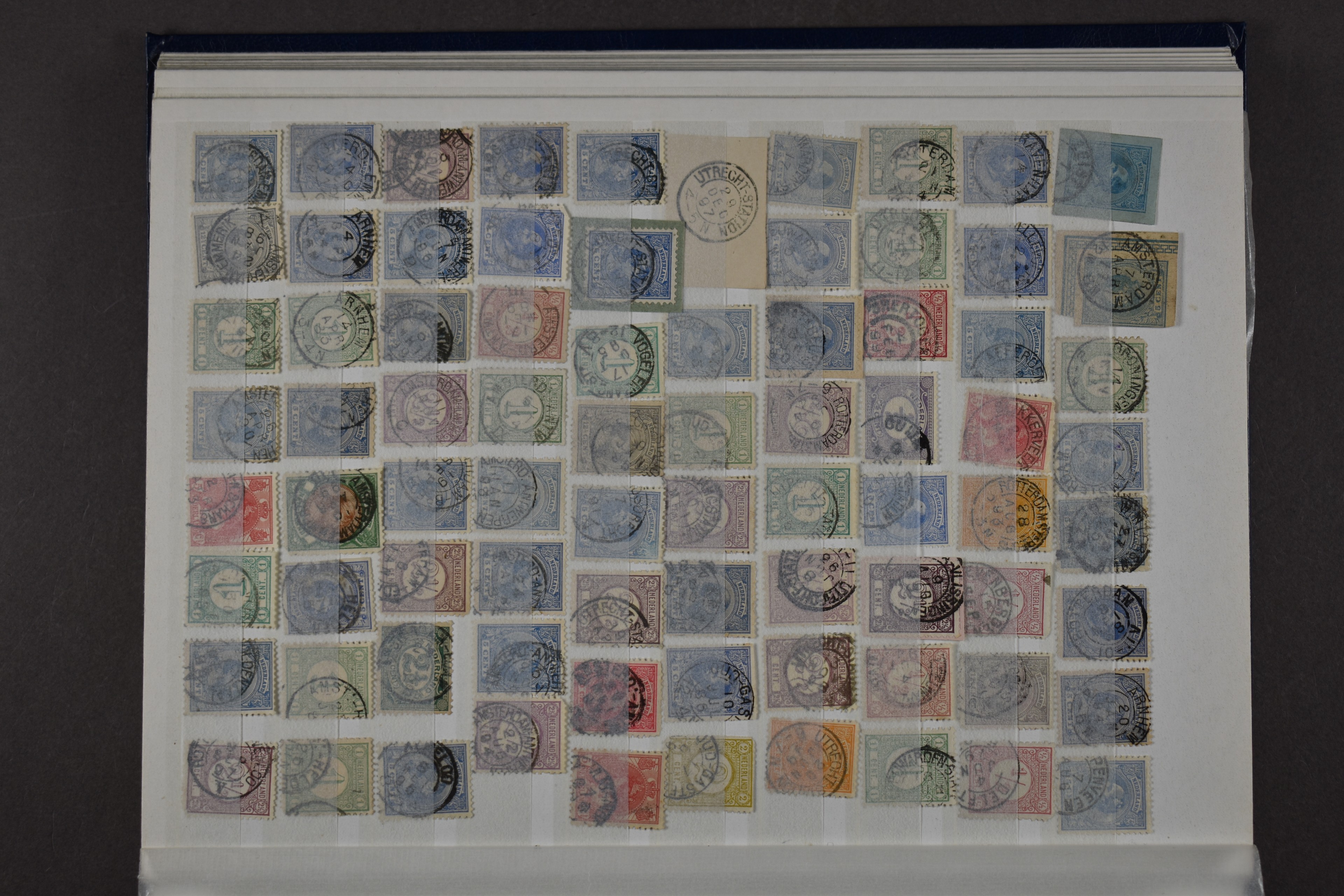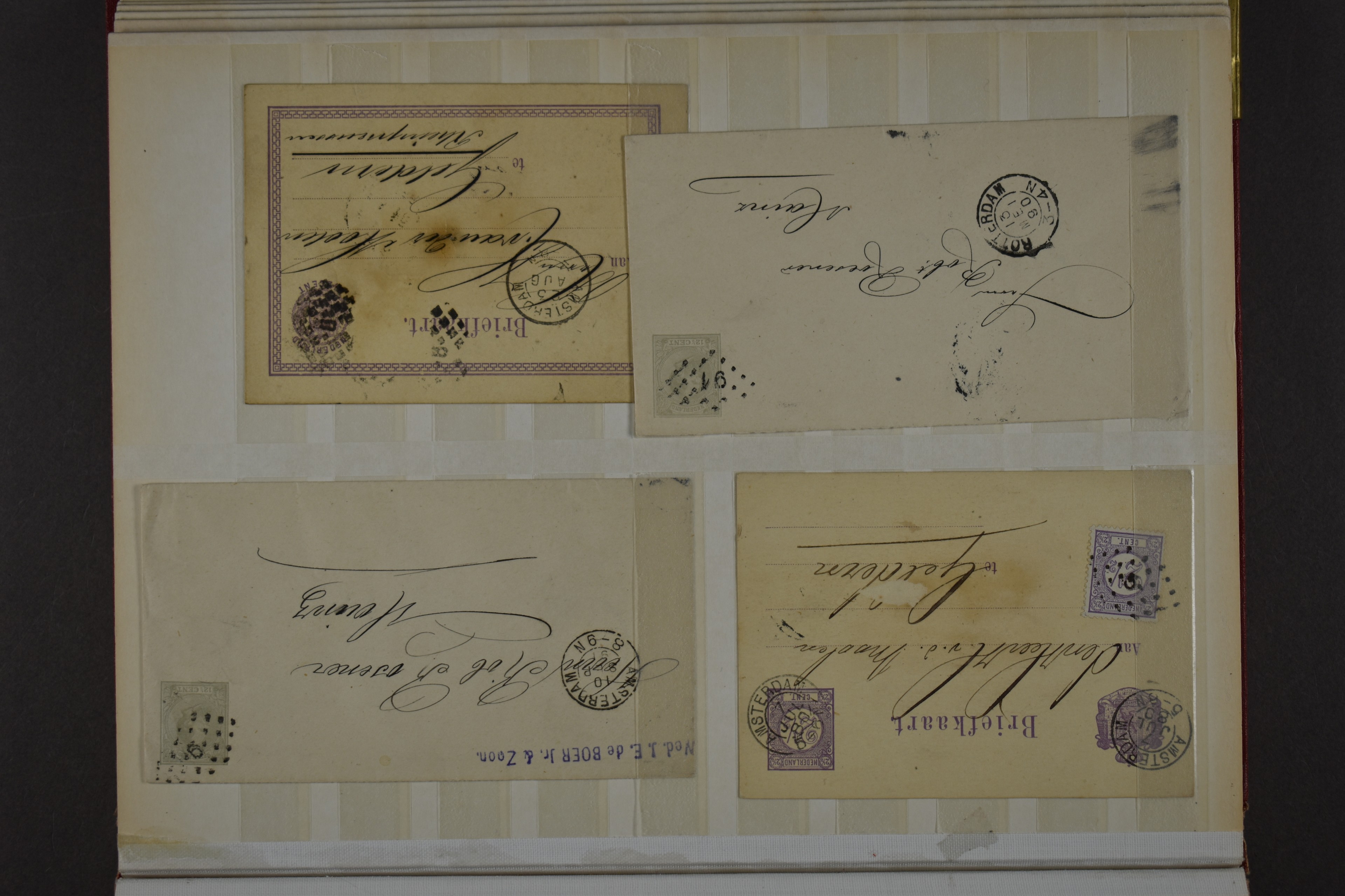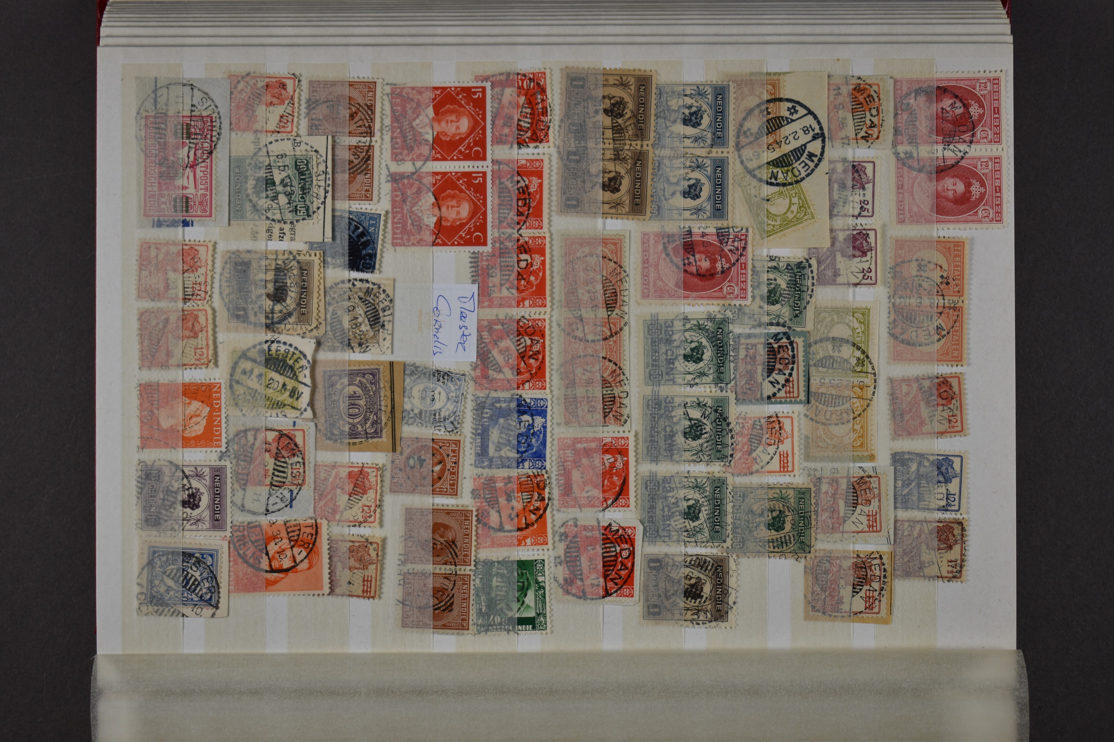 NEDERLAND, collectie afstempelingen in 12 insteekboeken waarbij punt-, kleinrond-, grootrond,- lange- en kortebalk- en drukwerkrolstempels, tevens insteekboek Ned.-Indië afstempelingen en insteekboek plaatfouten