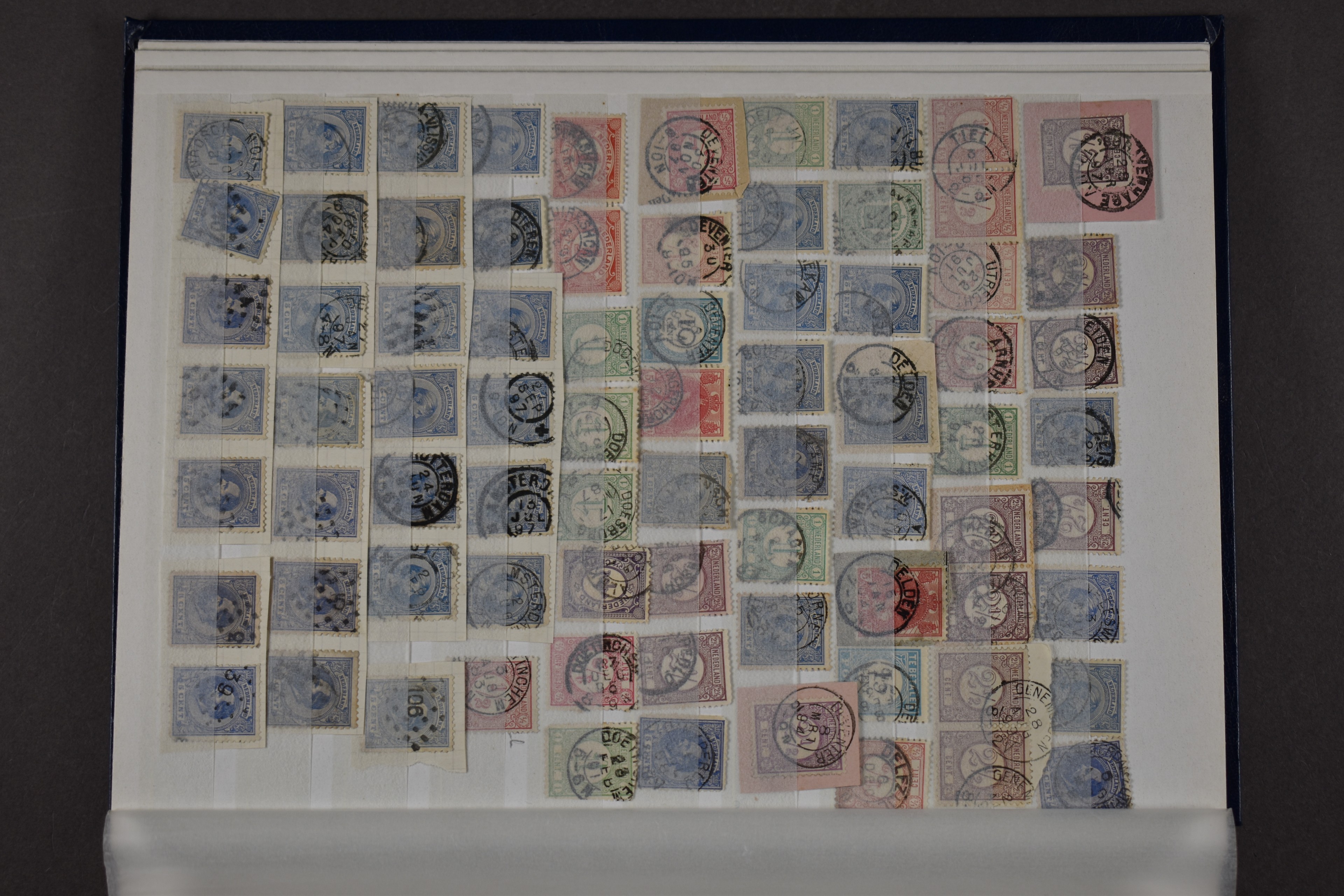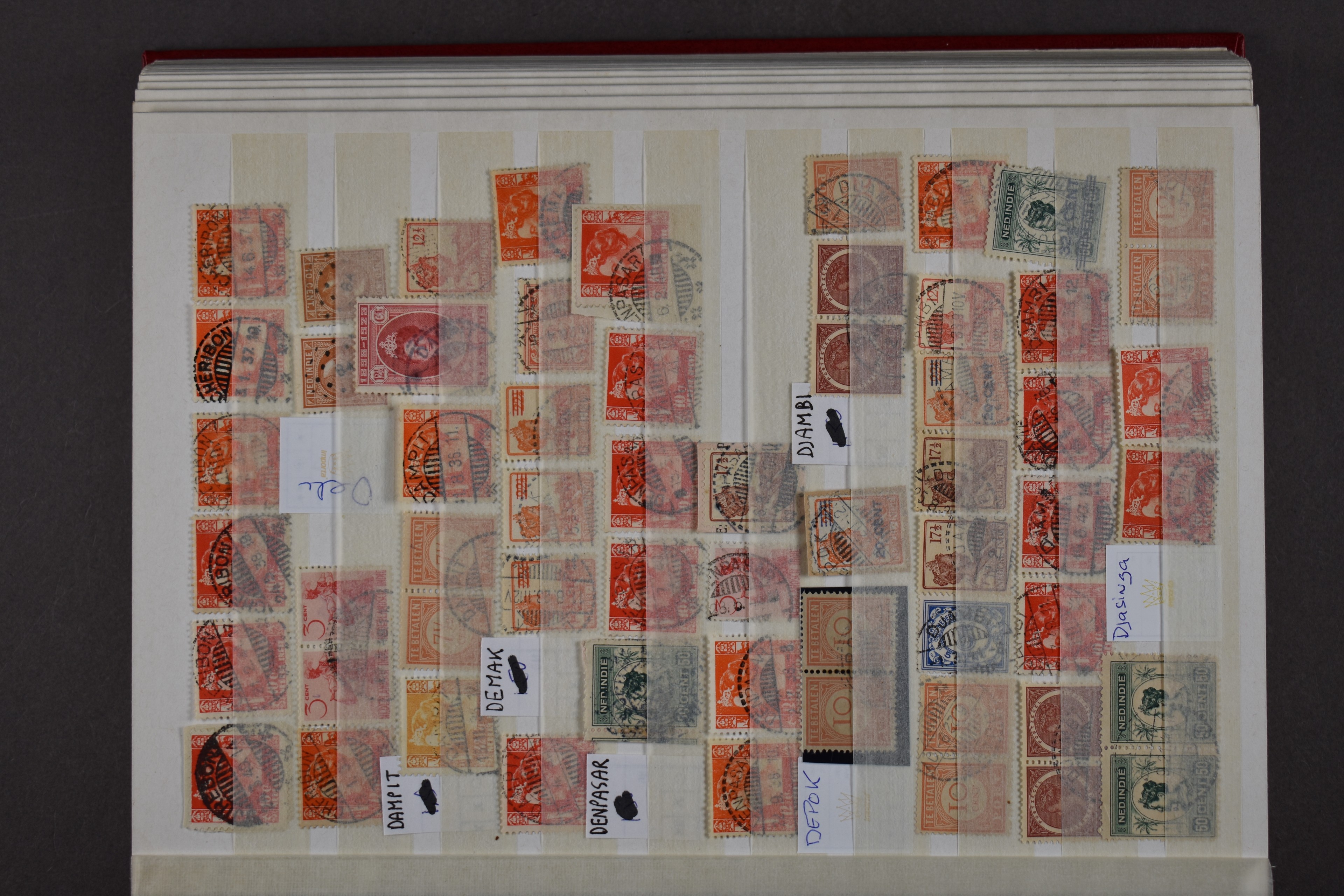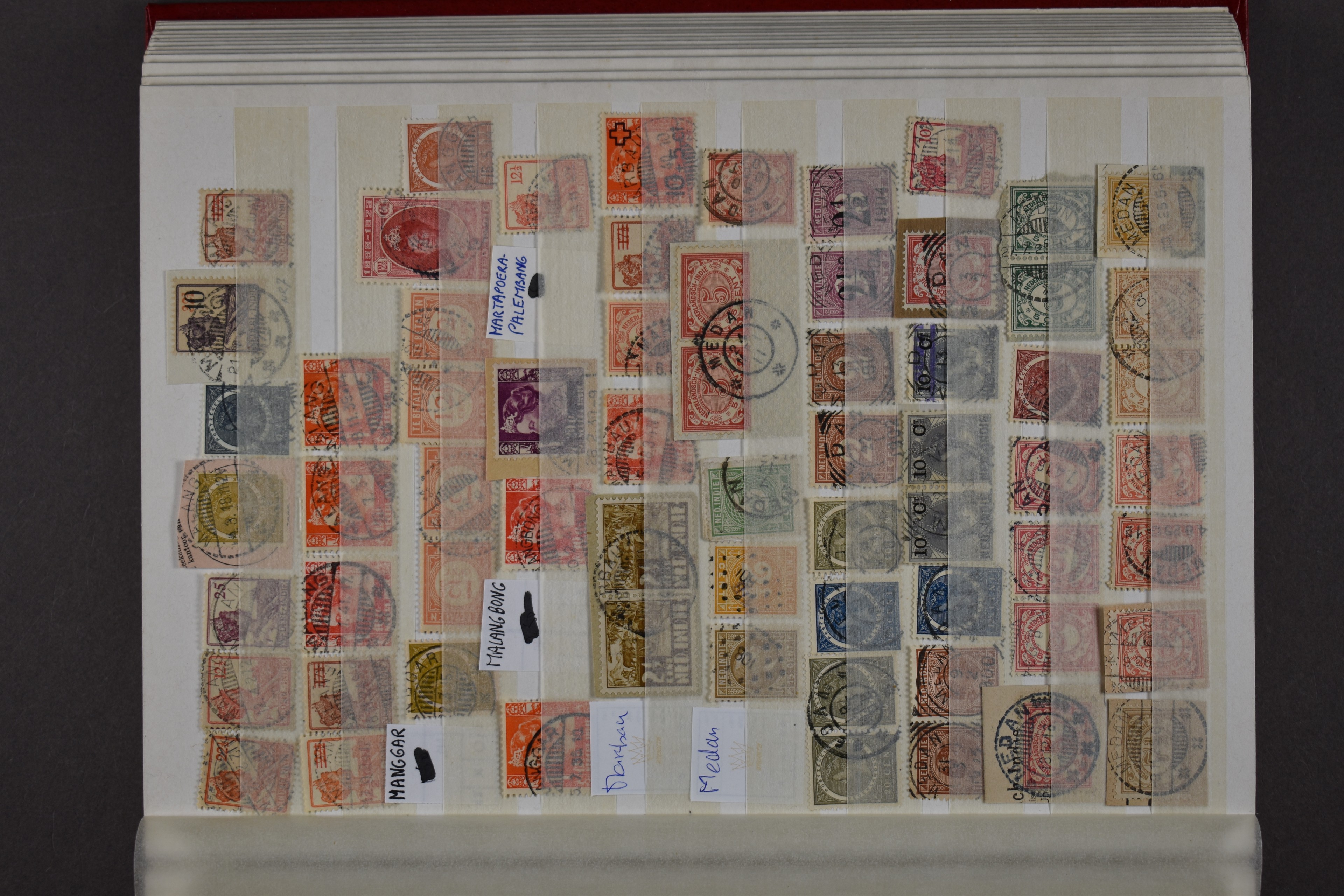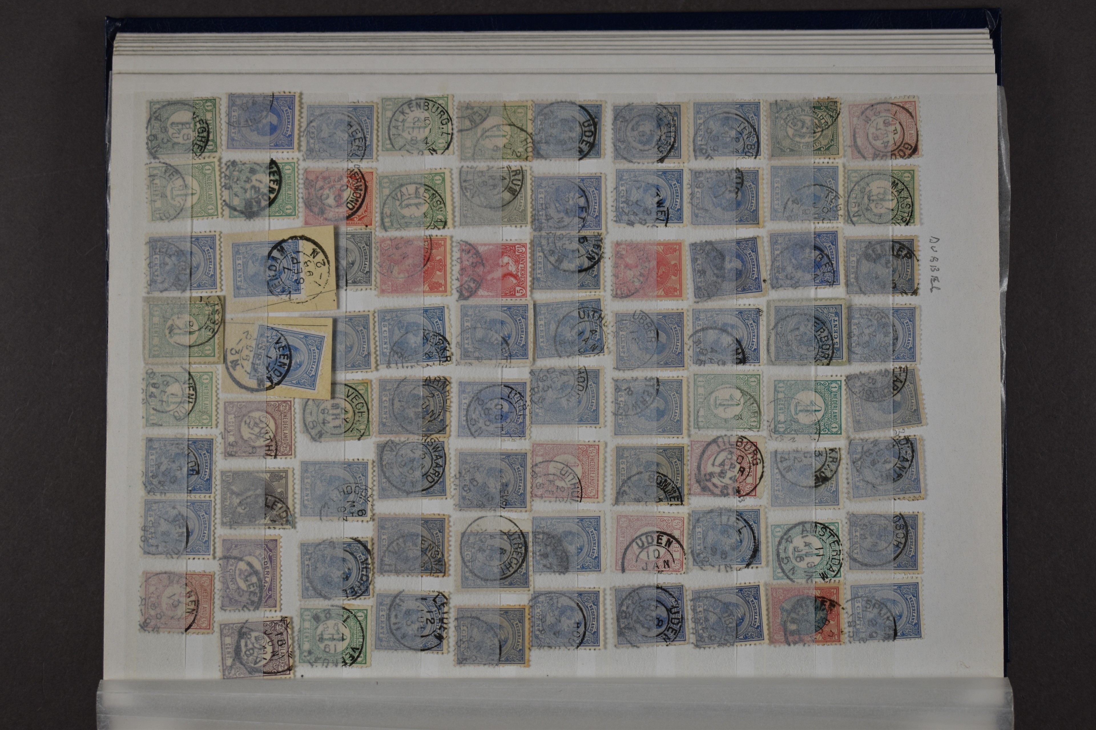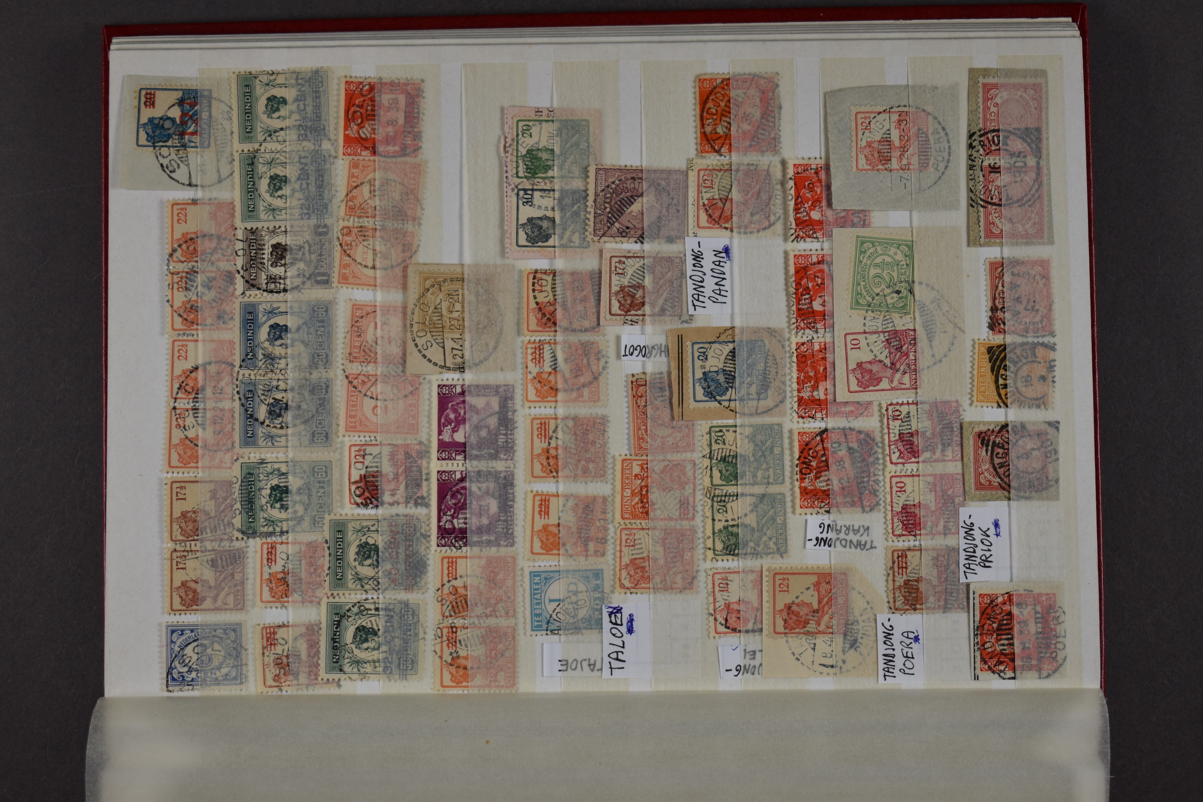 NEDERLAND, collectie afstempelingen in 12 insteekboeken waarbij punt-, kleinrond-, grootrond,- lange- en kortebalk- en drukwerkrolstempels, tevens insteekboek Ned.-Indië afstempelingen en insteekboek plaatfouten