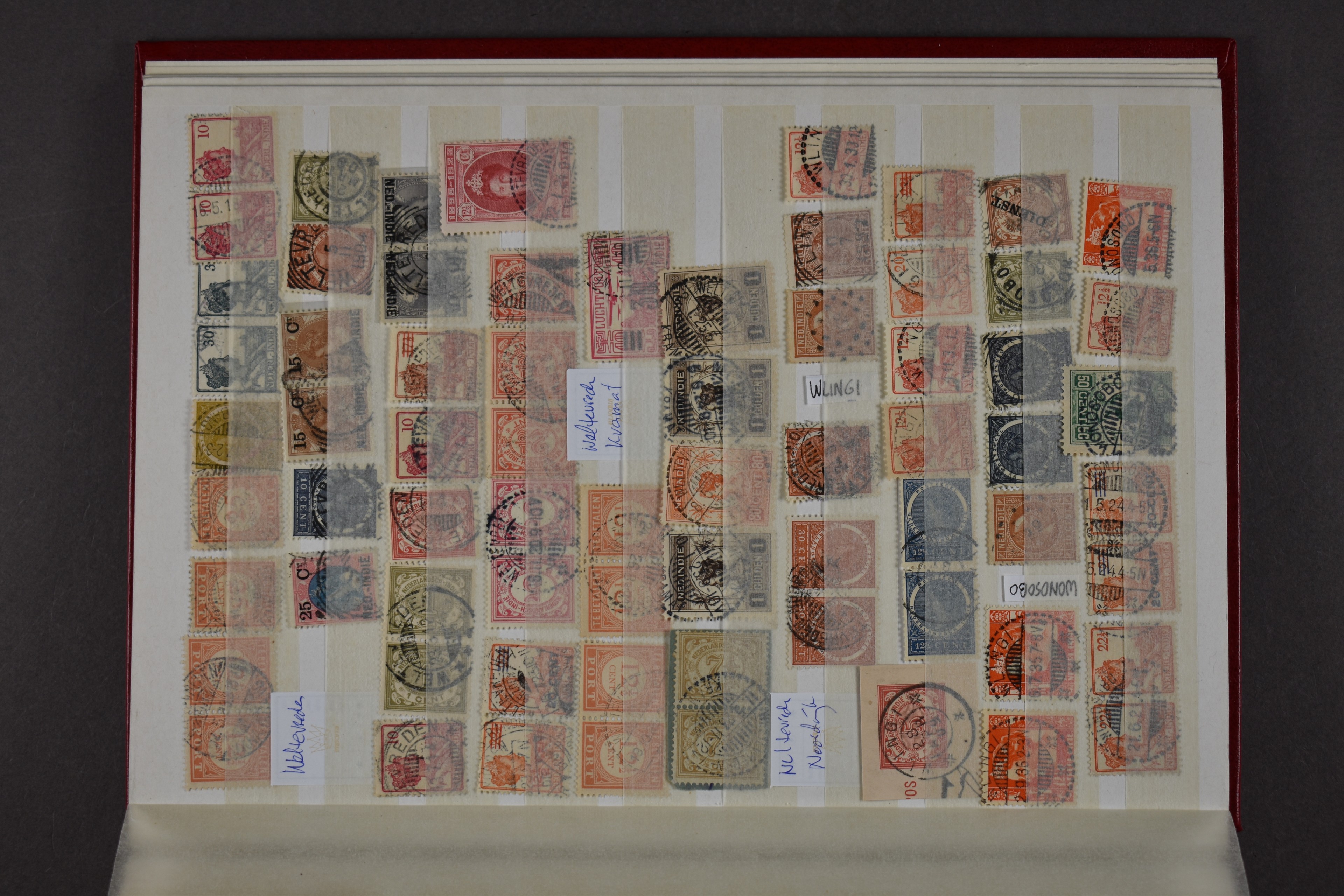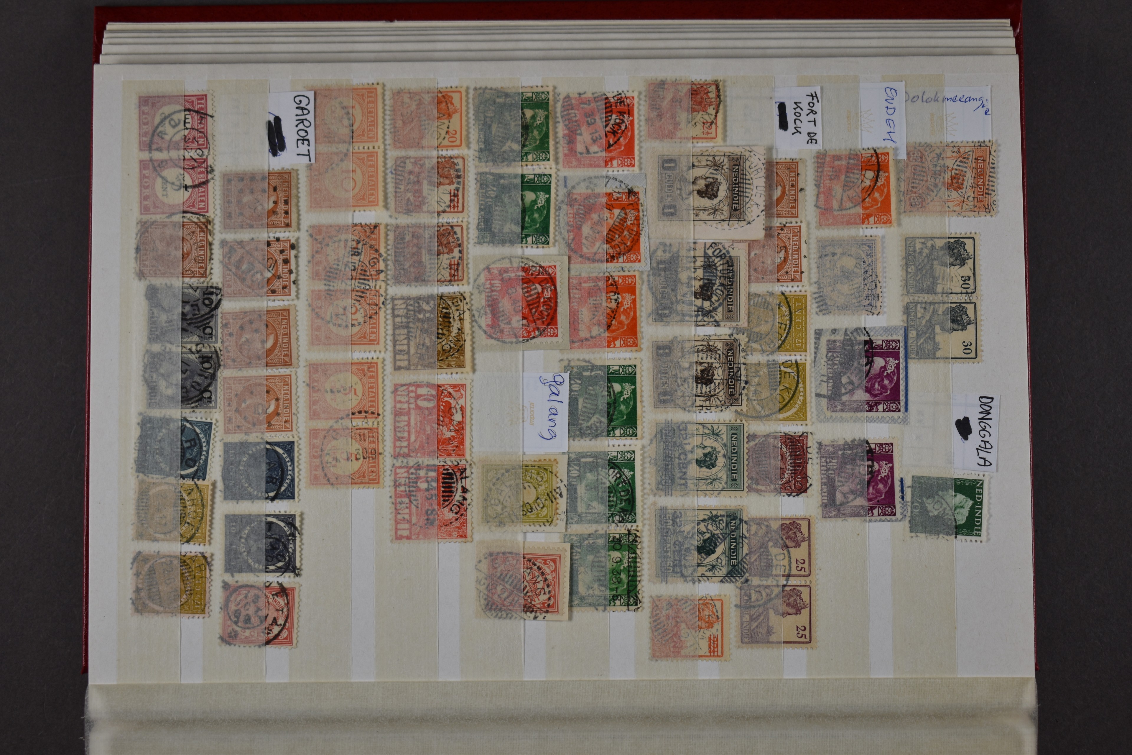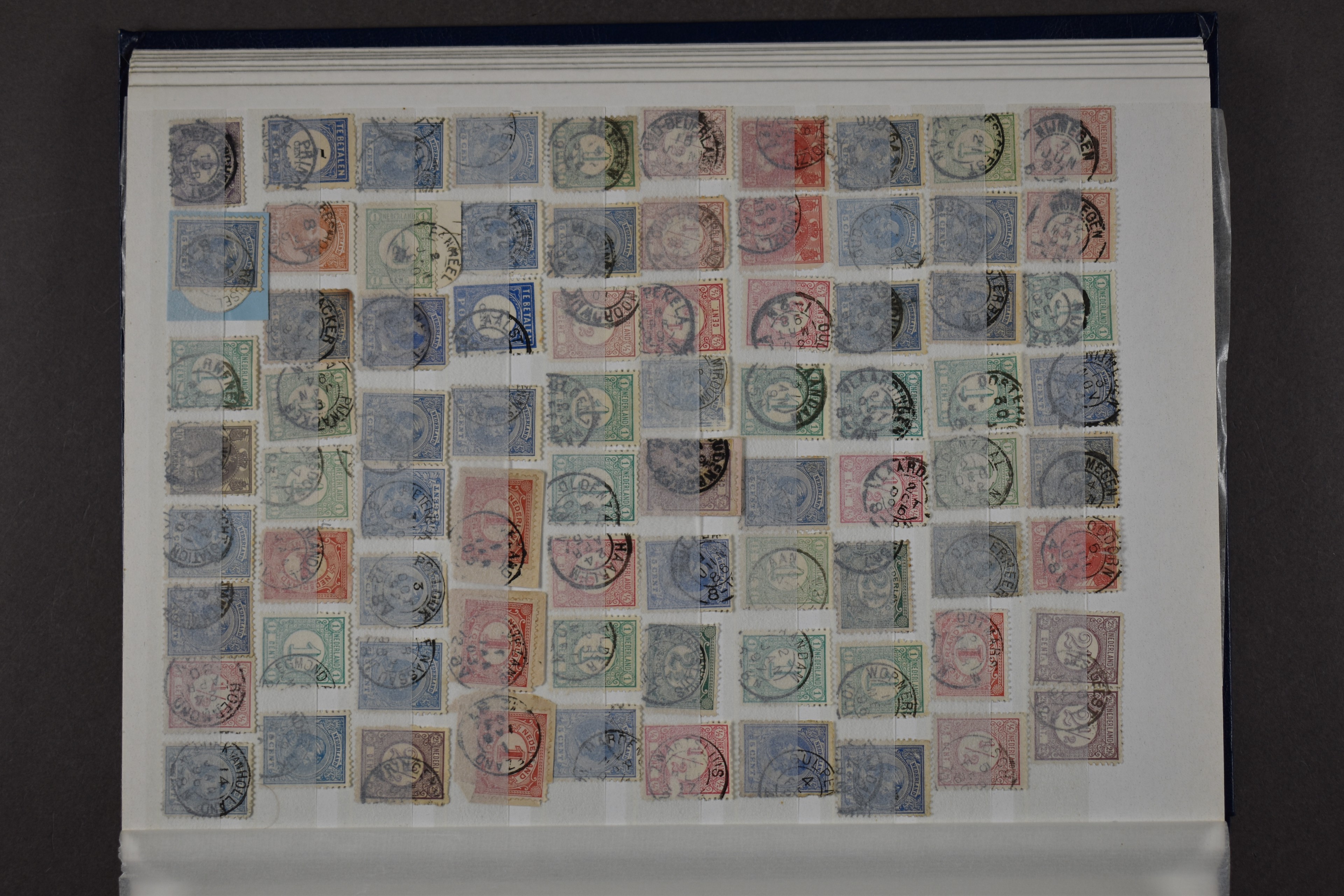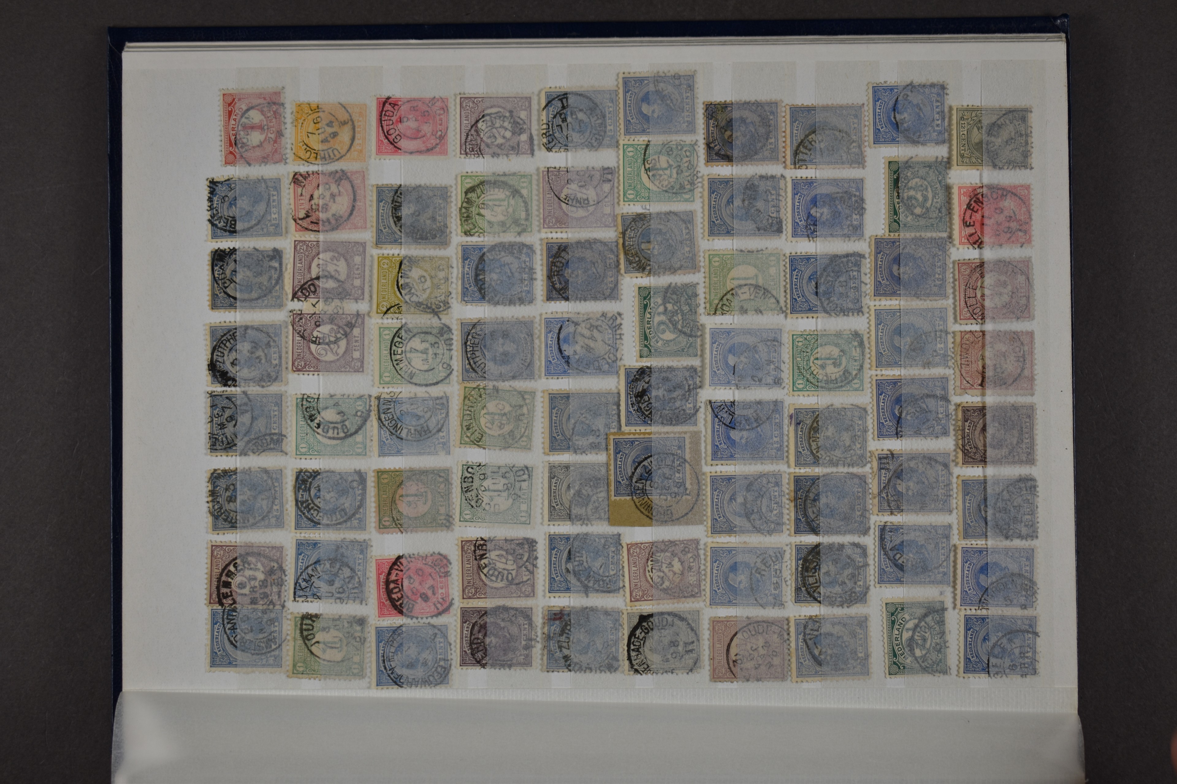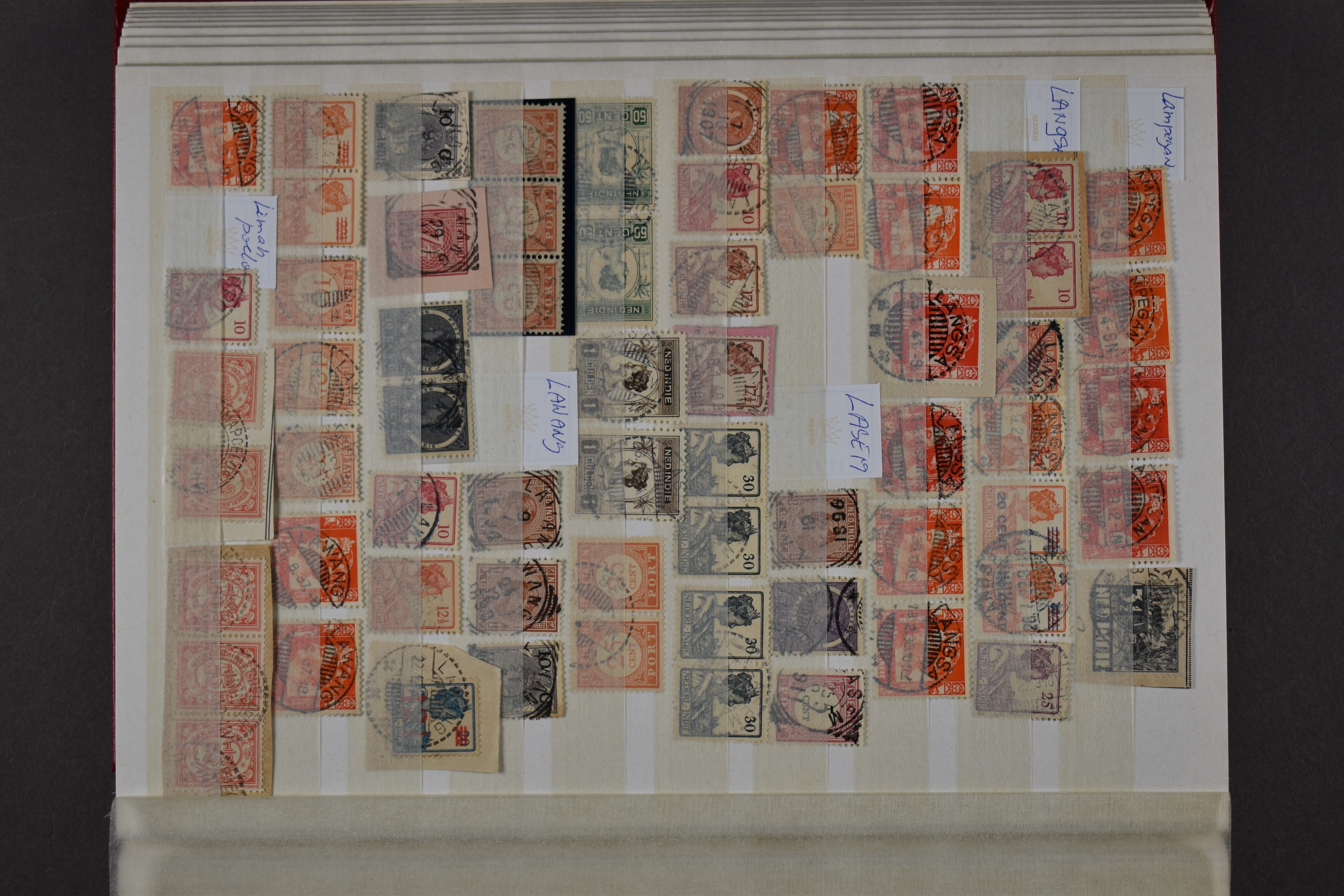 NEDERLAND, collectie afstempelingen in 12 insteekboeken waarbij punt-, kleinrond-, grootrond,- lange- en kortebalk- en drukwerkrolstempels, tevens insteekboek Ned.-Indië afstempelingen en insteekboek plaatfouten