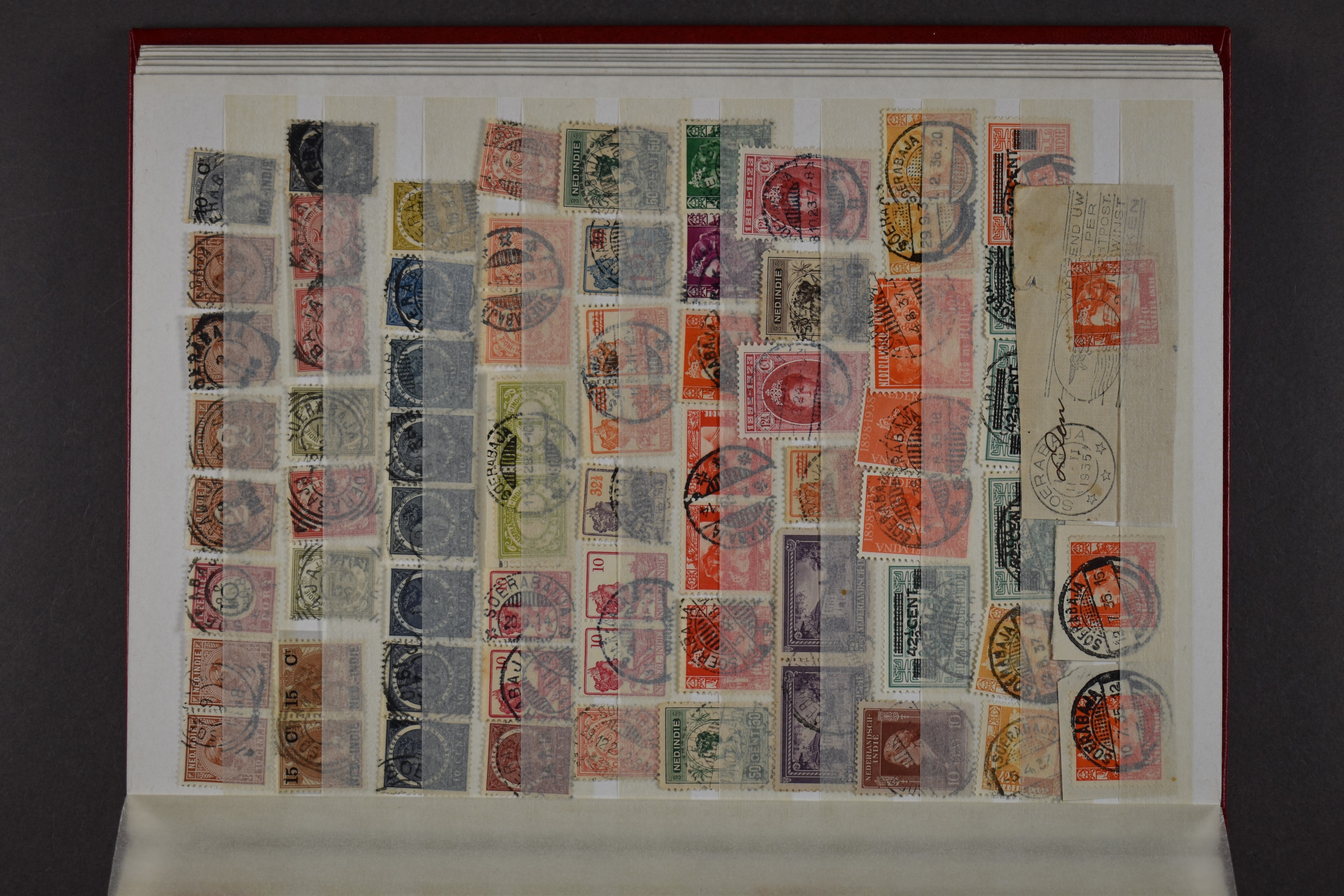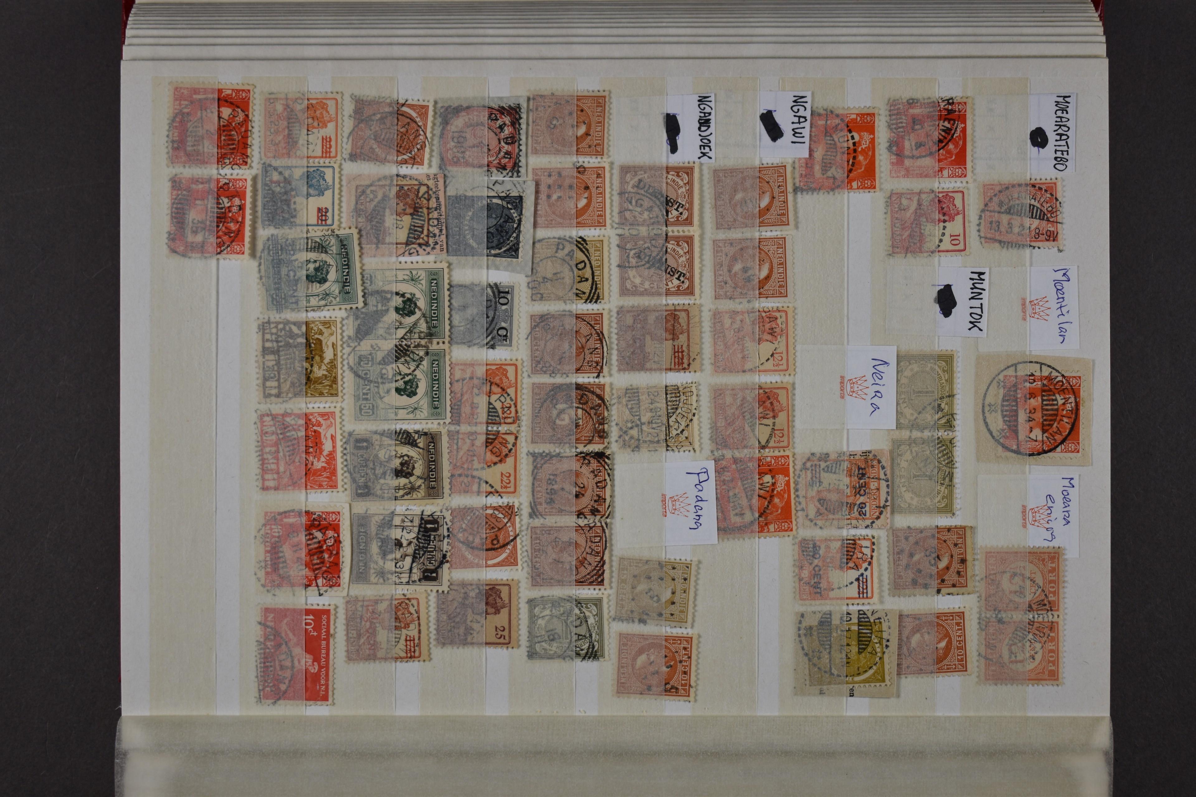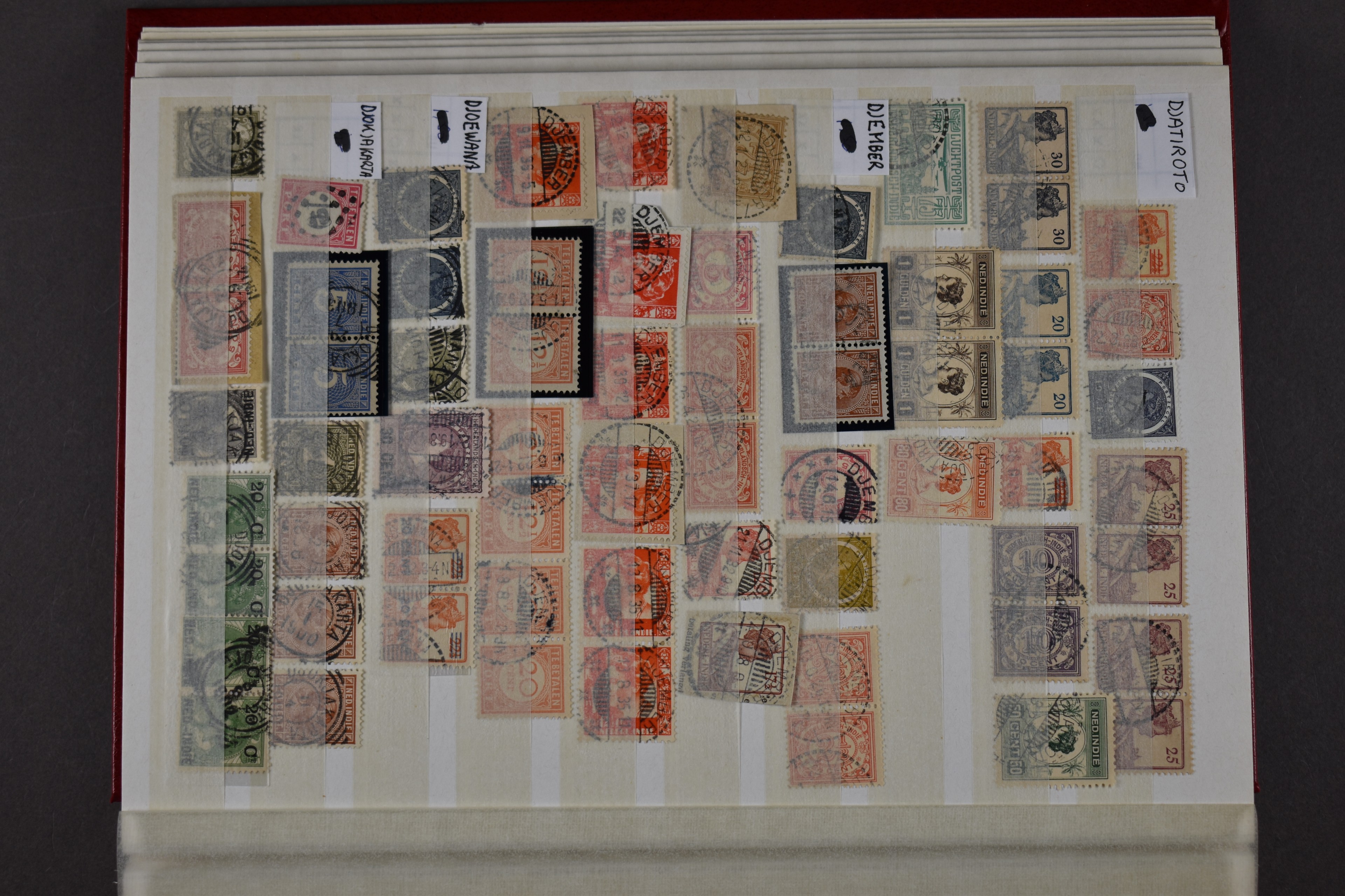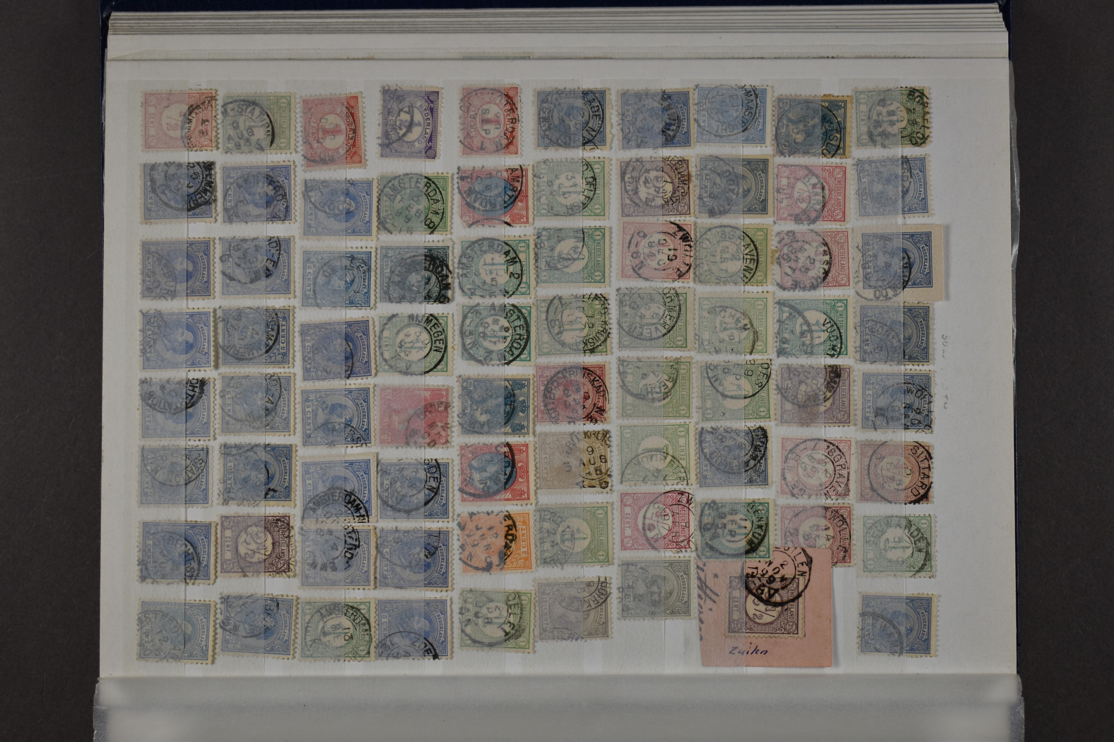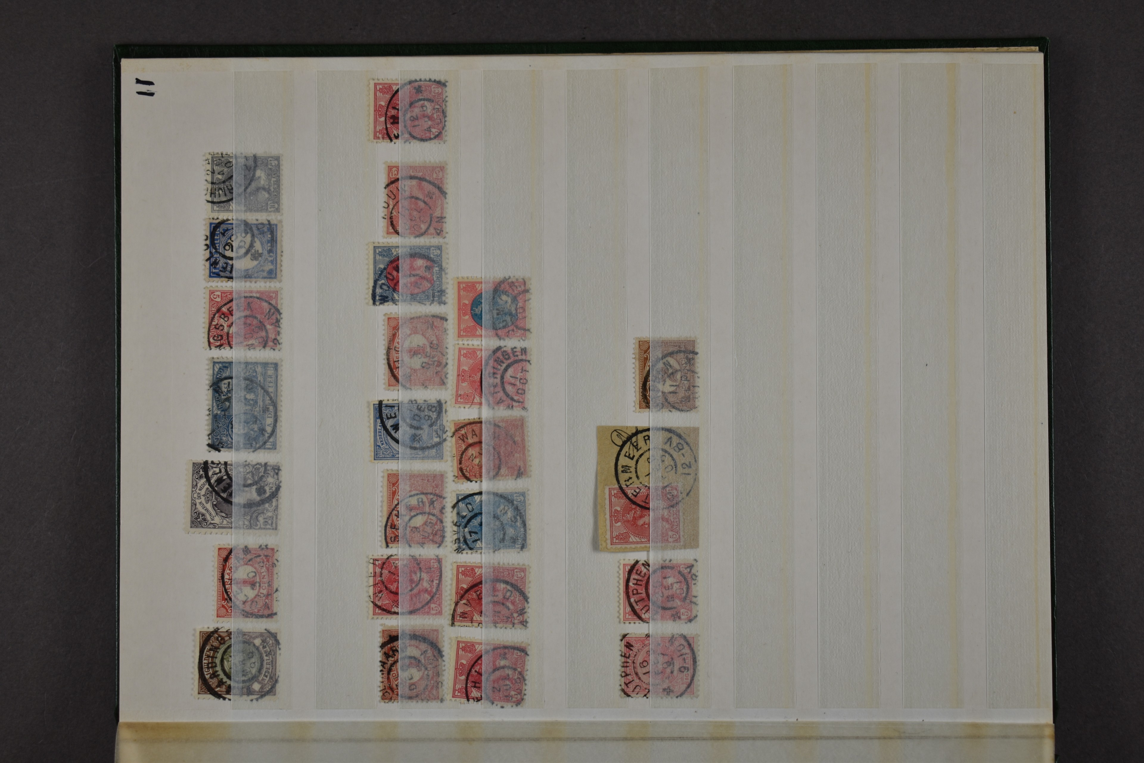NEDERLAND, collectie afstempelingen in 12 insteekboeken waarbij punt-, kleinrond-, grootrond,- lange- en kortebalk- en drukwerkrolstempels, tevens insteekboek Ned.-Indië afstempelingen en insteekboek plaatfouten