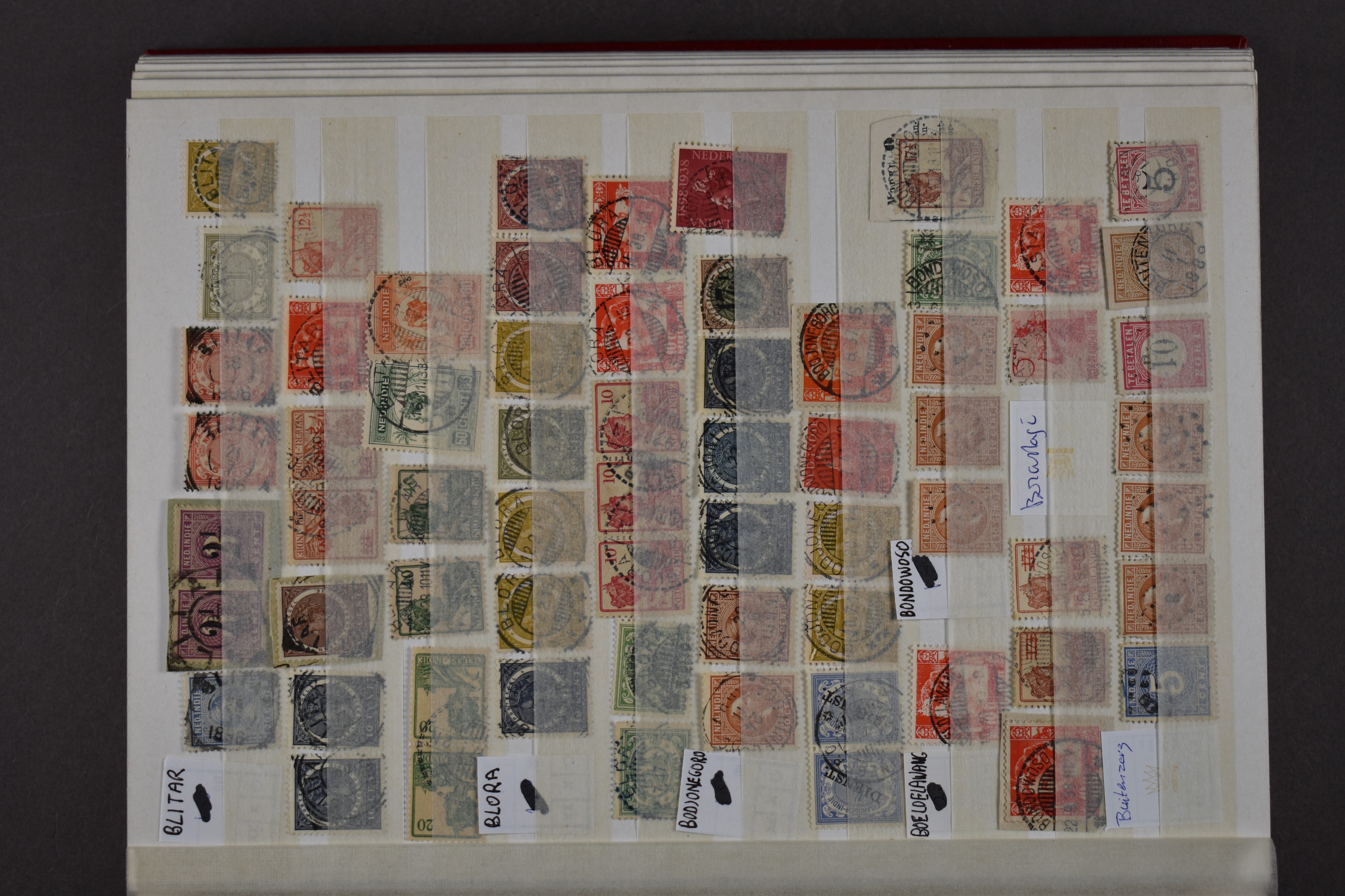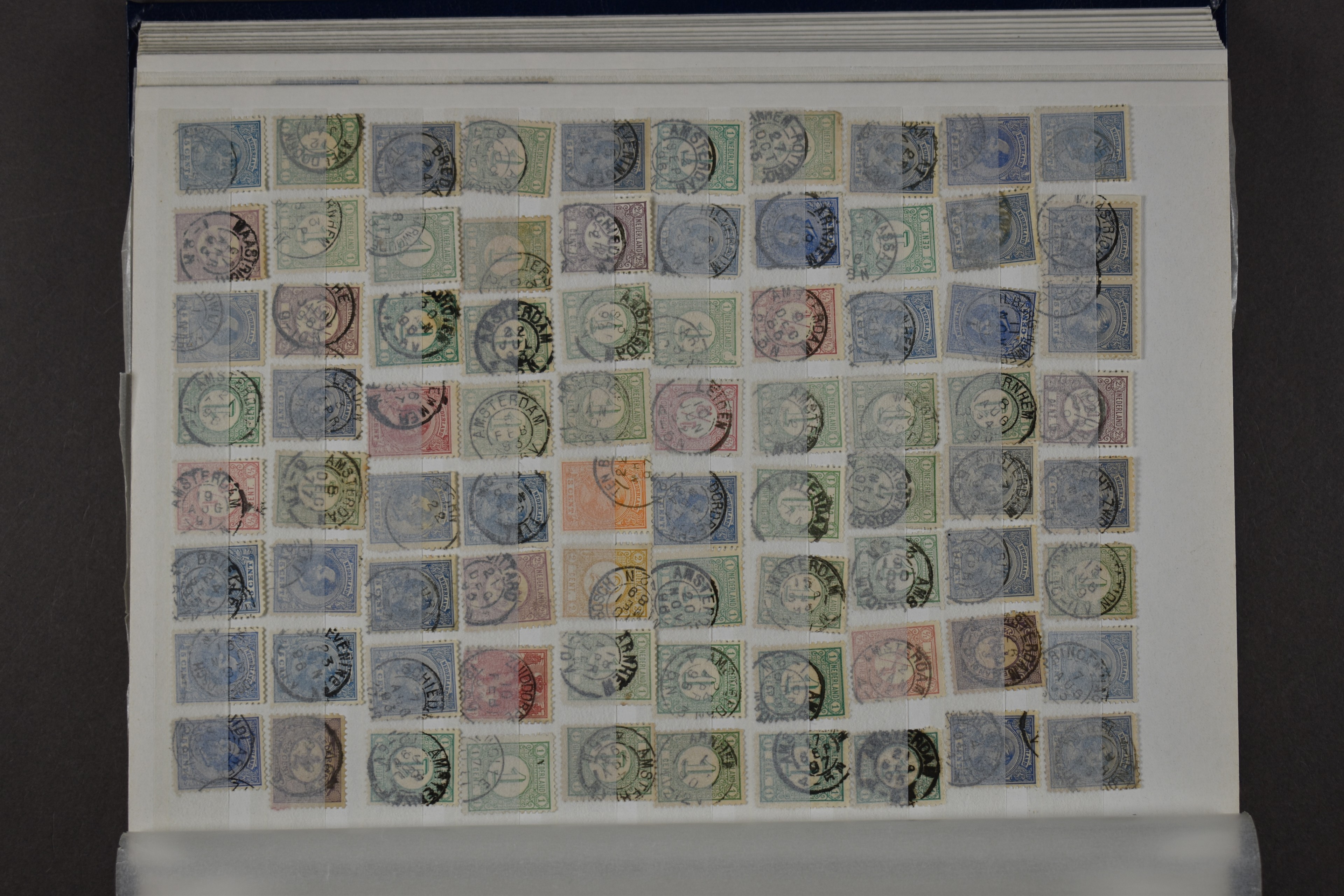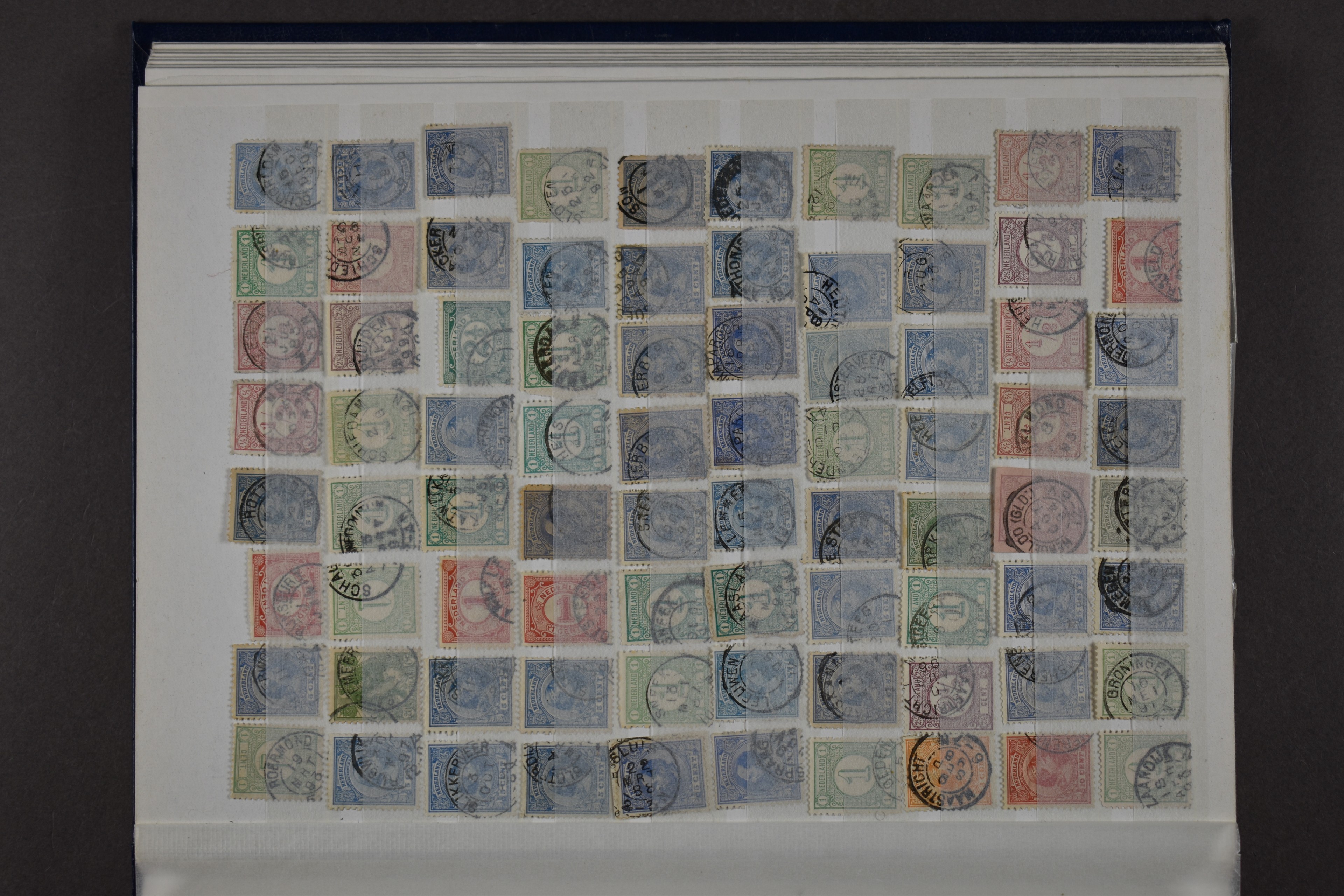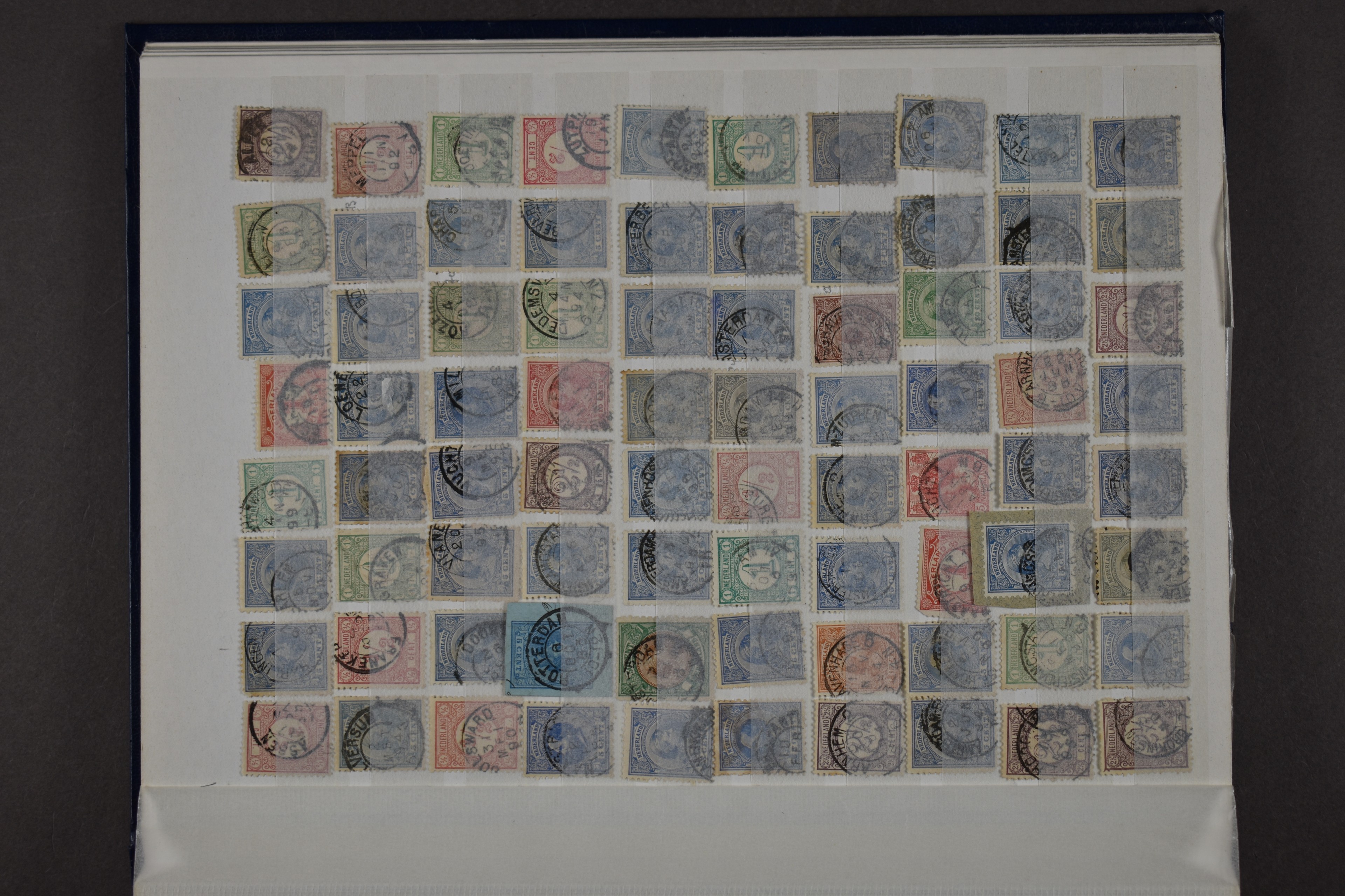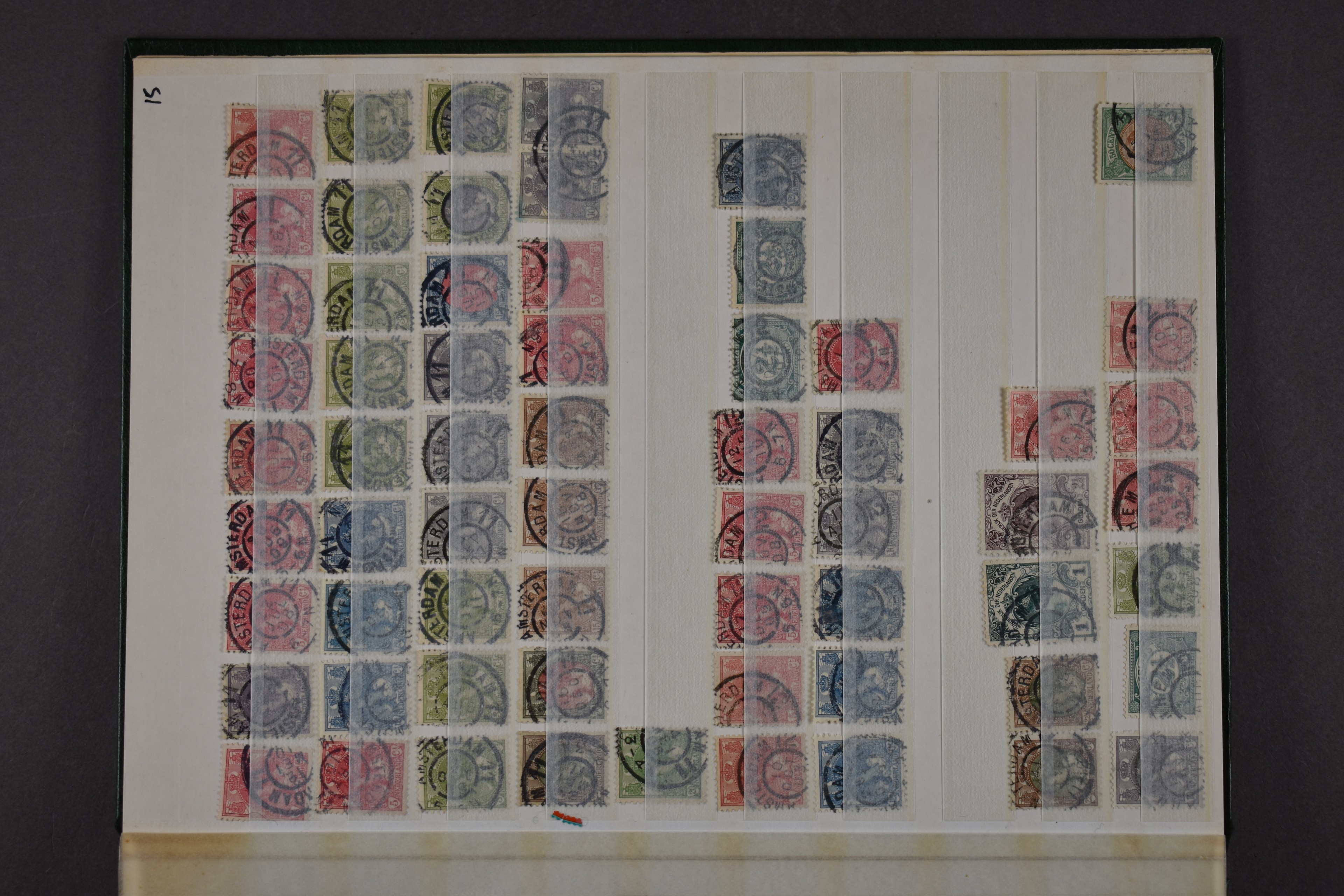 NEDERLAND, collectie afstempelingen in 12 insteekboeken waarbij punt-, kleinrond-, grootrond,- lange- en kortebalk- en drukwerkrolstempels, tevens insteekboek Ned.-Indië afstempelingen en insteekboek plaatfouten