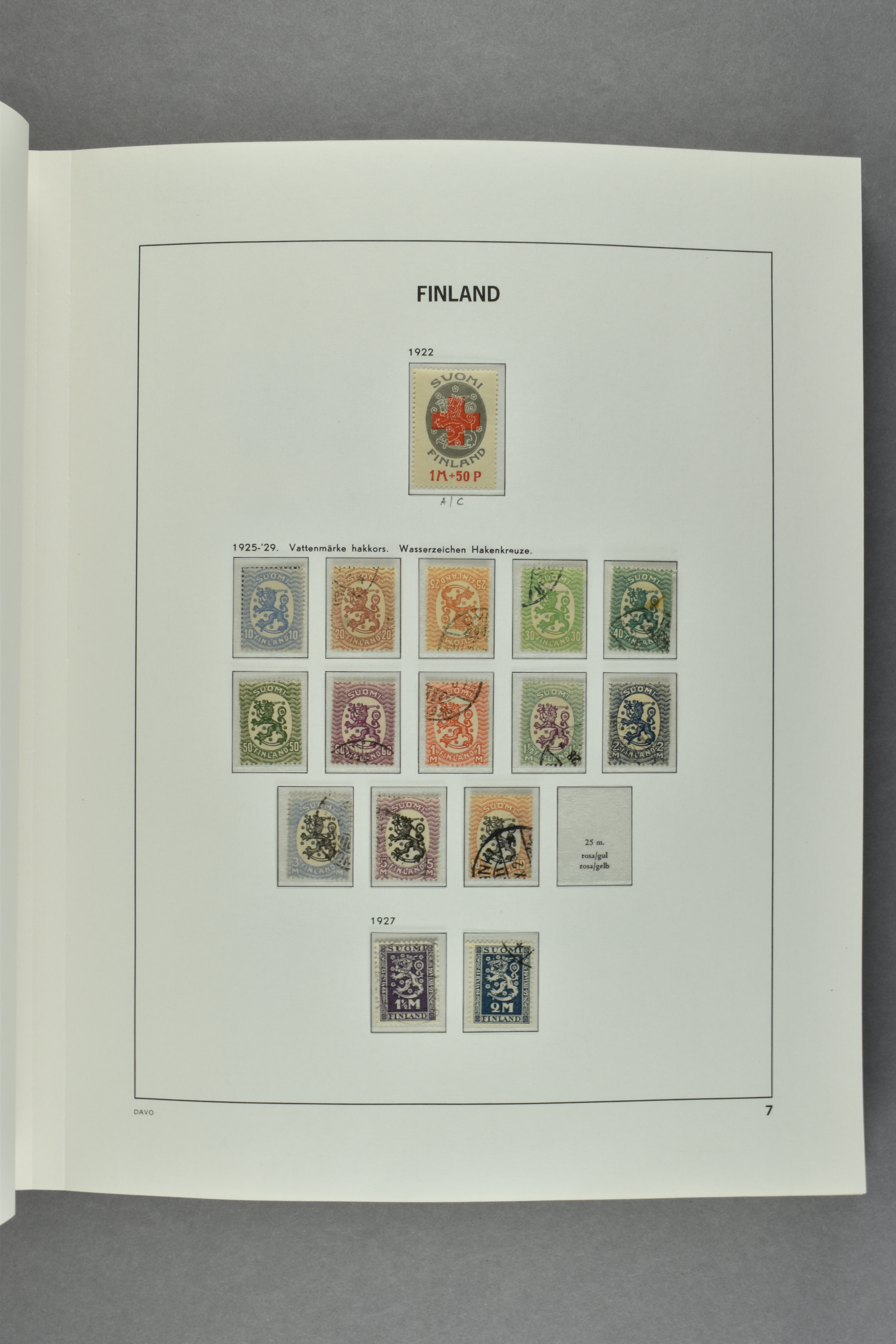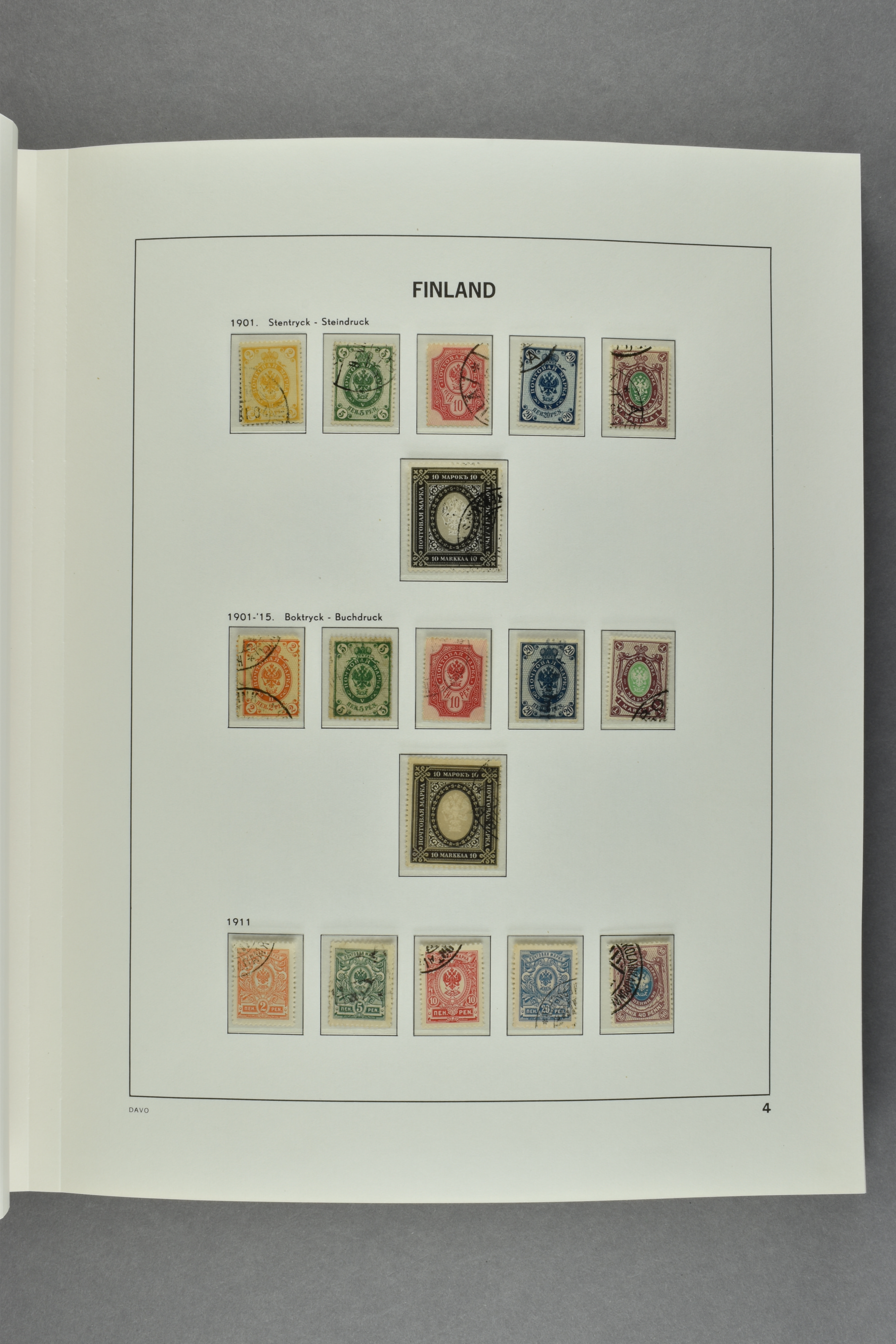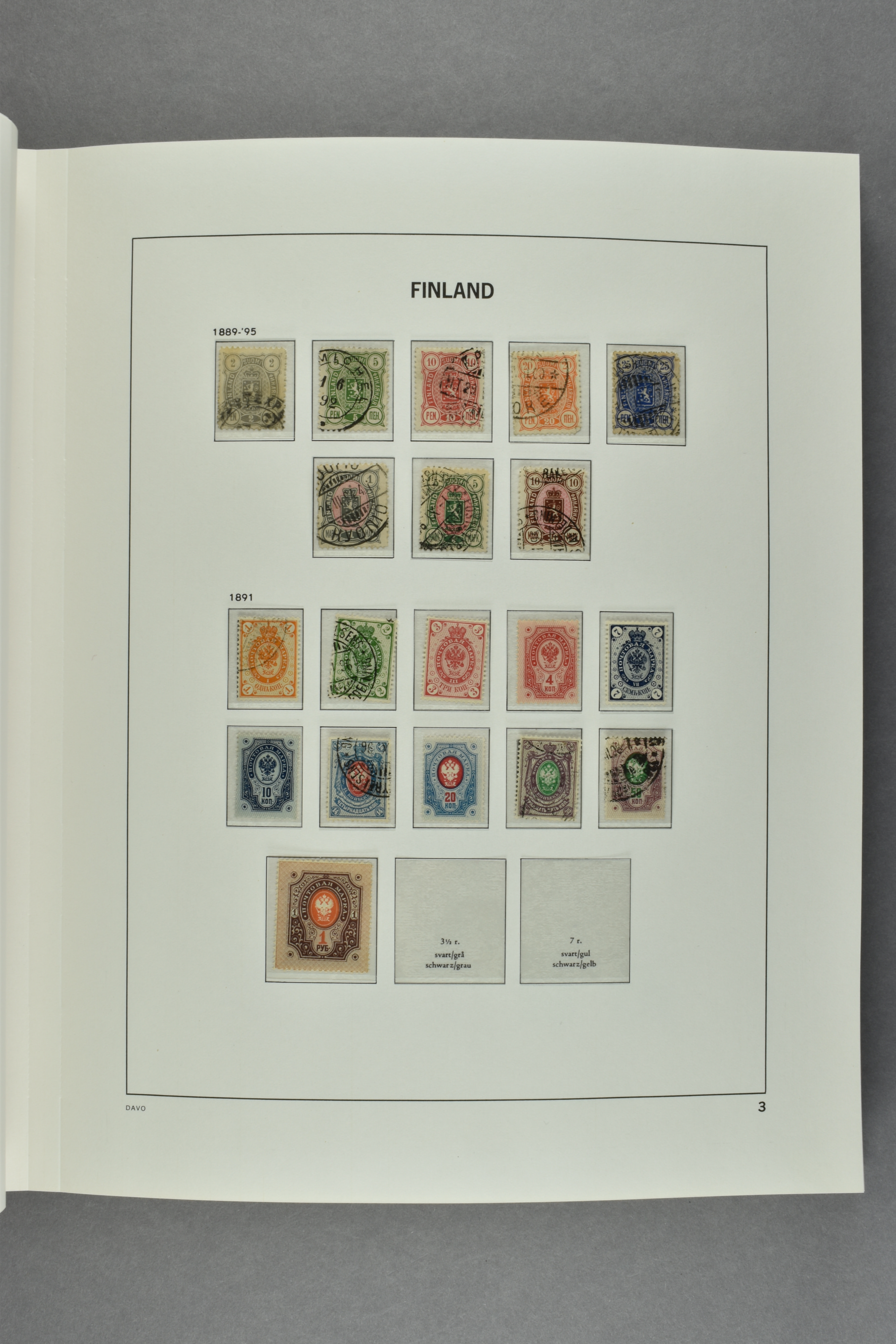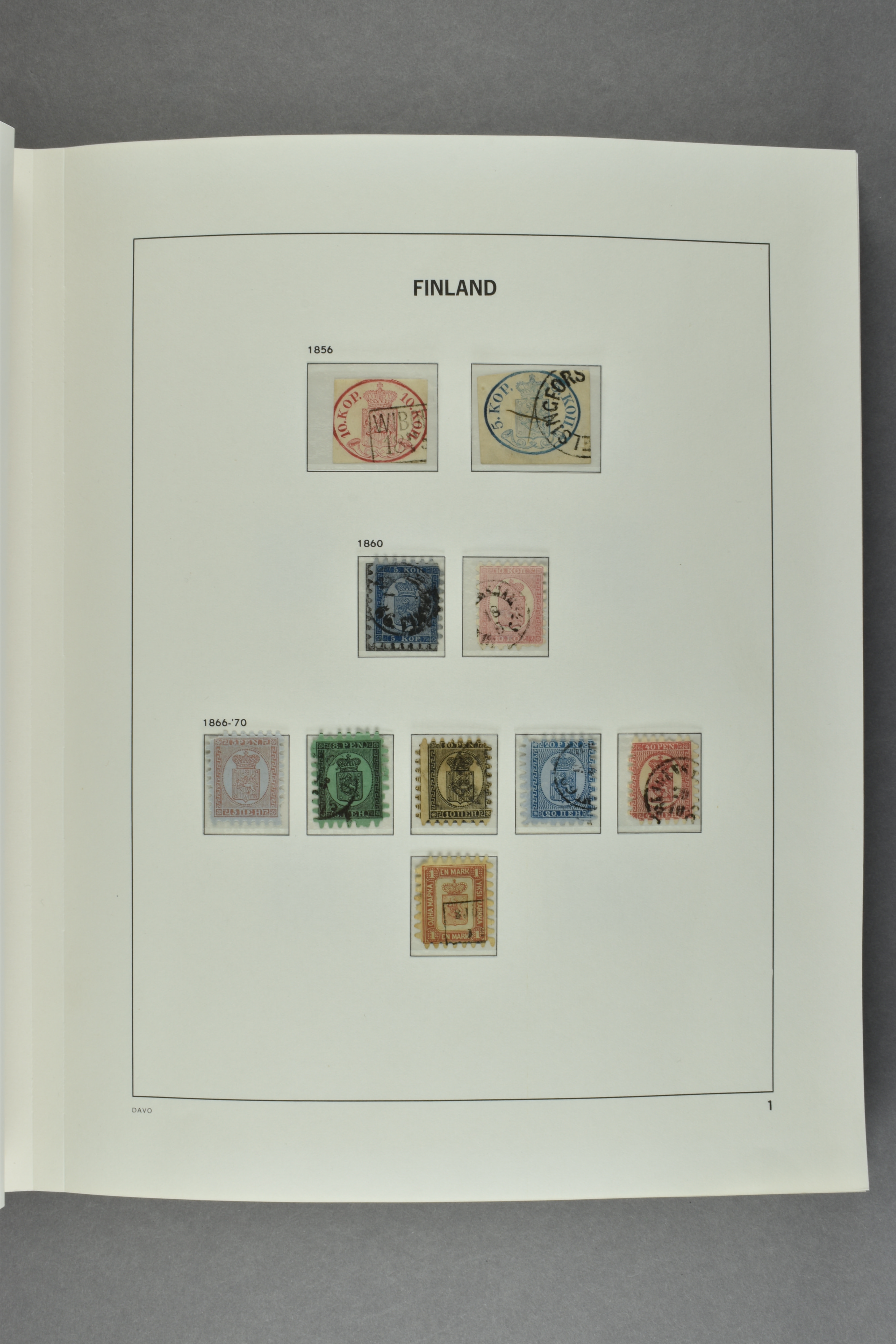 FINLAND, 1856-2011, o/*/** in 3 Davo albums with several good numbers and sets i.e.: Mi.1/2, a nice section Serpentines, 26, 54, 60 etc. and in the modern including Blocks, M/S and Booklets. Also 2 Davo albums Aland 1984-2020 including the "God Jul" M/S.