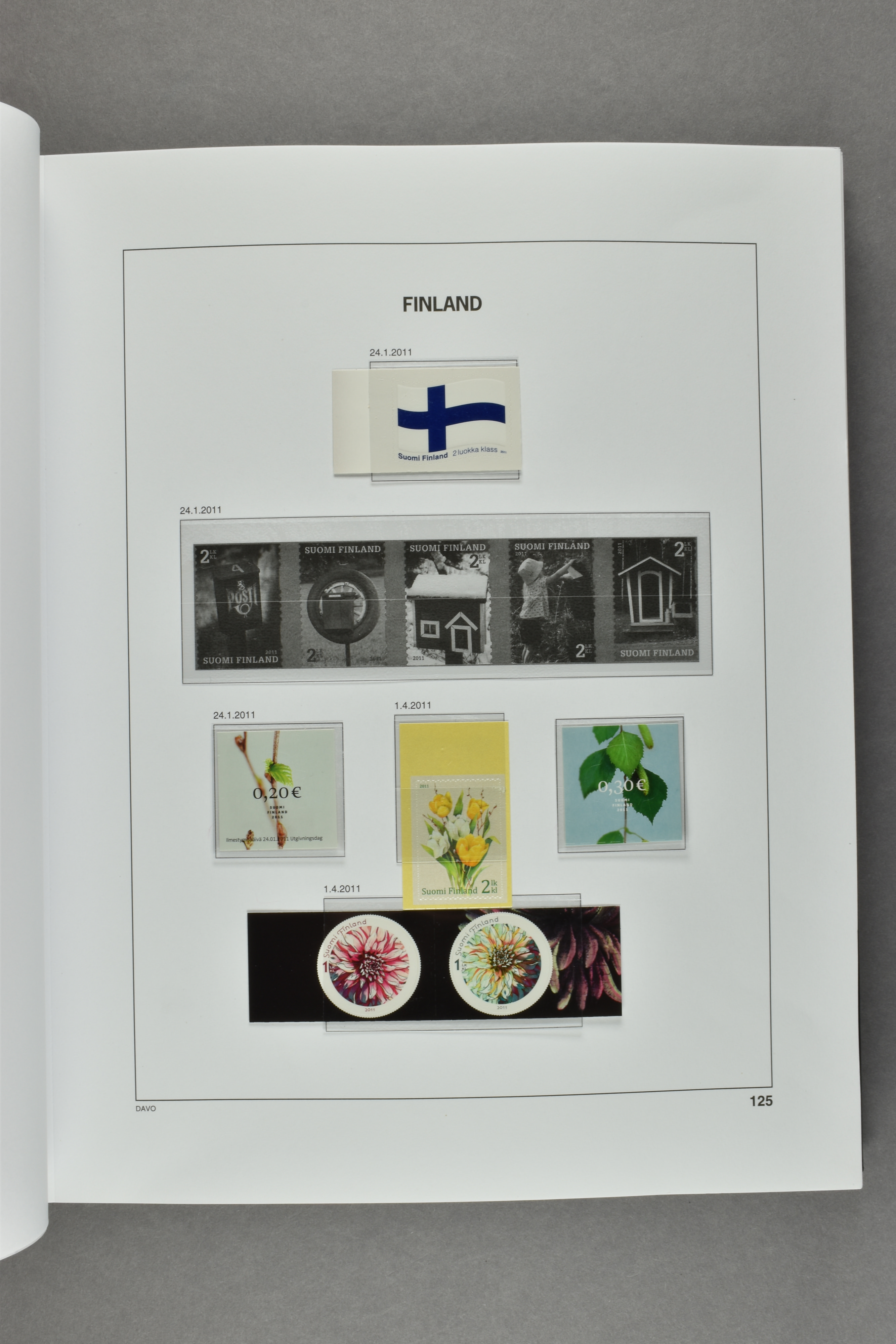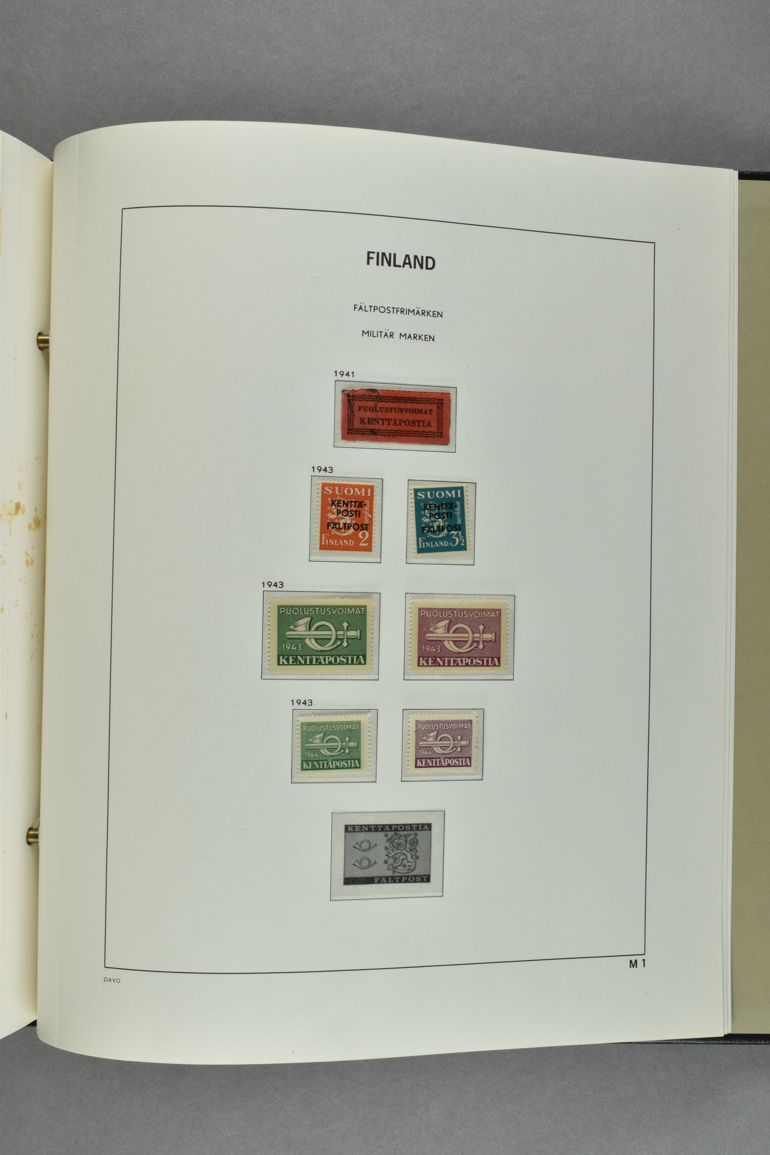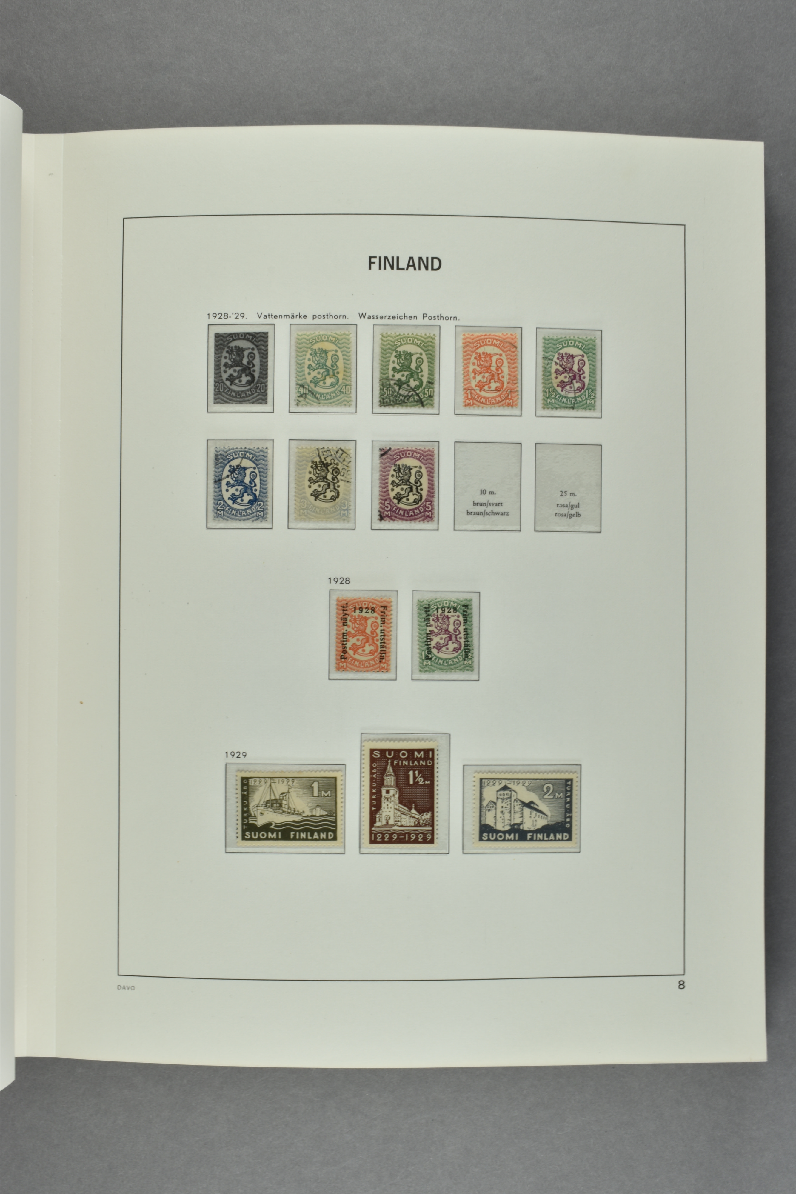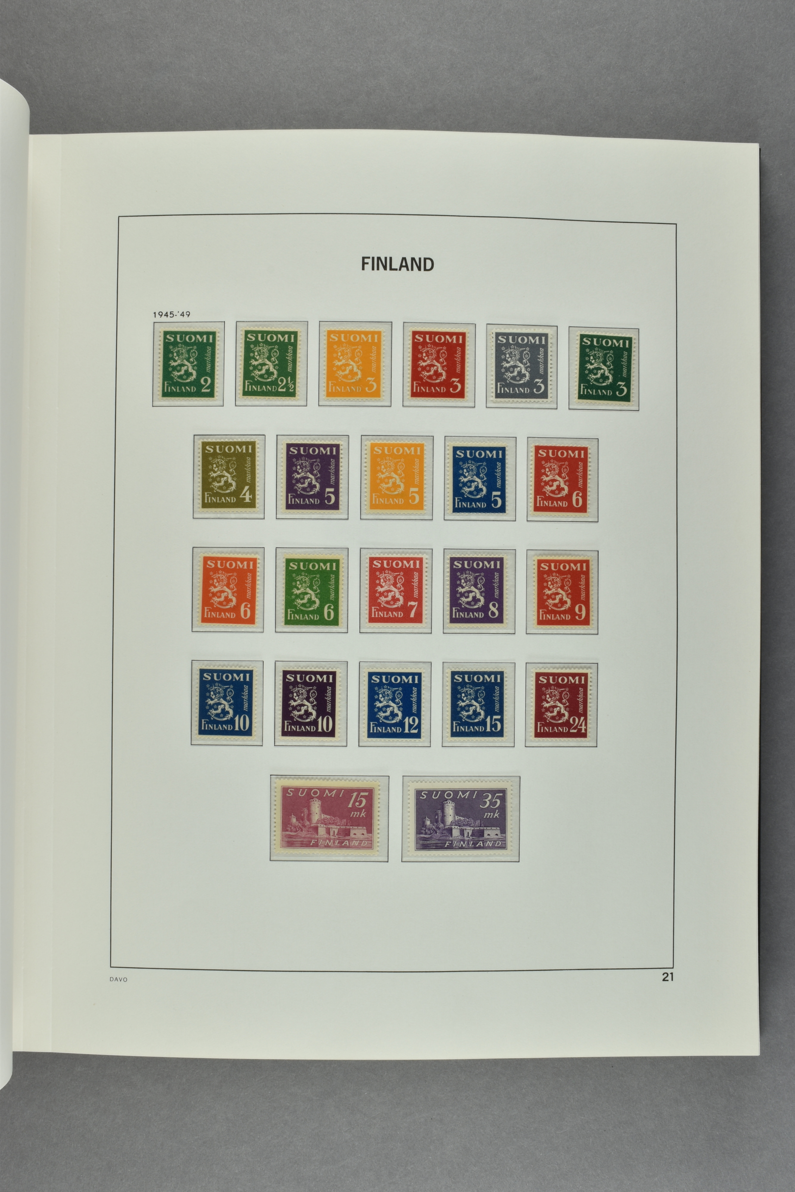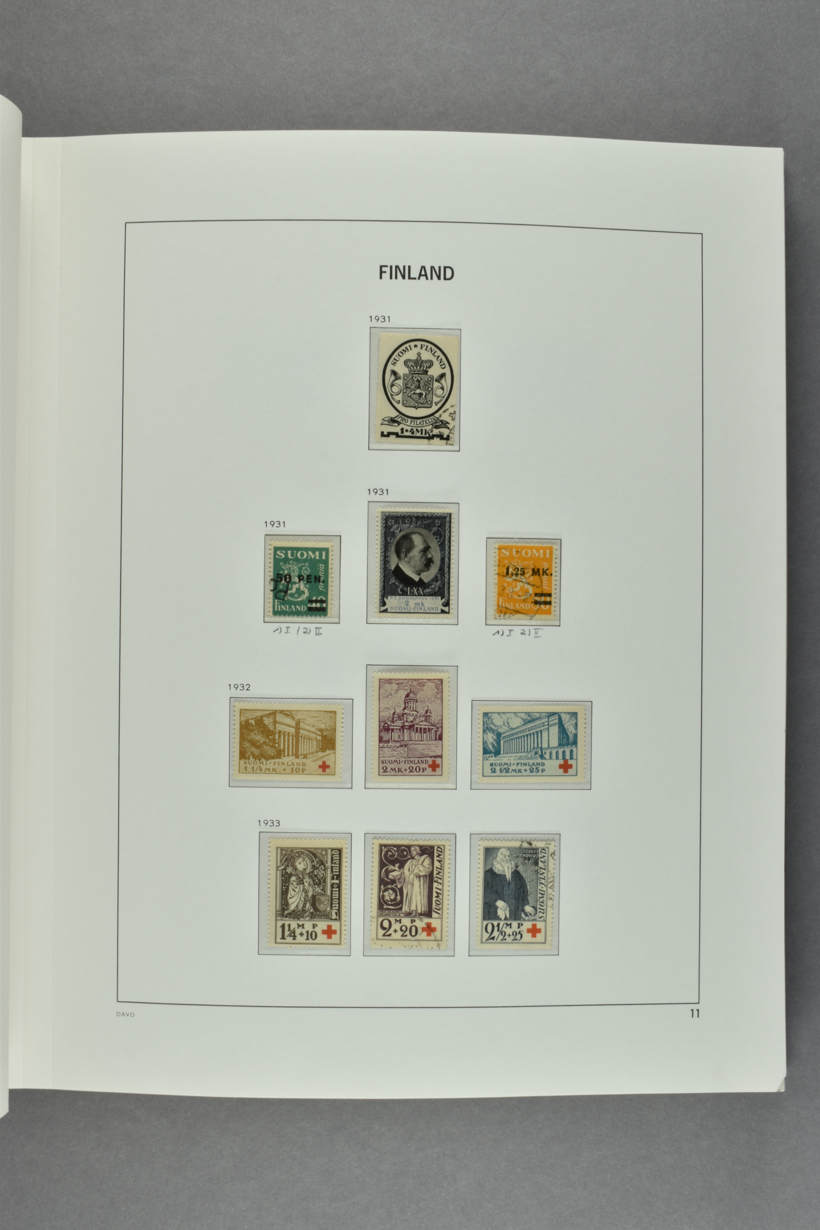 FINLAND, 1856-2011, o/*/** in 3 Davo albums with several good numbers and sets i.e.: Mi.1/2, a nice section Serpentines, 26, 54, 60 etc. and in the modern including Blocks, M/S and Booklets. Also 2 Davo albums Aland 1984-2020 including the "God Jul" M/S.