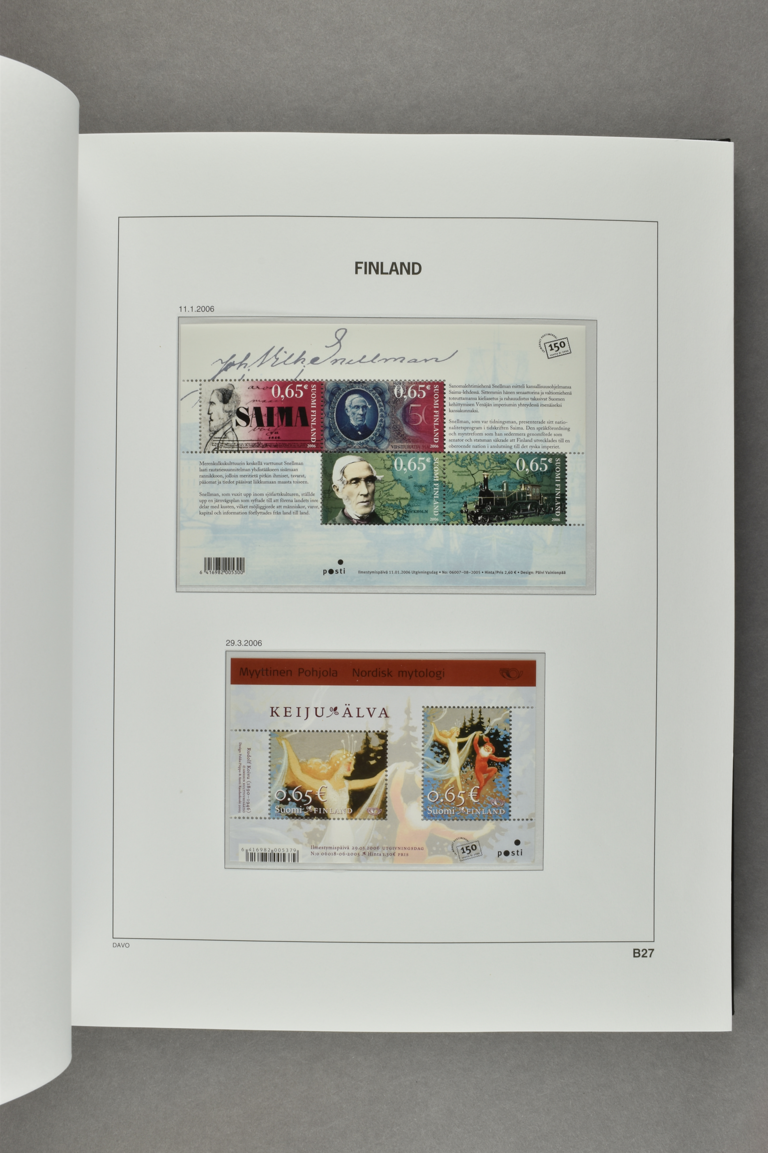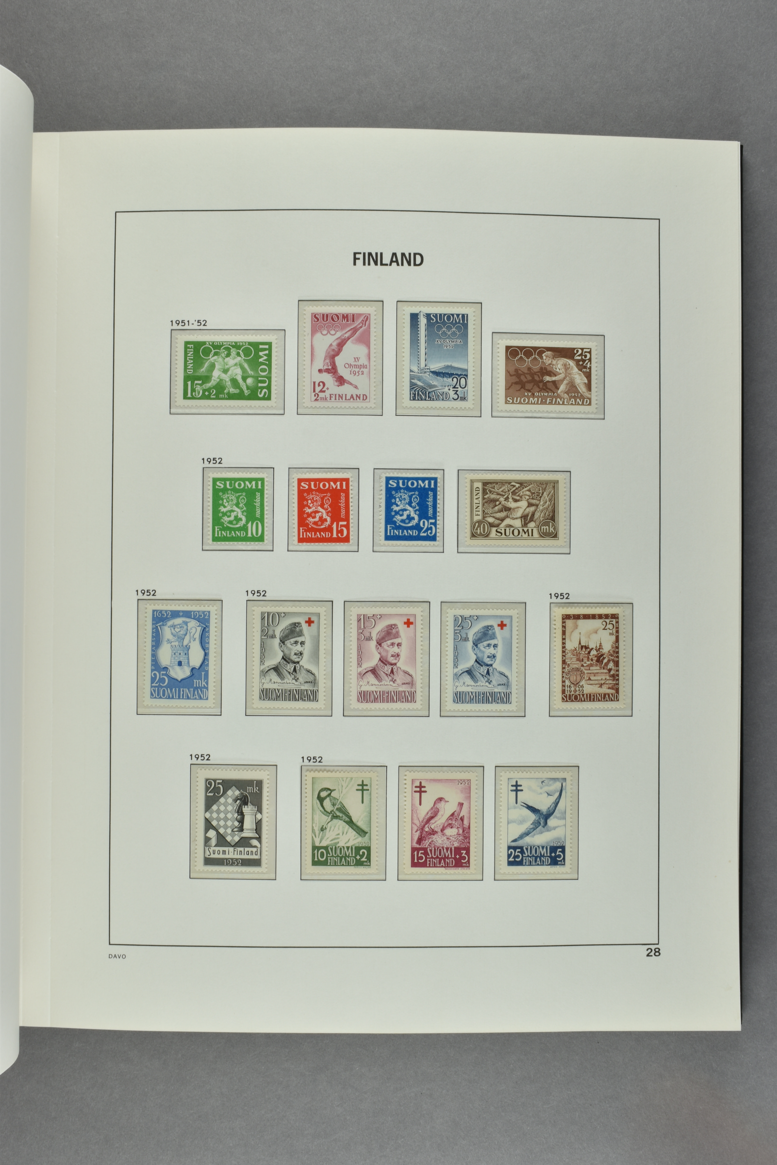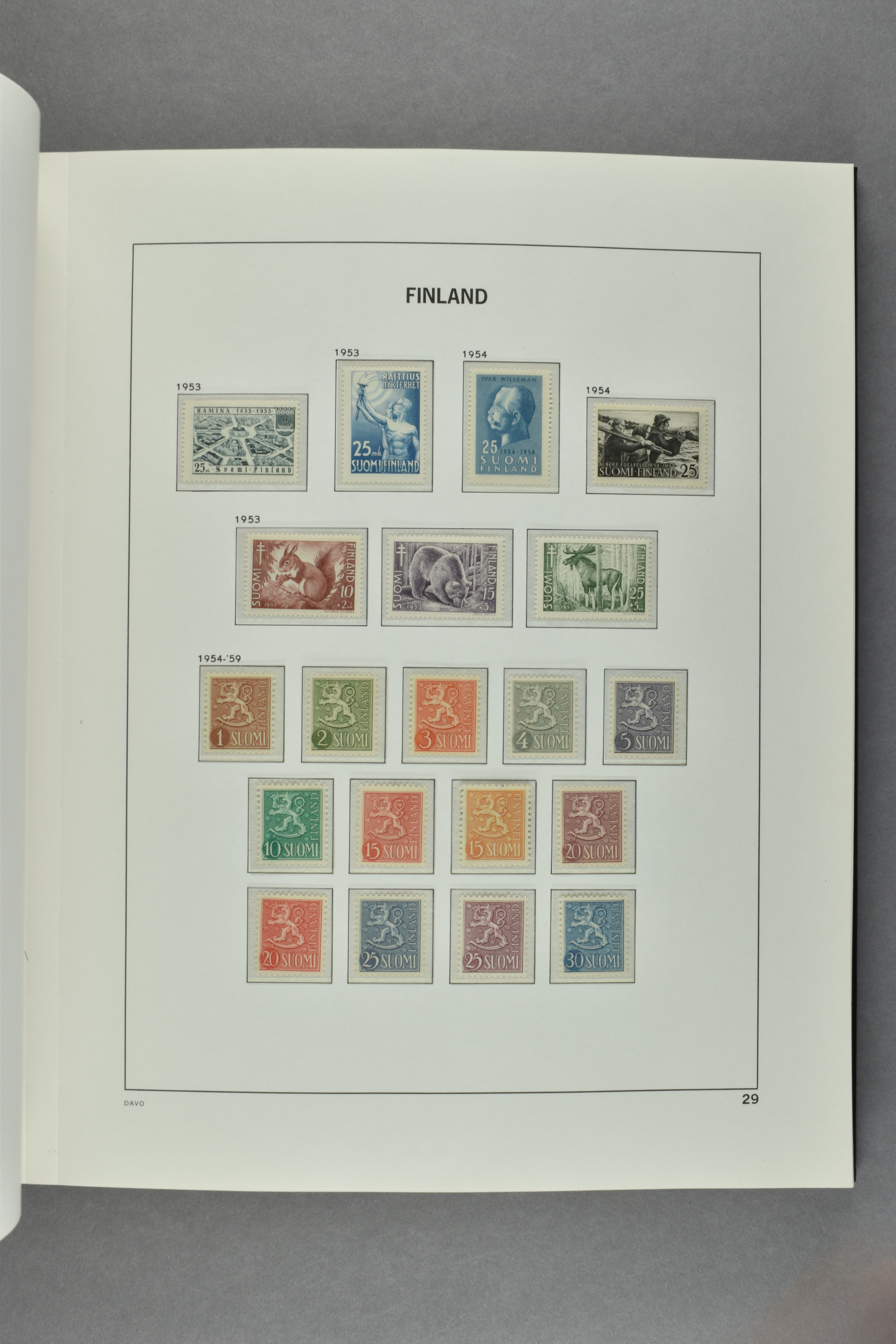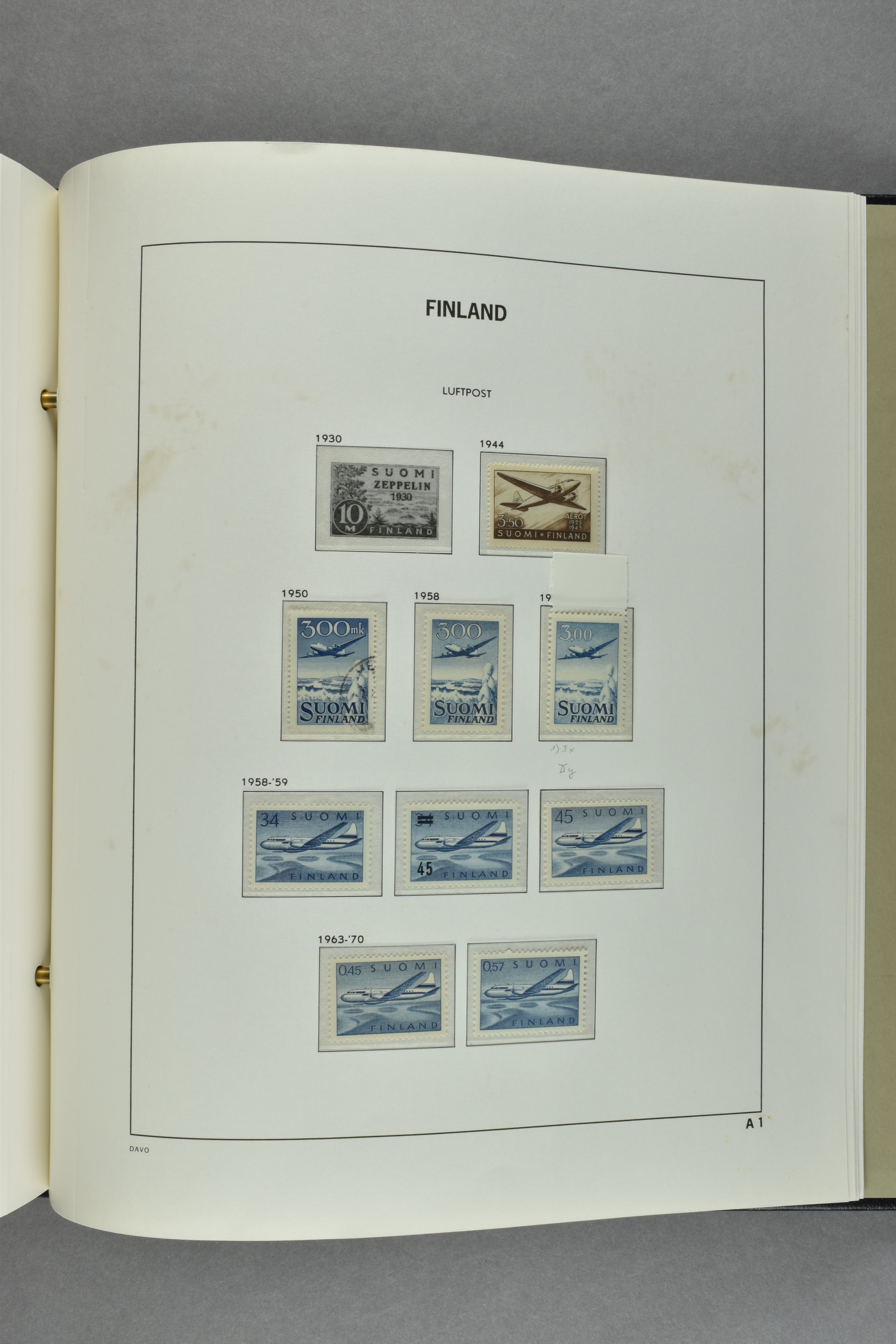 FINLAND, 1856-2011, o/*/** in 3 Davo albums with several good numbers and sets i.e.: Mi.1/2, a nice section Serpentines, 26, 54, 60 etc. and in the modern including Blocks, M/S and Booklets. Also 2 Davo albums Aland 1984-2020 including the "God Jul" M/S.