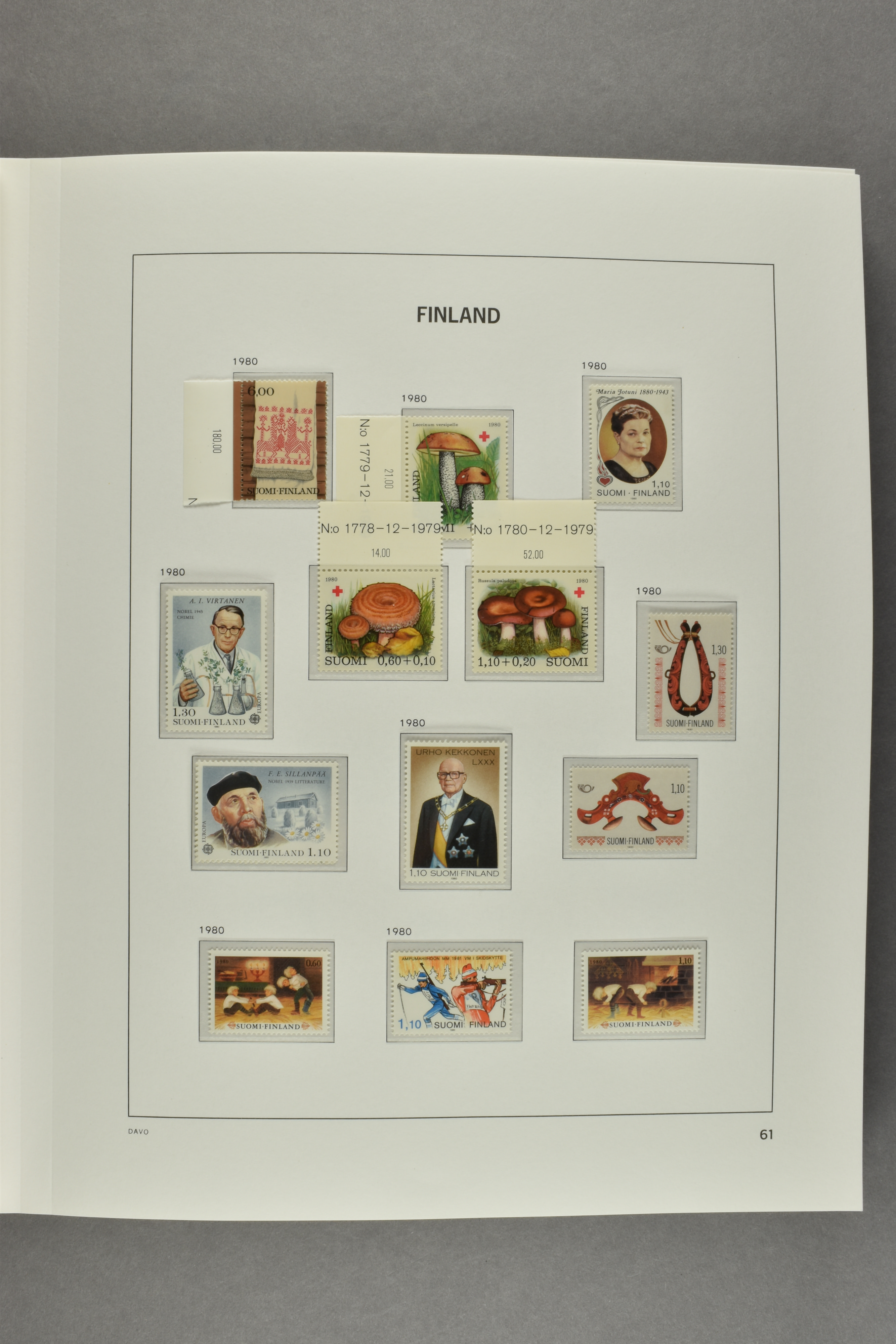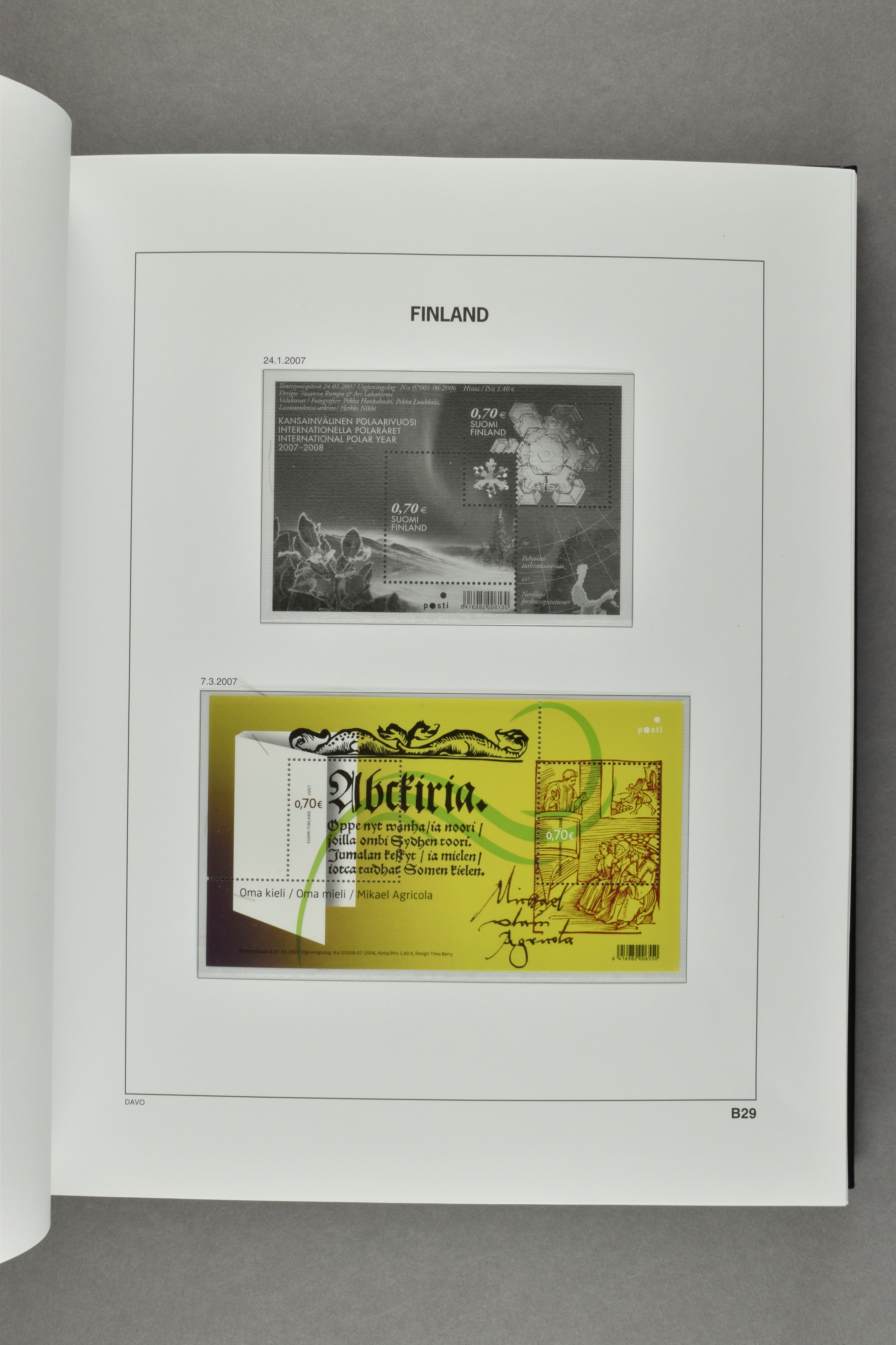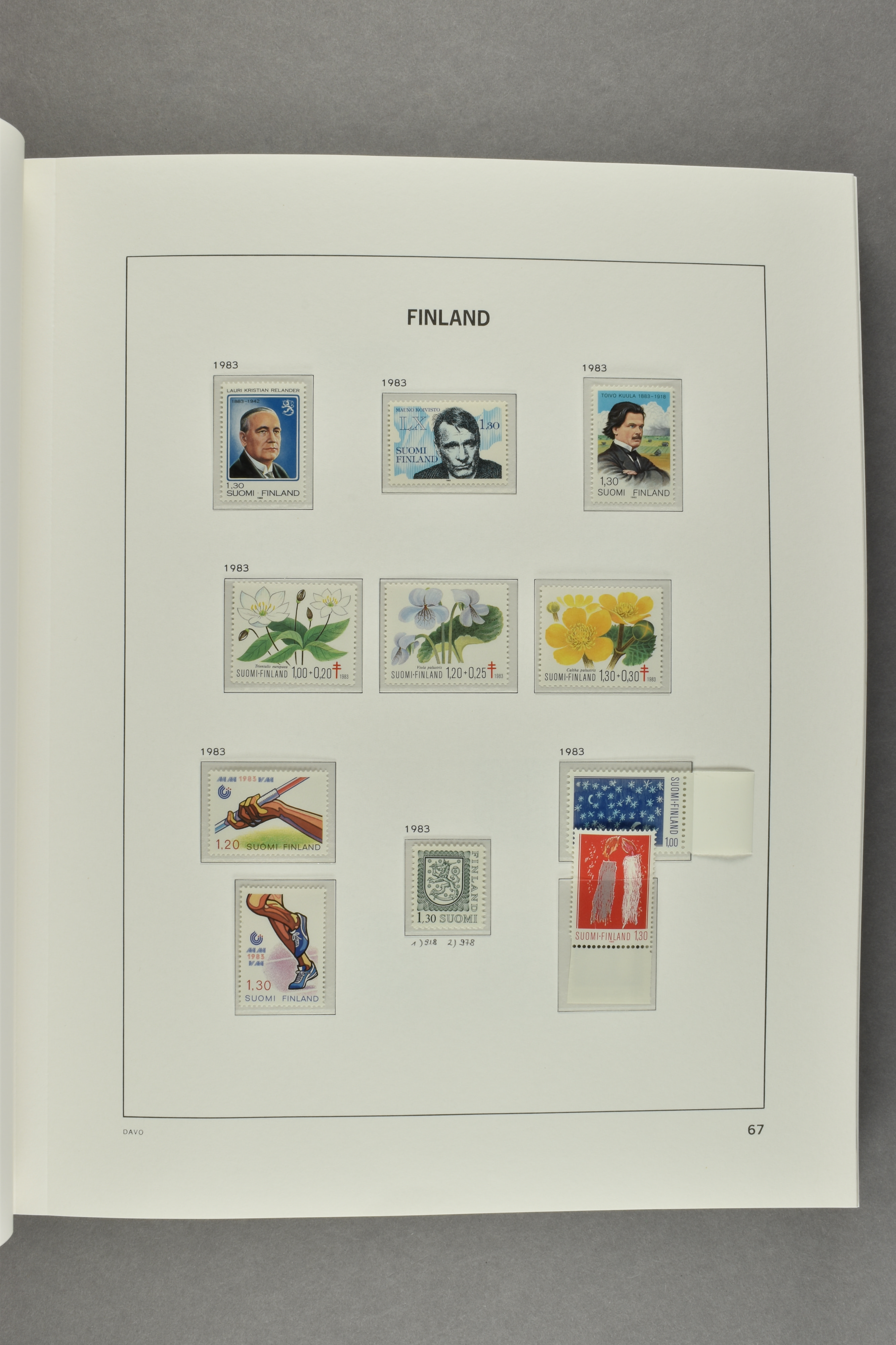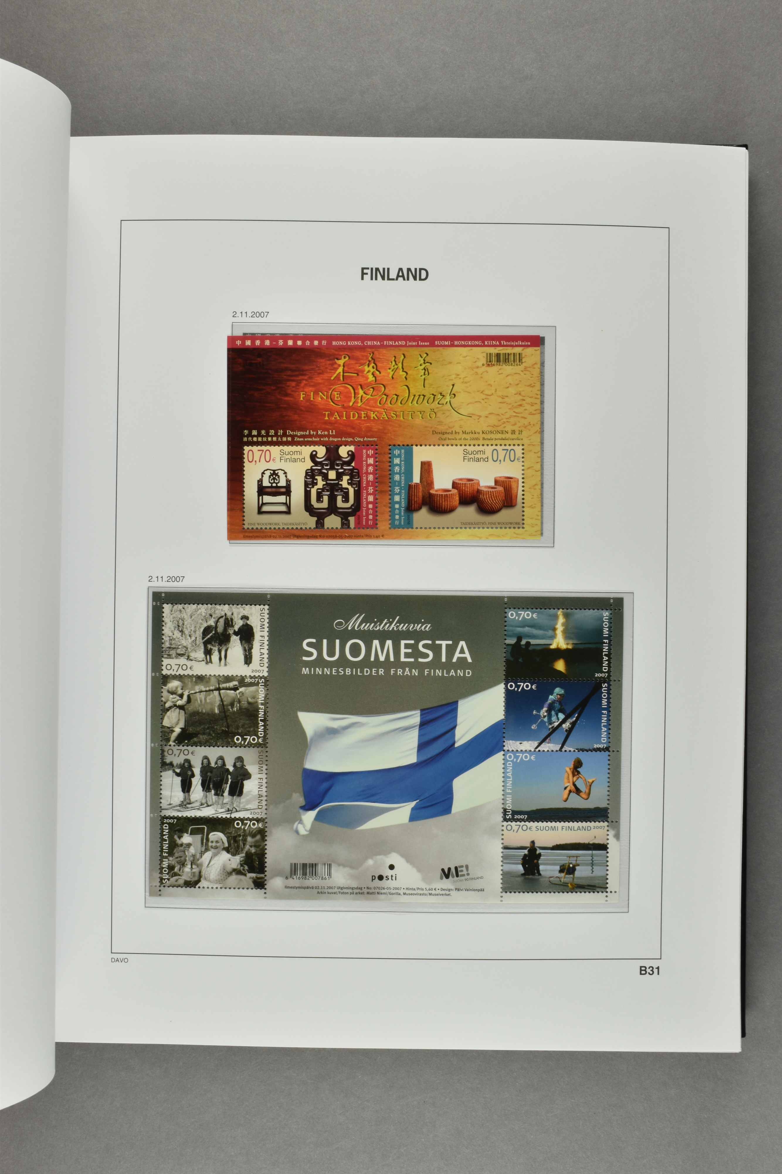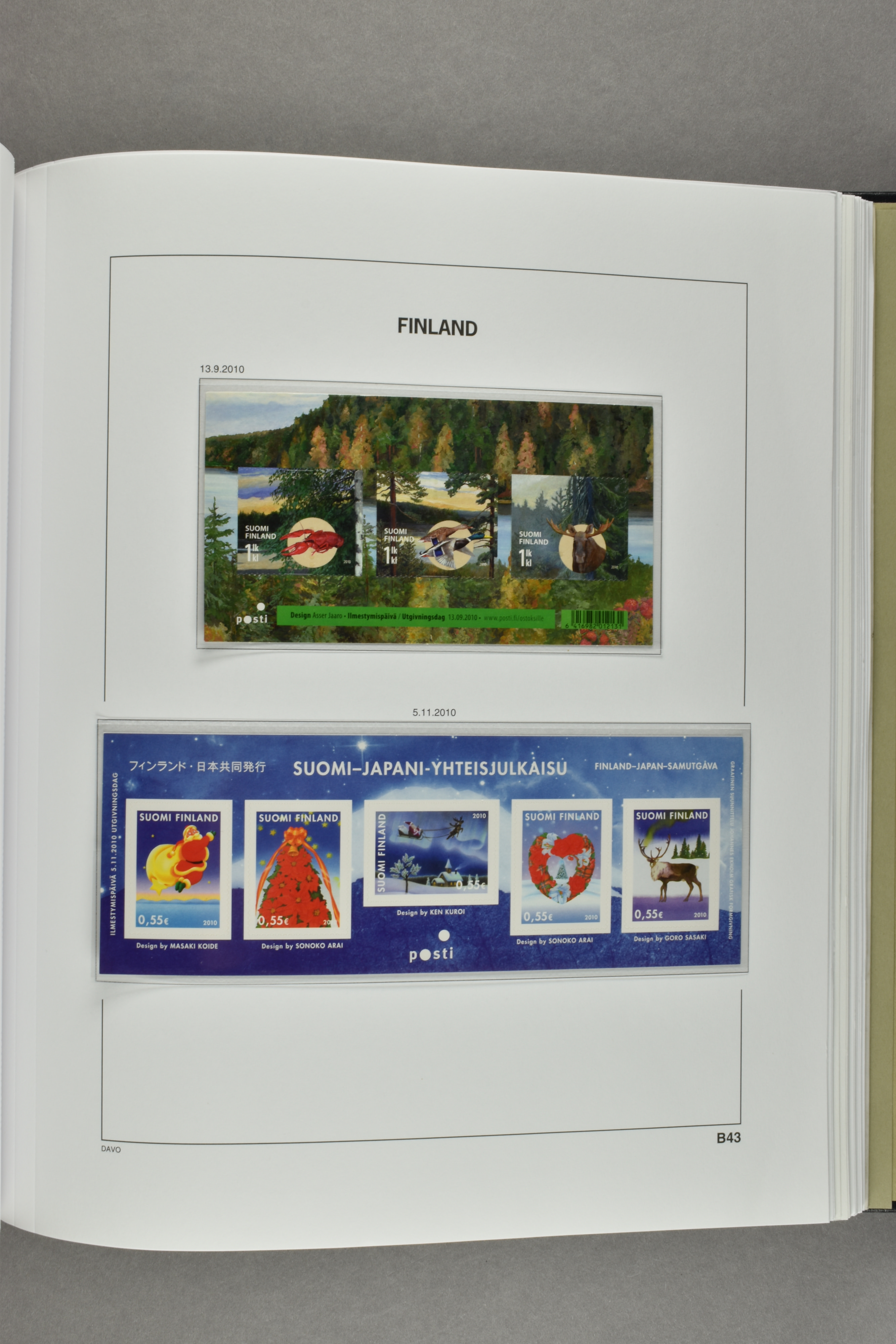 FINLAND, 1856-2011, o/*/** in 3 Davo albums with several good numbers and sets i.e.: Mi.1/2, a nice section Serpentines, 26, 54, 60 etc. and in the modern including Blocks, M/S and Booklets. Also 2 Davo albums Aland 1984-2020 including the "God Jul" M/S.