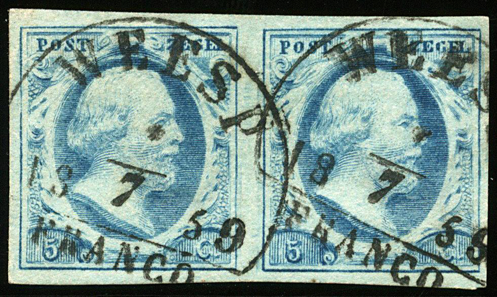 WEESP B type I (de H/S 75) op 5 cent nr. 1k-Pl.III-11/12. Prachtpaar met twee mooie afst.