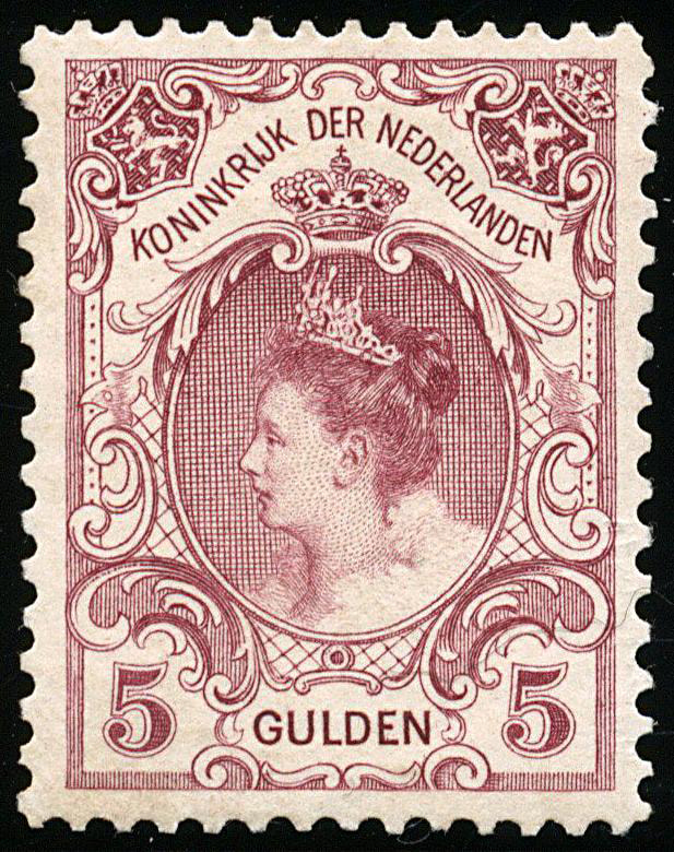 79B, 5 gulden wijnrood, Lt. 11½ x 11, ongebruikt prachtex. met volle, originele gom. Cert. NVPH (2007). € 280