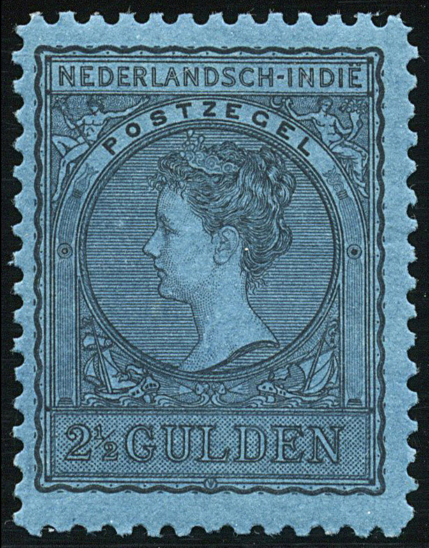 61B, 2½ gulden type Veth zwartblauw op blauw in Lt. 11 x 11½, postfris prachtex. € 500