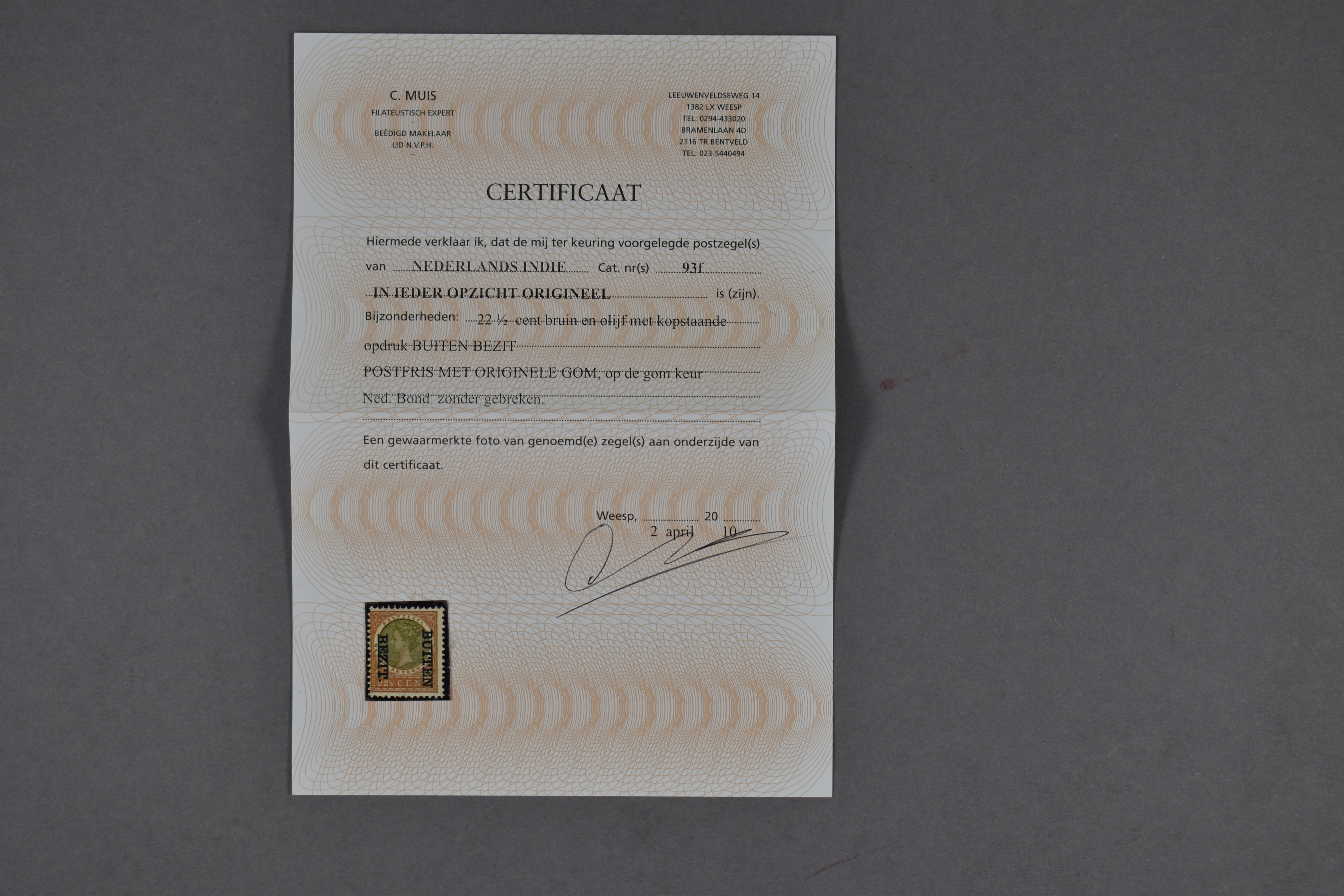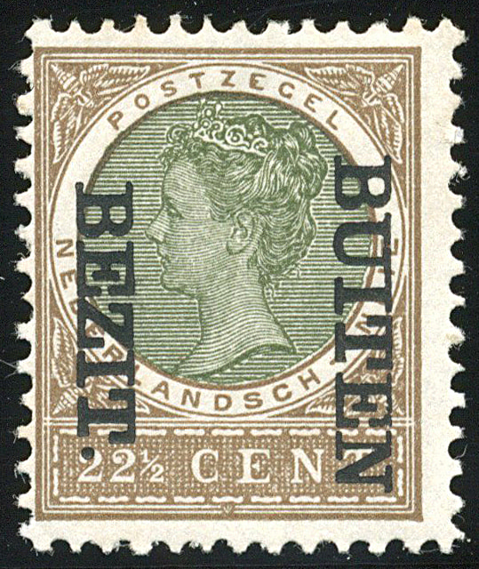 93f, 22½ cent met opdrukafwijking 'BUITEN BEZIT. kopstaand', ongebruikt prachtex. met miniem plakkerspoortje. Keur Ned. Bond, cert. Muis (2010). € 3025