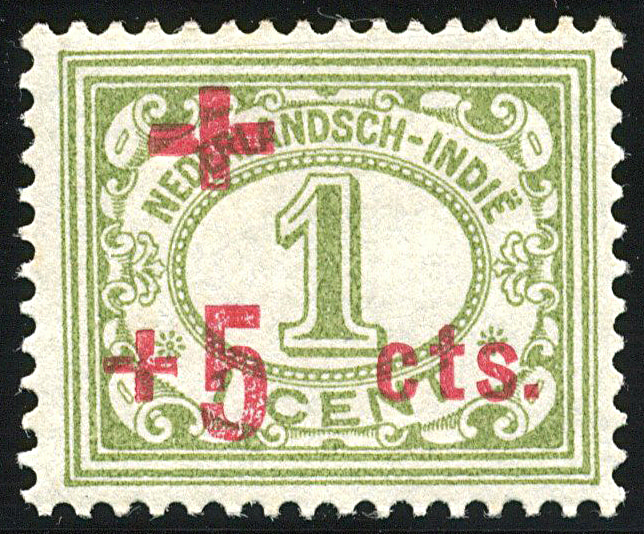 135f, 1+5 cent Rode Kruis 1915 met opdrukafwijking 'Afstand tussen +-teken en 5: 1 mm i.p.v. 2 mm', tevens nrs. 135/37, allemaal ongebruikte prachtex. € 275