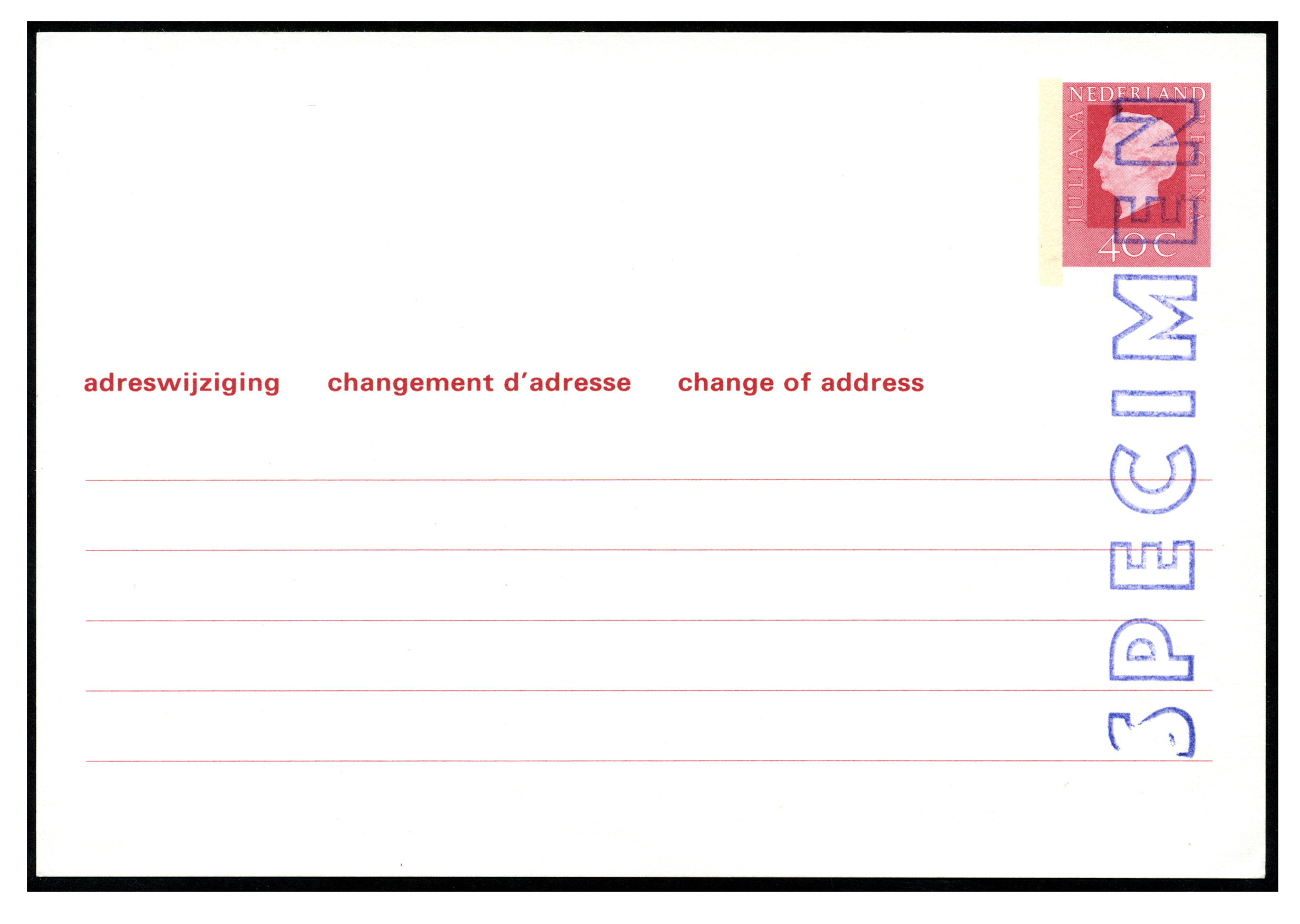 Verhuiskaart G42 met blauwe handstempelopdruk SPECIMEN