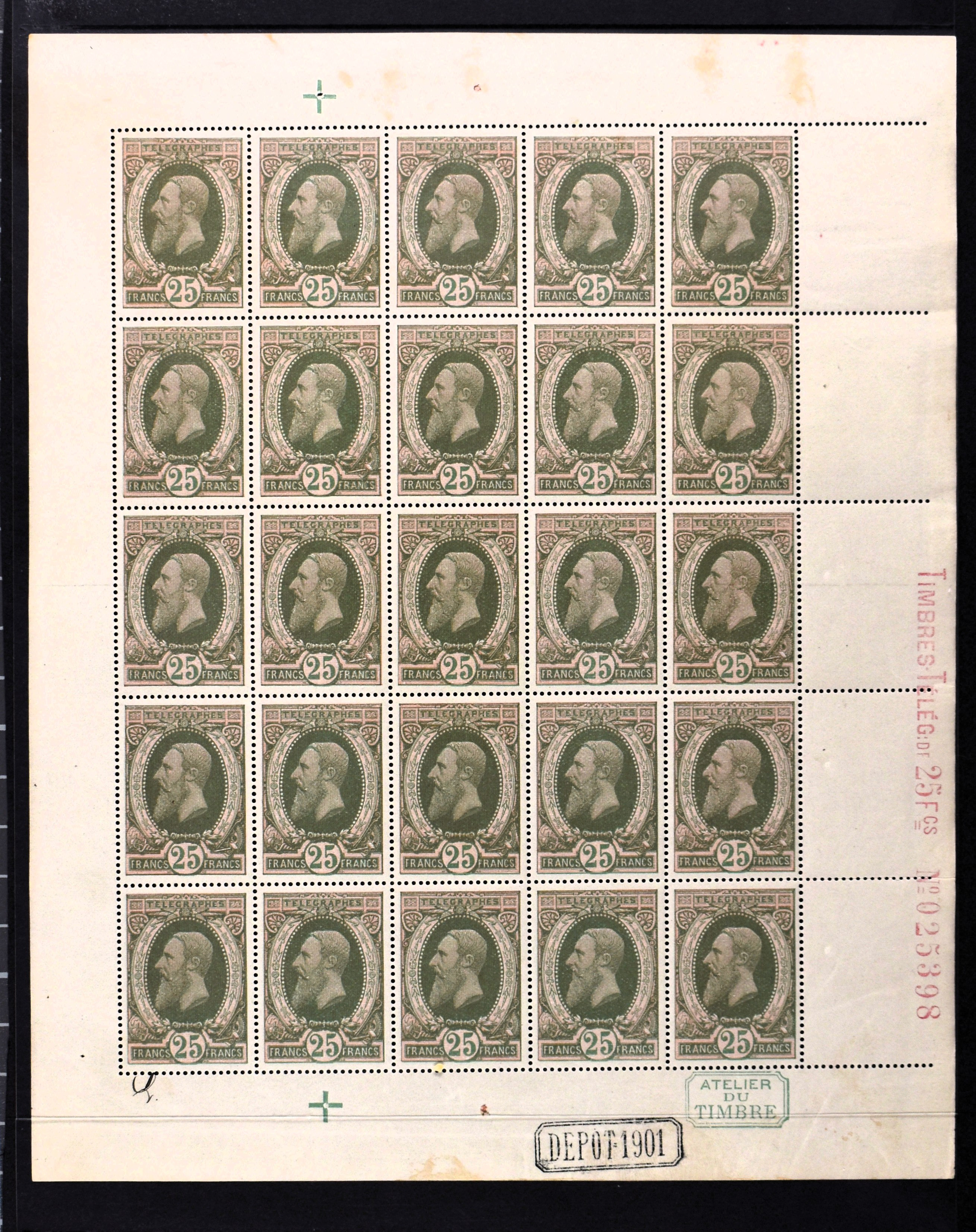 BELGIË 1889, OBP TG10 in compleet postfris velletje van 25 stuks, enkele minieme vlekjes in de rand en kenmerkende gomstructuur, overigens pracht ex. € 6000