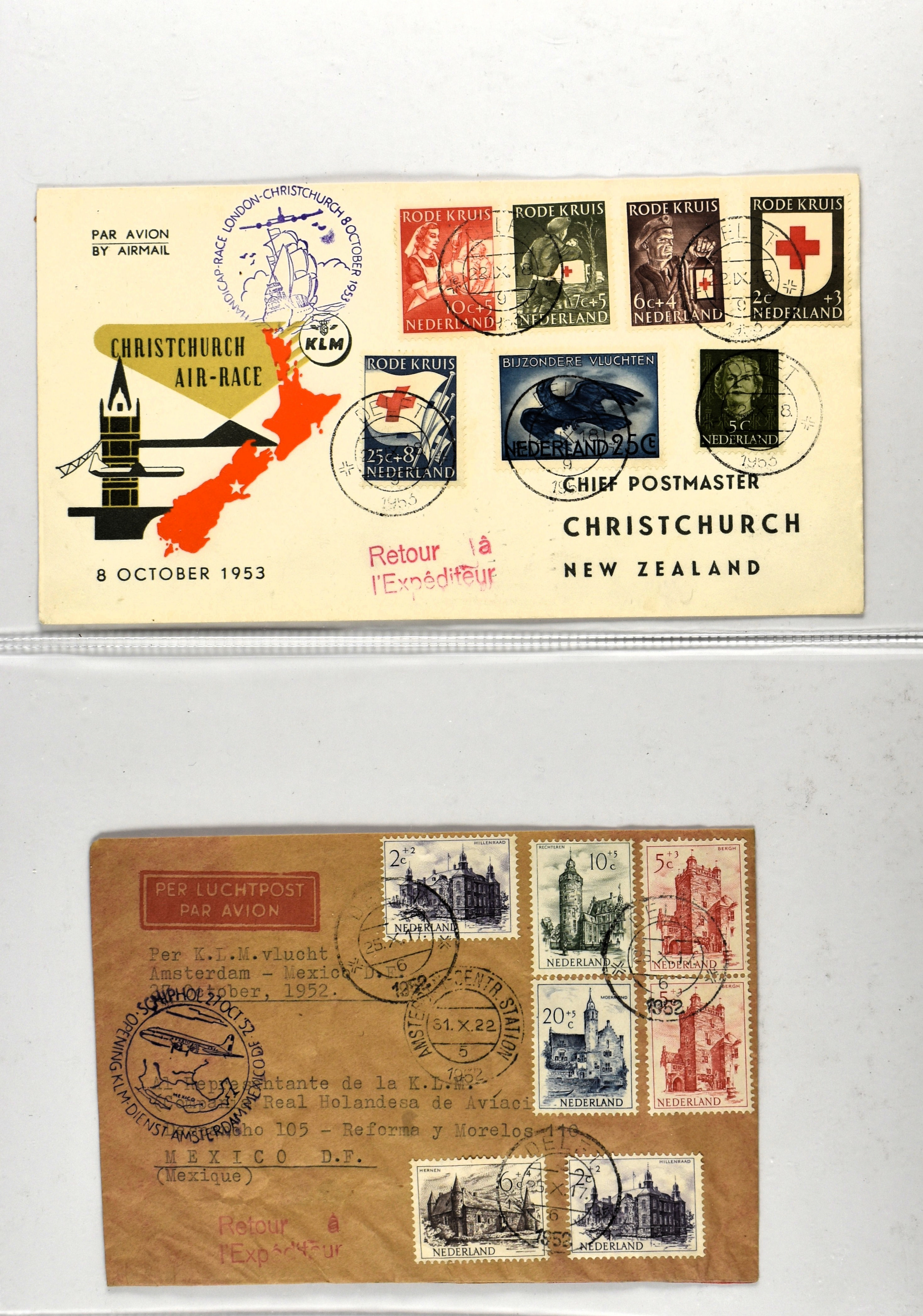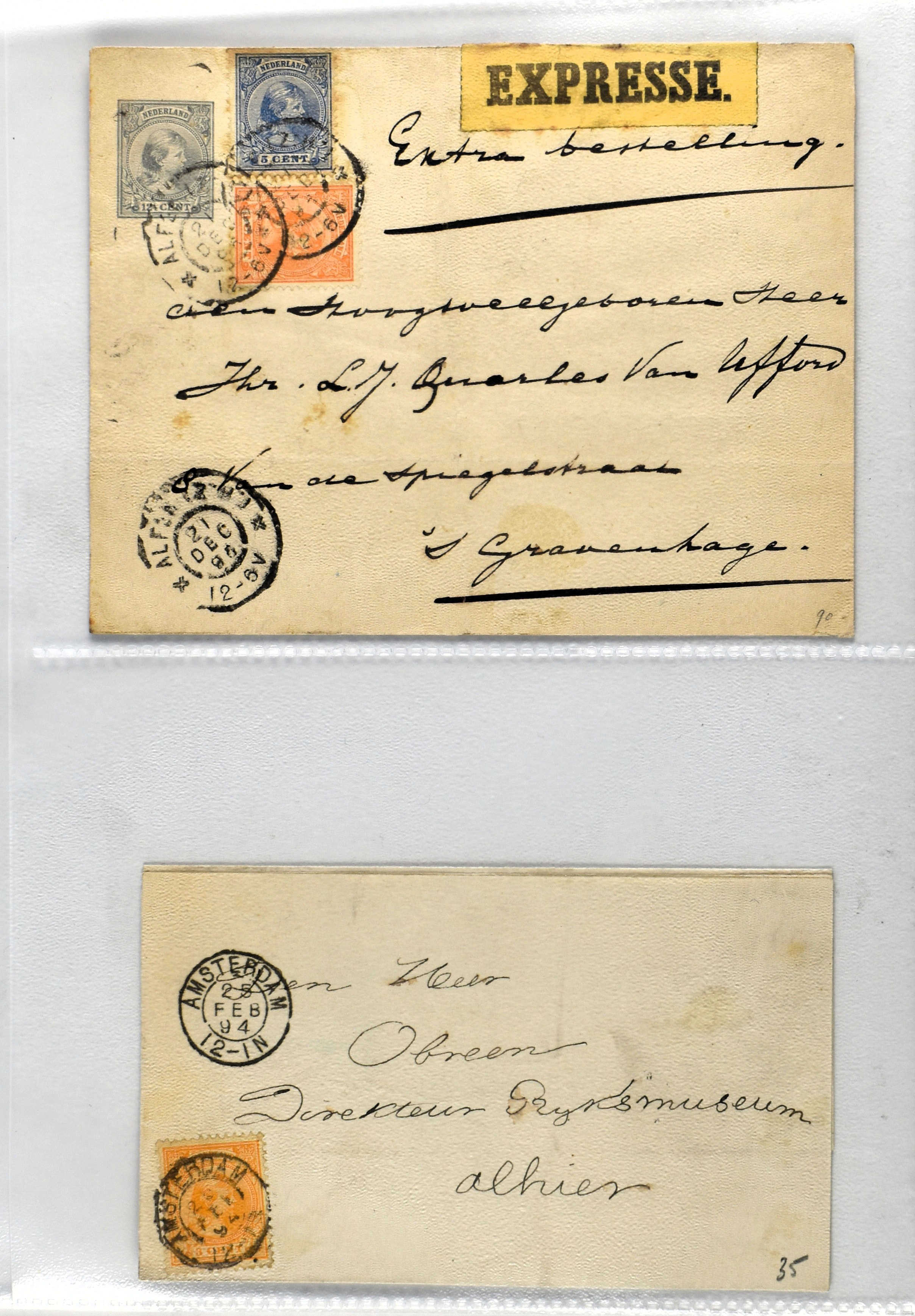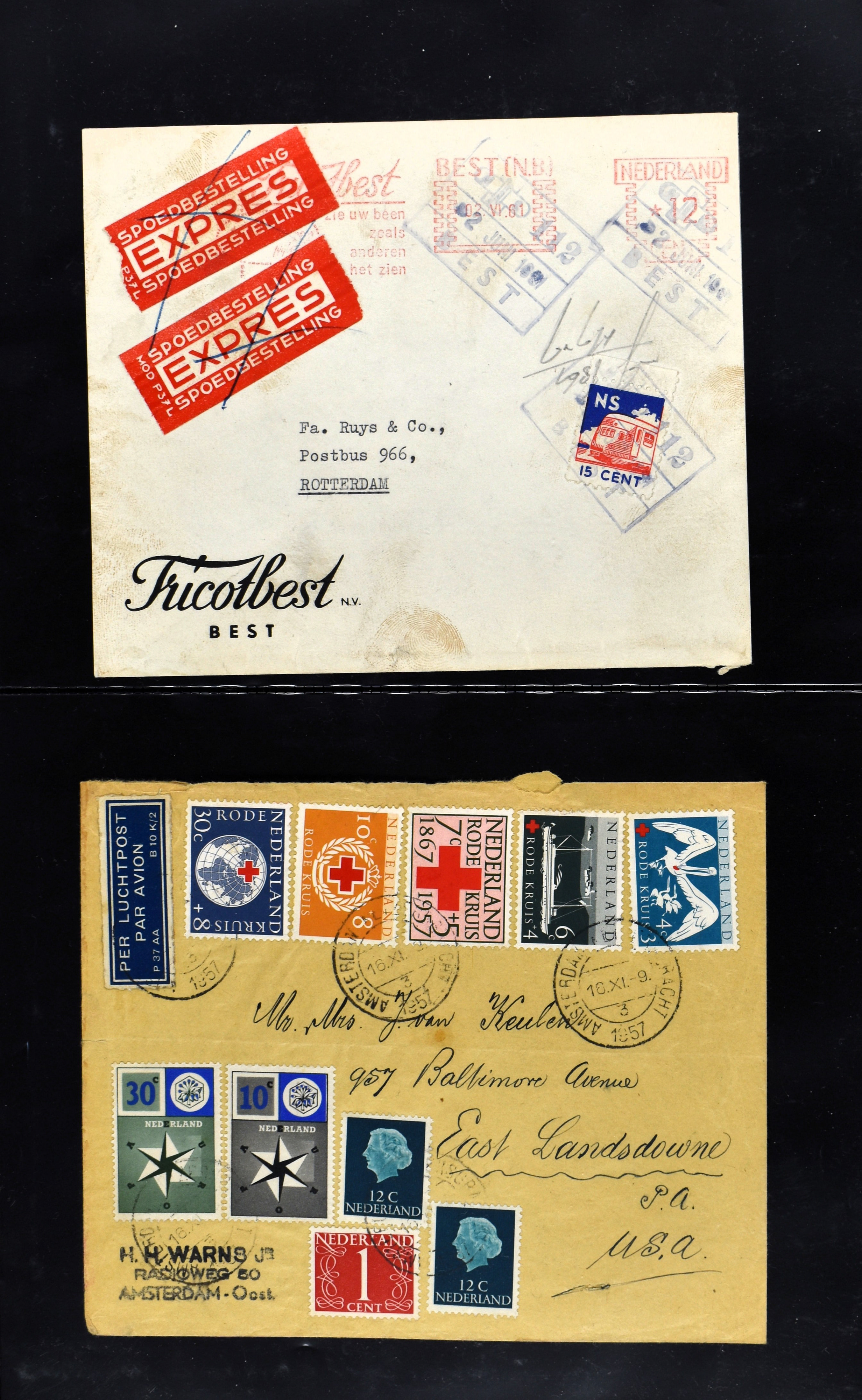 POSTHISTORIE 1584-1957, ruim 75 poststukken wb. enkele mooie voorfilatelistische brieven, een zestal monsterzakjes, aangetekend, expresse, Luchtpost enz. in 2 bandjes