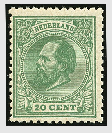 24K, 20 cent groen, Kt. 12½ kl.g., postfris prachtex. met cert. W. Moeijes (1991) € 5000
