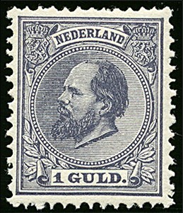 28, 1 gulden grijsviolet, postfris prachtex. € 2500