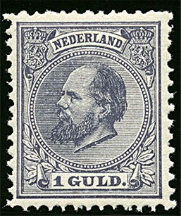 28, 1 gulden grijsviolet, postfris prachtex. € 2500