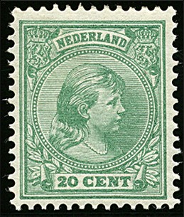 40, 20 cent groen, postfris prachtex. met certificaat Bakker (2003) € 675