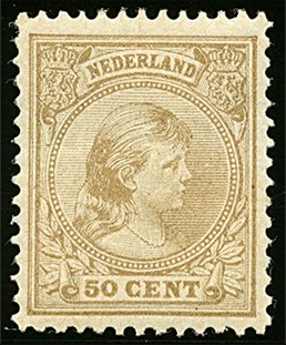 43, 50 cent geelbruin, postfris prachtex. met certificaat Bakker (2000) € 4750