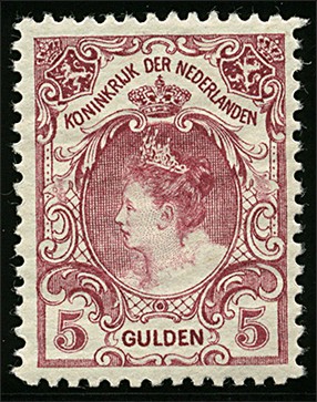 79D, 5 Gulden wijnrood Lt. 11½, postfris prachtex. met cert. C. Muis (2004) € 925