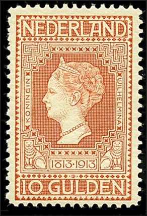 101, 10 Gulden roodoranje, ongebruikt prachtex. met cert. Moeijes (1992) € 950