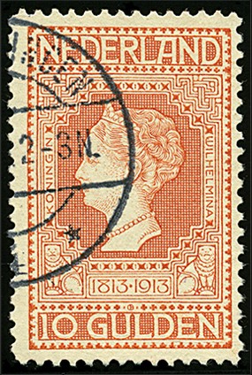 101, 10 Gulden roodoranje, gebruikt prachtex. € 900