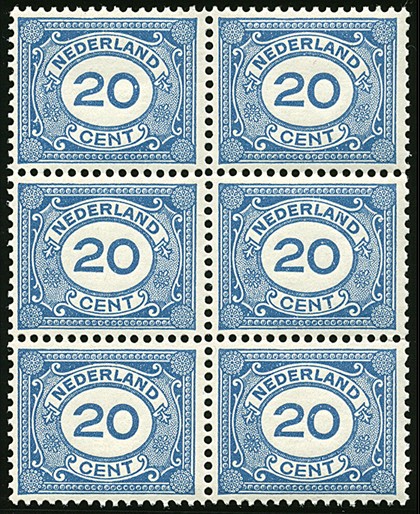 108/09, Cijfer, 12½ cent 1x nr. 108 en 2x nr. 108a, 20 cent in blok van zes, alle zegels postfrisse prachtex. € 1360