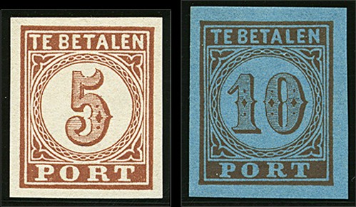 Kleurproeven Emissie 1870, PC3 (2) en 4 (21) en P5d, in div. kleuren