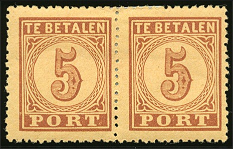 1AB, 5 cent bruin op oranje, ongebruikt prachtpaar € 200