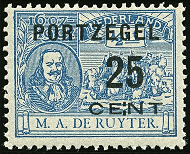 41fa, De Ruyter 25 cent met 'Dubbele punt tussen E en T van CENT', ongebruikt prachtex. € 250